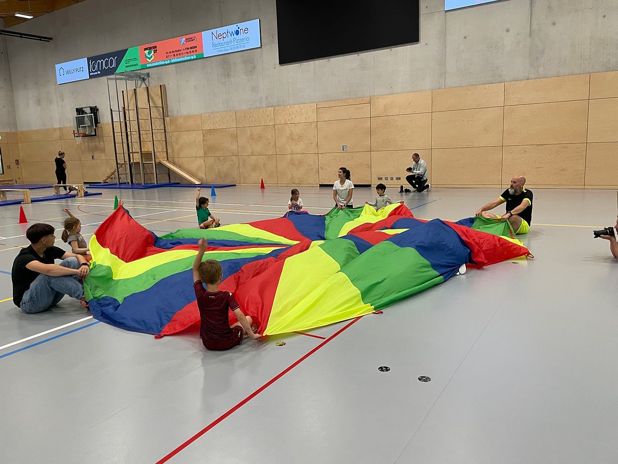 Am 3. Juni nahmen 24 Kinder der Vorschulstufe C1 aus der Maison Relais in Bissen an einer sportlichen Aktivität in der Sporthalle der Gemeinde teil. Mit viel Freude und Energie setzten sich die Kinder in Bewegung – ein Termin, der Teil eines umfassenderen Konzepts ist, das in enger Zusammenarbeit mit der LASEP umgesetzt wird.