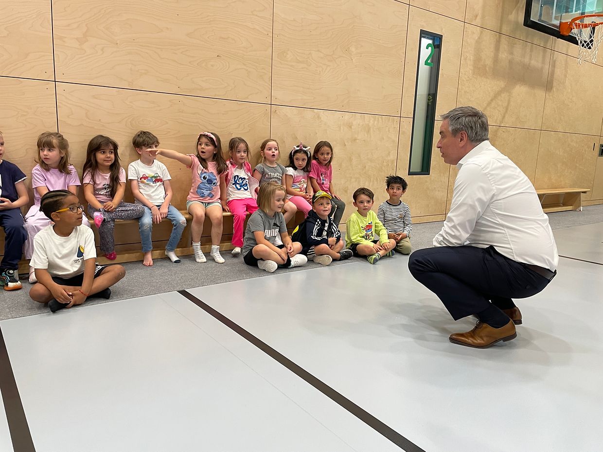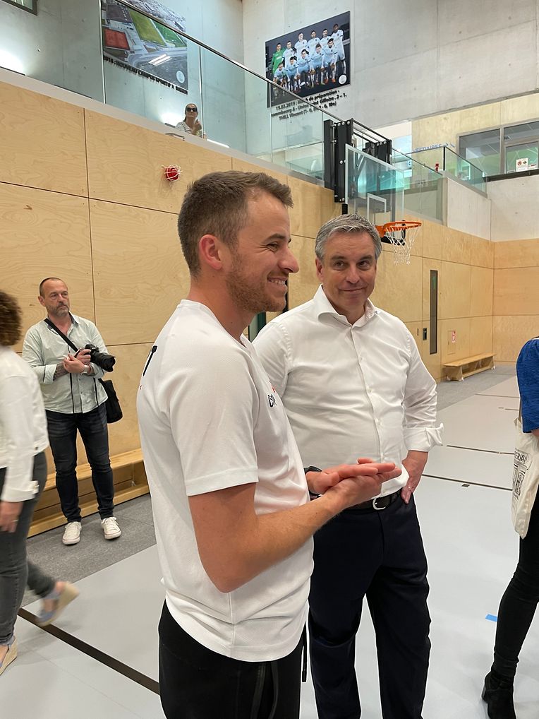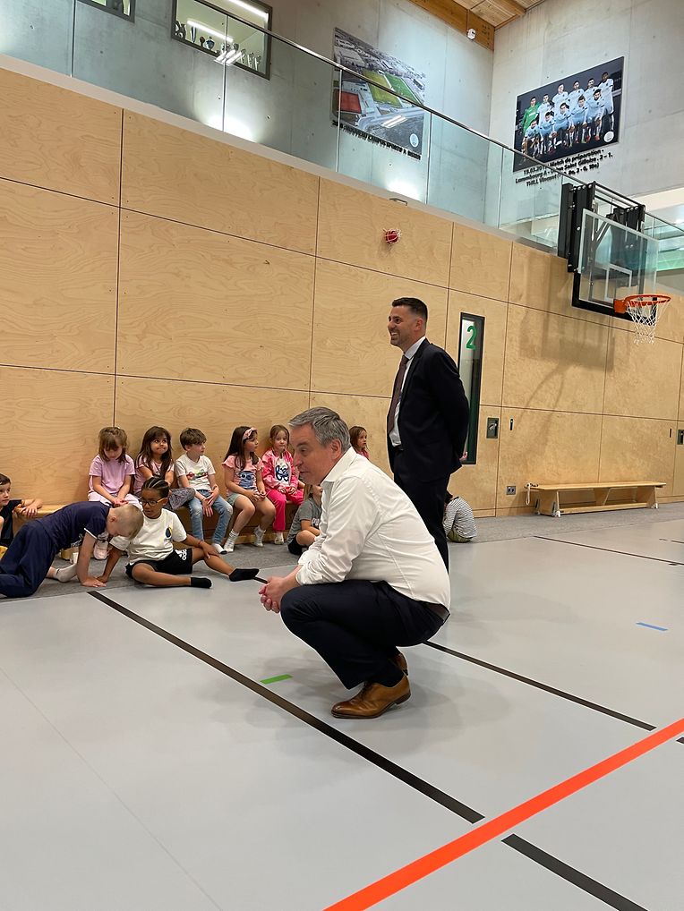 Der Minister für Bildung, Kinder und Jugend Claude Meisch besuchte die Aktivität, um sich ein Bild vom Bewegungskonzept in der Praxis zu machen. Im Anschluss nahm er sich Zeit, mit den Kindern zu sprechen. Diese zeigten sich begeistert und berichteten ihm auch von ihren sportlichen Aktivitäten außerhalb der Maison Relais.