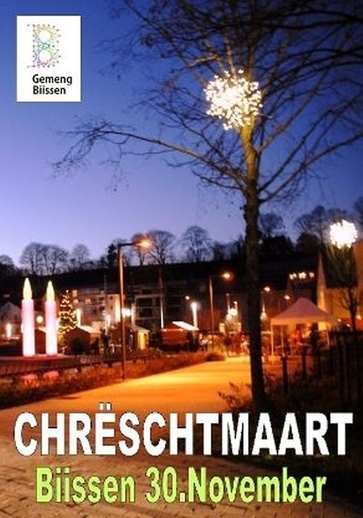 Bissen Chrëschtmaart zu Biissen Armand Wantz Veröffentlicht am Sonntag, 17. November 2013 um 10:23 Chrëschtmaart den 30.November organiséiert vun der Sport- a Jugendkommissioun an Zesummenaarbecht mat der Gemeng an alle Biisser Veräiner an Organisatiounen. Flyer.pdf Unpassenden Inhalt angeben Weitere Neuigkeiten von Armand Wantz > Libellen-Hochzäit 04.09.24 Bissen Männertreff 28.05.24 Bissen Uewersauer 09.11.18 Bauschleiden Bësch-Champion 09.11.18 Bissen 57 Generalversammlung des DT Biissen 23.06.18 Bissen
