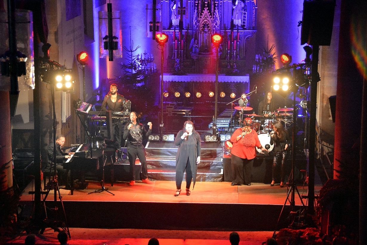 Nicht minder virtuos erbrachte Jennifer KELLEY, ebenfalls aus St. Louis, Missouri, eine beachtliche gesangliche Leistung. Das Keyboard wurde gespielt von dem allround Musiker Justin A. Moore aus Georgia, der zusätzlich mit seiner sonoren Stimme bei gesanglichen Einlagen begeisterte. Gospel ist Gesang und Musik, aber auch Rhythmus, und Schlagzeuger Ernest MEREDITH aus Cleveland, Ohio, sorgte während dem gesamten Konzert für atemberaubende Rhythmen.