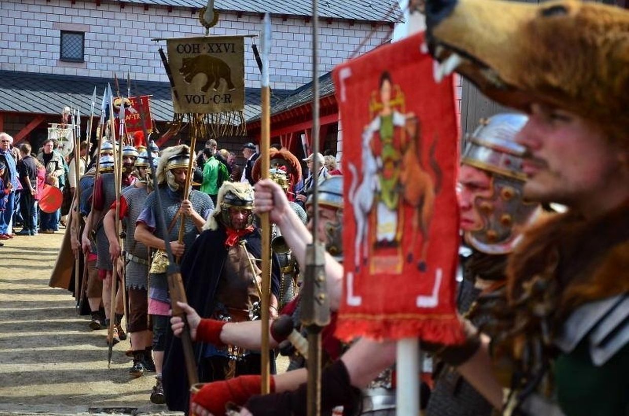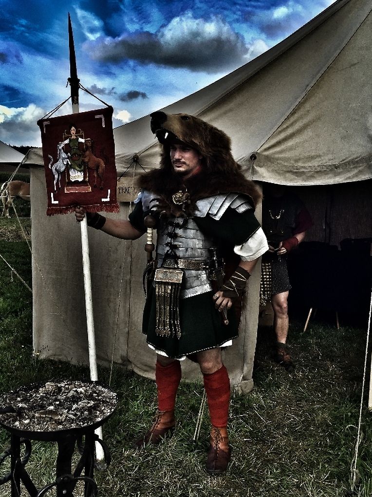 Luxemburg ( www.reimer.lu ) war ebenfalls als Teil der LEGIO XXI RAPAX vor Ort und stellte vornehmlich die Zeit um 70 n.Chr dar. Wir zeigten römisches Militärleben in all seinen Facetten so historisch korrekt wie möglich. Dies bedeutet dass die Mitglieder das römische Leben 24 Stunden am Tag voll ausleben: Geschlafen wird ohne moderne Hilfsmittel auf Wolldecken und Schaffellen, gegessen wird nur was es damals bereits gab, Plastik und andere moderne Objekte wie Brillen, Uhren, Handys sucht man vergebens. Nachts gibt es sogar Nachtwachen, ganz wie es zur damaligen Zeit in einem Legionärslager gewesen ist.