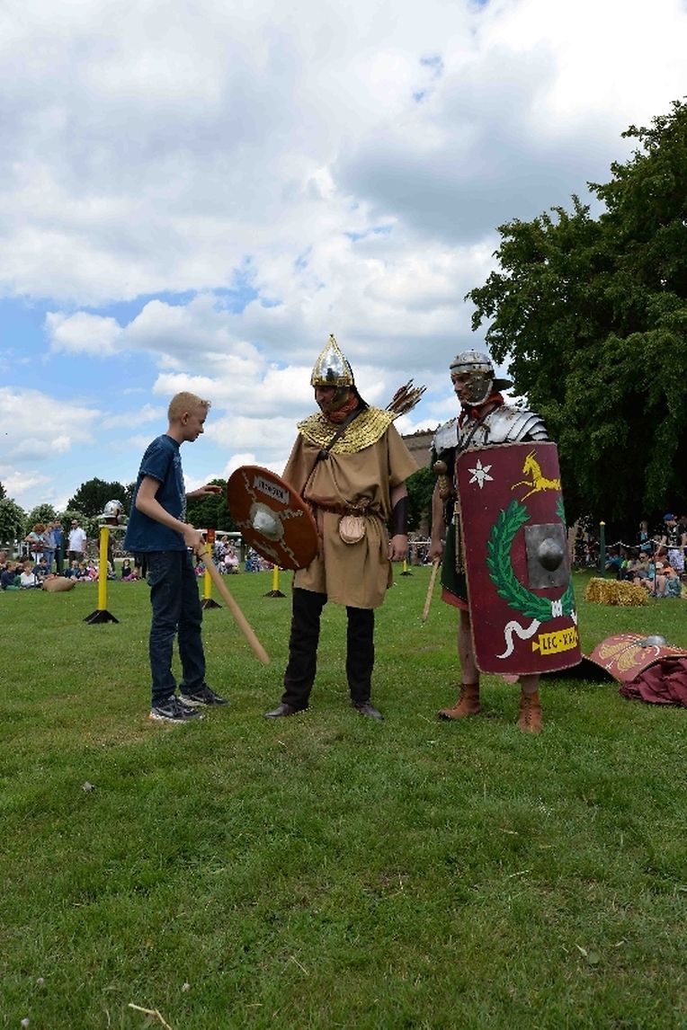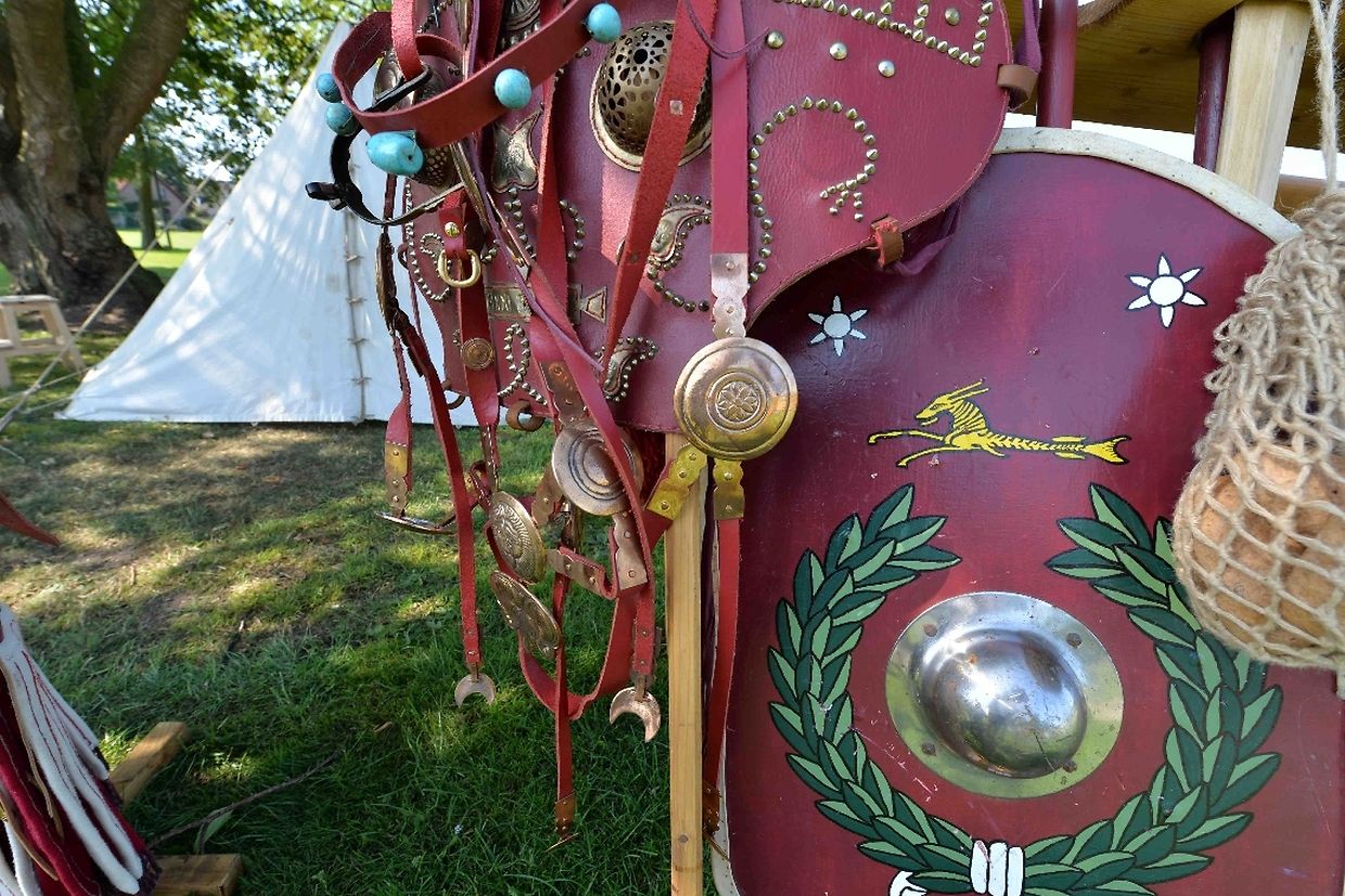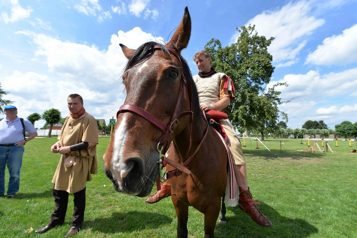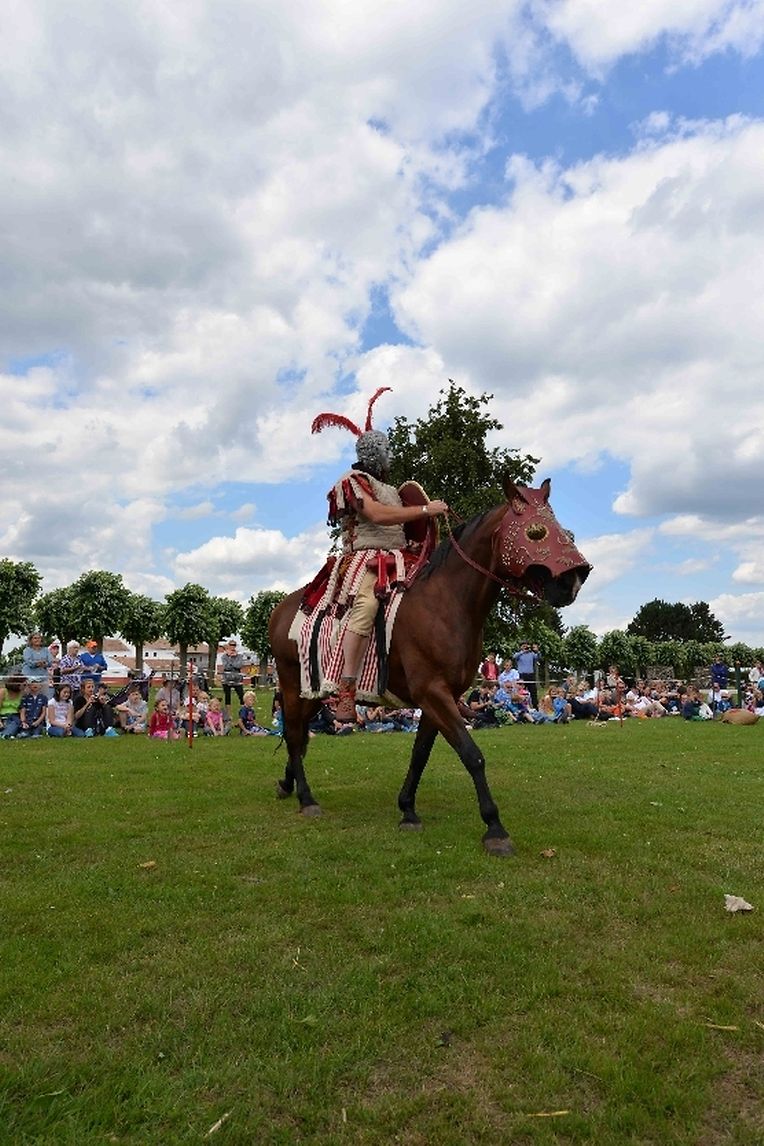 Am Sonntag war das Wetter gut und wir konnten unsere geplante Vorführung durchführen. Dazu gehörte eine einzigartige Reitershow bei welcher gezeigt wurde wie ein Fluchttier wie das Pferd so trainiert wurde dass es selbst durch feindliche Linien durchbrechen konnte. Dabei kannten bereits die Römer eine gewaltfreie Erziehung der Pferde und bauten auf das Vertrauen der Tiere. Zusätzliche Disziplinen waren der Kampf vom Pferd, das Zerschneiden von Früchten im Galopp, sowie das Werfen von Lanzen.