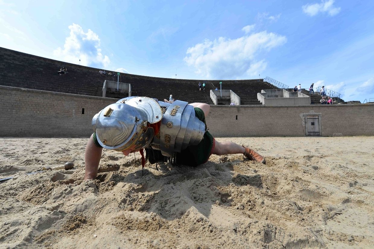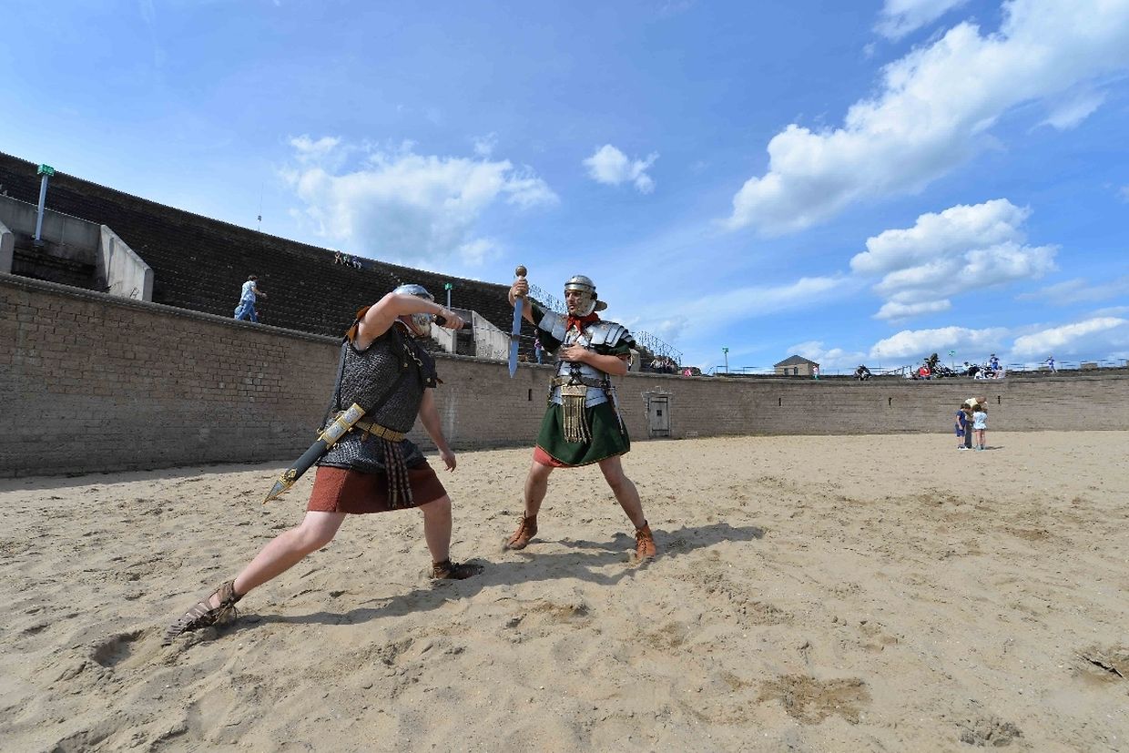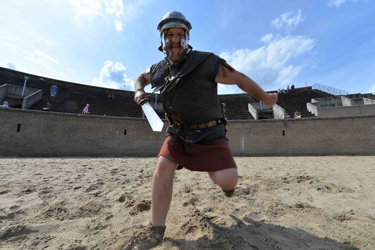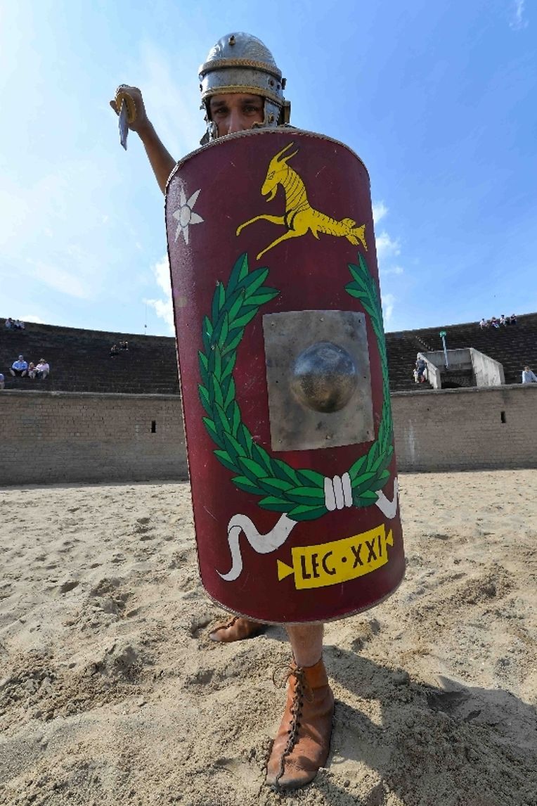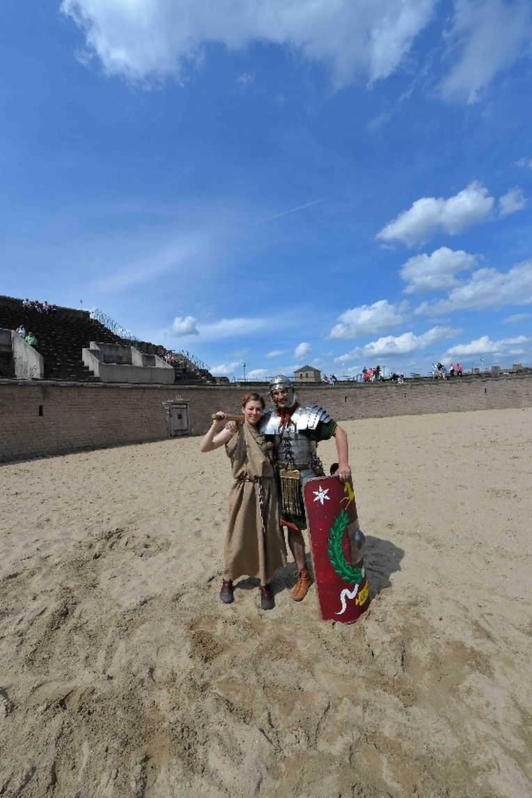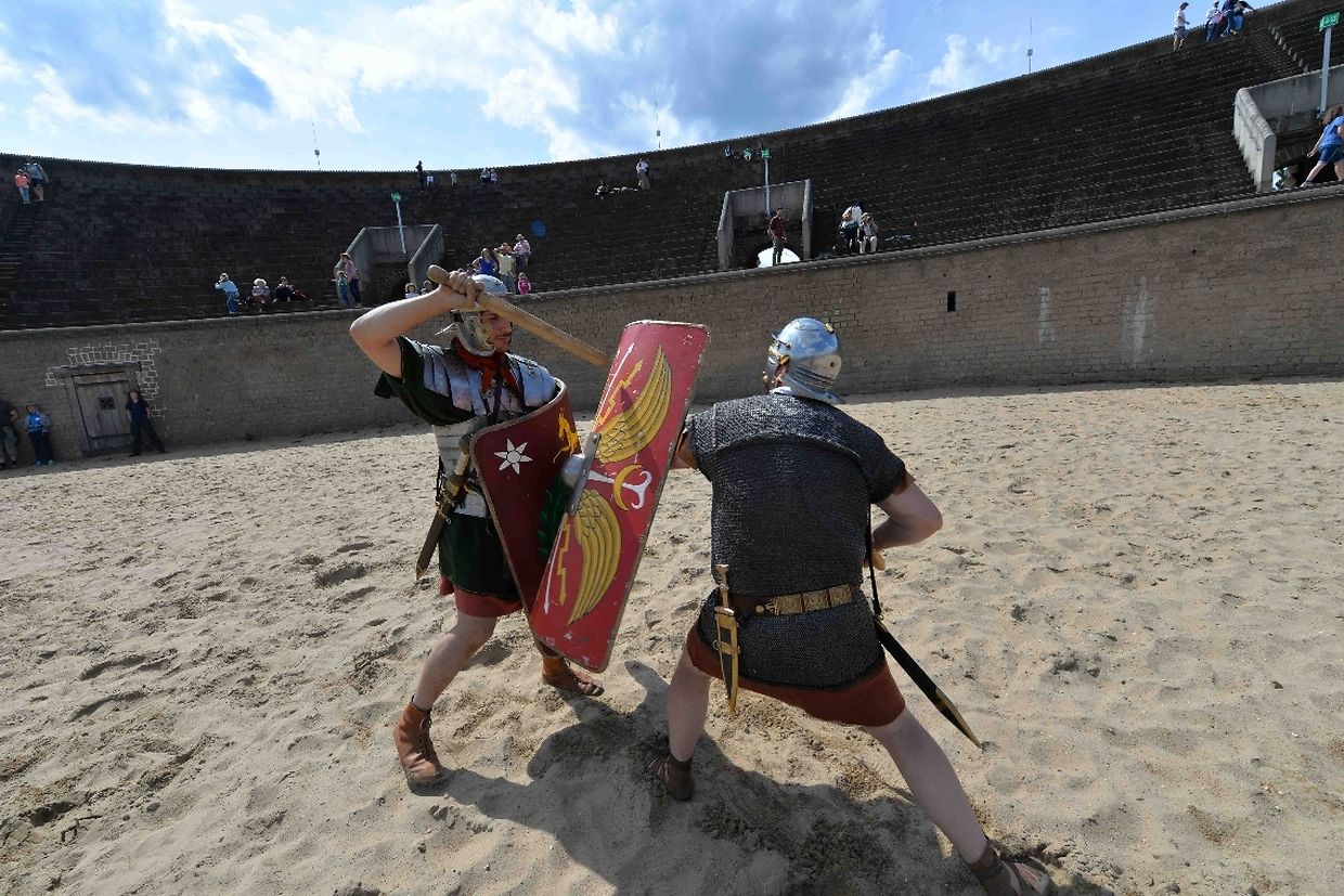 Im Amphitheater konnten wir ausserdem die Kampfkunst der römischen Legionäre vorführen.