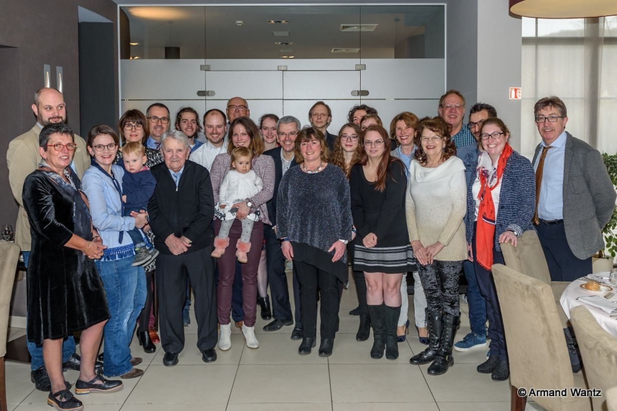 Am 15. März 1928 erblickte Théo Wantz in Niederfeulen als erstes von 4 Kindern der Eheleute Henri Wantz und Marie Catherine Huberty das Licht der Welt. 1955 heiratete er Marie Bodé, welche leider vor 3 Jahren verstarb. Ihrer Ehe entsprossen 4 Kinder sowie 7 Enkel und bereits zwei Ur-Enkel. Geistig und körperlich noch fit; Théo fährt noch regelmässig Auto; feierte der rüstige Senior kürzlich im Kreise seiner Famillie seinen 90. Geburtstag. Speziell zu diesem Anlass überraschte ihn Jane Schroeder mit Ihrem Mann, Familie aus Dubuque, Iowa.