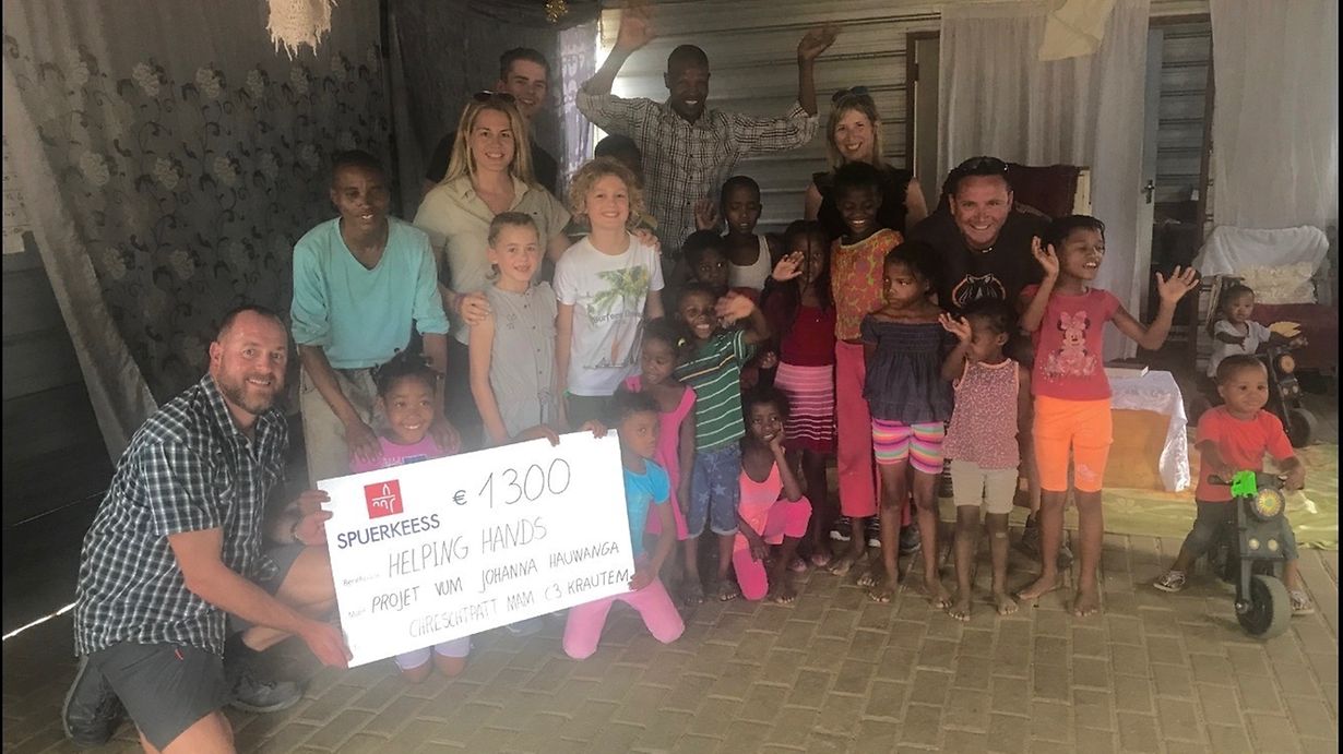 Es fing damit an dass die Klasse 3.1 von Frau Jennifer Nestler aus der Grundschule von Krautem in der Vorweihnachtszeit Gebäck für einen guten Zweck verkaufen wollte. Maxim Schaeffer, ein Mitschüler der Klasse, der in den Weihnachtsferien mit seiner Familie eine Reise nach Namibia geplant hatte, machte daraufhin den Vorschlag das Gebäck auf dem von seinen Eltern organisiertem Winterfest zu verkaufen. Diese Aktion wurde zusätzlich von Familienmitgliedern, Freunden, Bekannten, sowie allen eingeladenen Gästen des Winterfestes unterstützt. Durch einen einheimischen Reiseleiter konnte ein Kontakt zu einem namibianischen Waisenheim in Katutura (Armenviertel der Hauptstadt Windhoek) hergestellt werden. Vor Ort konnte sich Maxim’s Familie ein Bild des Wohnzustandes der 18 dort betreuten Waisenkinder machen und die stolze Summe von 1.300€ (20.800N$) an den Leiter des Projektes « Helping Hands » überreichen. Diese große Summe erlaubt es den Mitarbeitern des Projektes sich den lang ersehnten Wunsch eines Sonnenkollektors zuzulegen um in Zukunft Licht sowie Stromanschluss nutzen zu können. Hiermit bedanken sich die Kinder und Mitarbeiter des Waisenheimes, sowie Familie Schaeffer bei allen Bekannten die hierzu beigetragen haben.