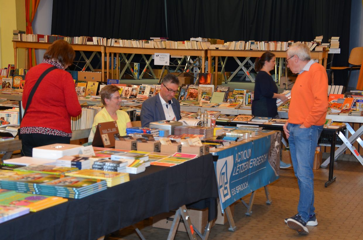 Vill Leit hunn och vun der kulinarescher Offer profitéiert an sech de Mëtteskascht ob der Platz gutt schmaache gelooss. Am Nomëtteg waren 3 ganz interessant a gutt besichten Liesungen fir d’Kanner. E grousse Merci duerfir dem Luc Marteling an Ralph Hilbert, ewéi och allen Aussteller, ouni déi onsen Bichermaart sécher keen esou groussen Erfolleg gewiescht wir. E grousse Merci och allen Donateuren déi et ons erméiglecht hunn, vir eng flott Auswiel un Occasiouns-Bicher den Interesséierten kennen unzebidden. Fir dat Ganzt ze komplettéieren goufen op de Stänn vun der “Edition Kremart” an der “Actioun Lëtzebuerg” och Nei Wierker ugebueden.