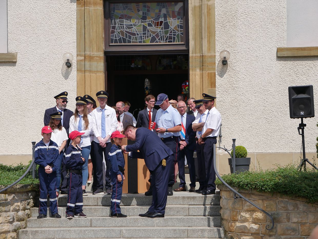 Fir 25 Joer Déngscht am Pompjeescorps gouf vun der Pompjeesfédératioun d’Melanie Stoffel mat der “Verbandsmedaill a Gold” geéiert. Mat dem “Croix de mérite a Selwer mat Kroun” vun der Federatioun goufen de Jos Wagner (zënter 1975) an Günther Benner (zënter 1972) geéiert. D’“Croix de mérite a Gold” kruet den Roger Kremer deen zënter 1950 Member an de Biwer Pompjeeën ass.