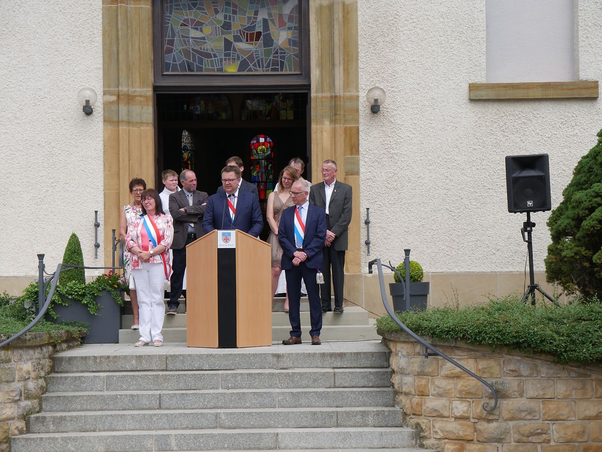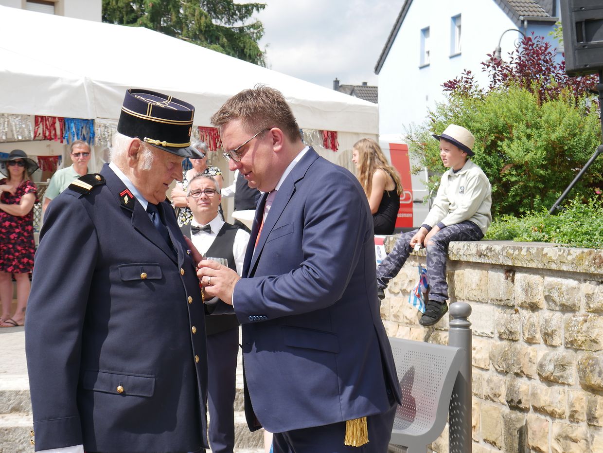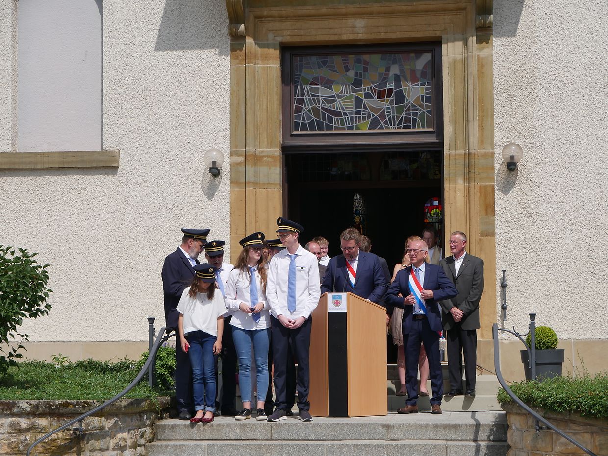 Bei Geleeënheet vum Nationalfeierdag goufen, a Präsenz vum Schäffen a Gemengerot, de Vertrieder vun den lokalen Veräiner a villen Awunner aus der Gemeng, verdéngschtvoll Memberen vun de Biwer Pompjeeën an der Biwer Musek vum Här Buergermeeschter Marc Lentz geéiert.