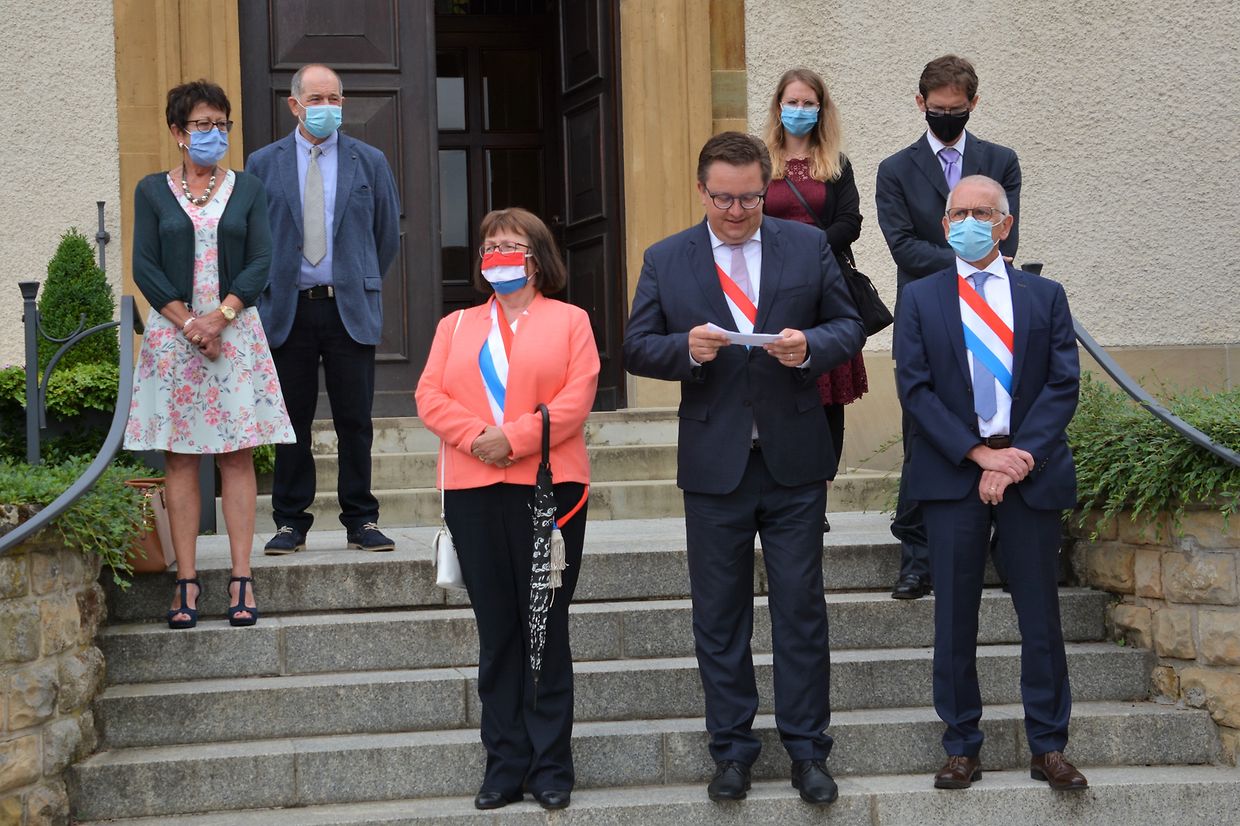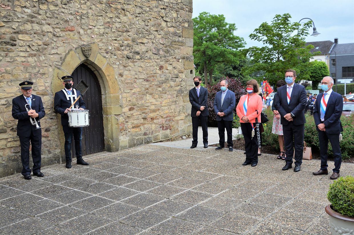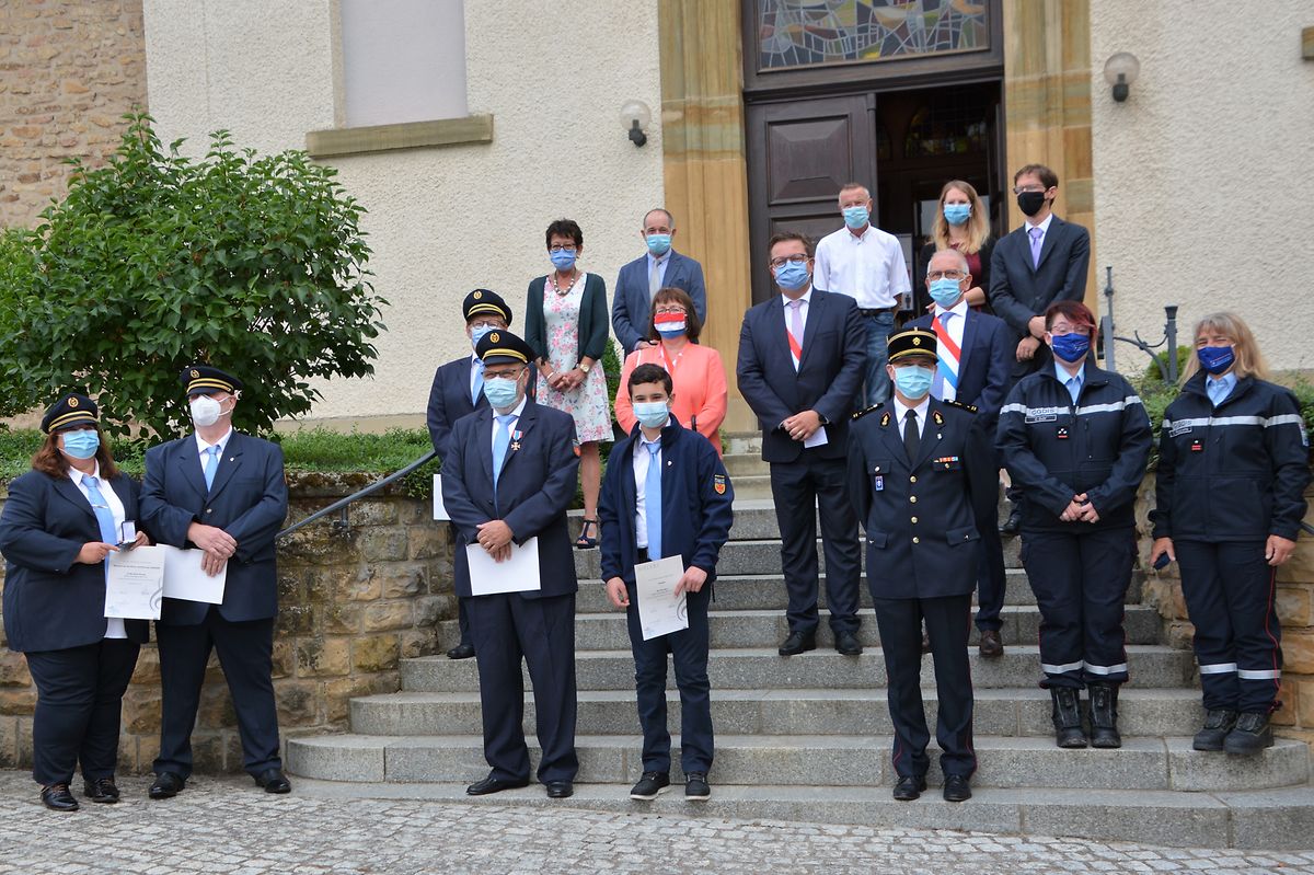 Och wann dëst Joer onse Nationalfeierdag net esou gefeiert konnt ginn ewéi an der Vergangenheet, esou war et den Gemengenautoritéiten vun der Gemeng Biwer wichteg op dësem Dag un eise Grand-Duc Henri an un déi ganz groussherzoglech Famill ze denken. No dem feierlechen Te Deum an der Parkierch zu Biwer, verschéinert vum Gesang Biwer an der Biwer Musek, gouf eng Gerbe beim Denkmal bei der Kiirch niddergeluecht an d’Sonnerie aux morts gespillt. Uschléissend huet de Buergermeeschter Marc Lentz e puer Wuert un d’Awunner aus der Gemeng geriicht a Medaillen u verdéngschtvoll Membere vun der Musek an dem Rettungsdéngscht CIS-Biwer iwwerreecht. Geéiert goufen vun der Biwer Musek fir 5 Joer mat dem Insigne vun der UGDA de Marc Majerus, Claude Schmit a Nathalie Welsch, fir 10 Joer mat der Medaille de mérite en bronze de Paul O’Brien, fir 20 Joer de Gustave Stoffel mat der Medaille de mérite en argent, fir 30 Joer d’Maud Bewer-Gilliard an d’Josée Schaefer-Zenner mat der Medaille de mérite en vermeil an mat der Médaille de mérite en vermeil avec palmette d’Monette Schmit-Marx fir 40 Joer Aktivitéit. De Gustave Stoffel krut awer och nach zousätzlech vun der Union Grand-Duc Adolphe d’ Croix de mérite en vermeil fir séin Engagement als President vum Veräin wärend 20 Joer. Beim CIS-Biwer goufen mat de Medailen "Mérite de la Sécurité Civile" vum CGDIS d’Claudine Duhr mat der Medaille en bronze fir 10 Joer an d’Claudine Pletschette mat der Medaille en vermeil fir 20 Joer Déngscht, geéiert. Mir gratuléieren!