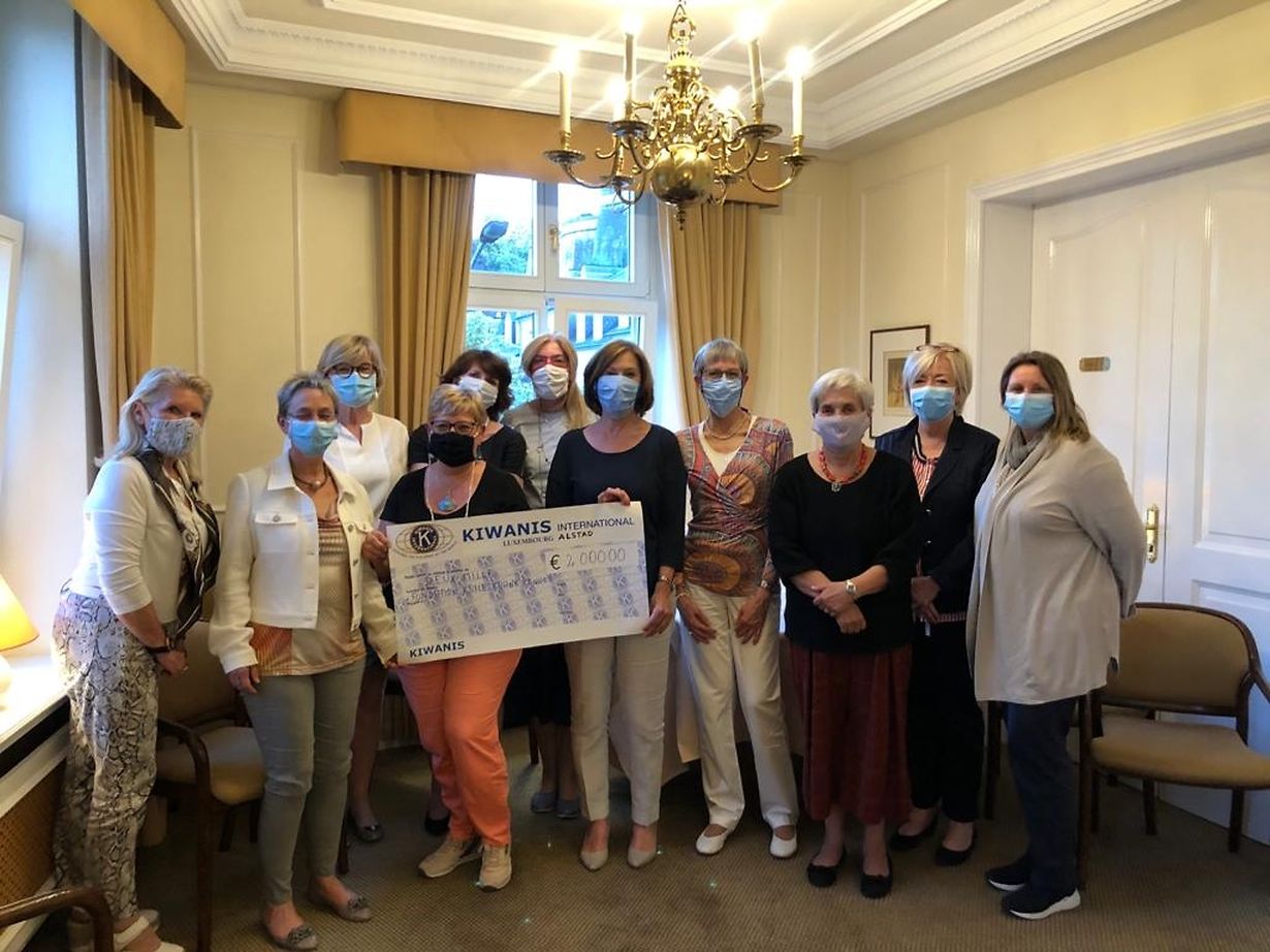 Wärend dem Confinement am Mäerz an Abrëll hunn d‘Pierrette Kemp-Klein an d'Béatrice Peters fläisseg Stoffmasken gebitzt an un d’Awunner vu Blaaschent verdeelt. Well d‘Stoffbutticker nach zou waren, sinn d‘Masken aus Bettgezei oder soss Reschter vu Stoff gebitzt ginn. Den Erléis vun dëser Aktioun waren 2.000 Euro, déi un d’Fondatioun Kriibskrank Kanner gespent goufen. D’Dammen vum Kiwanis Club Alstad hunn d’Aktioun koordinéiert an d’Suen gesammelt. bp