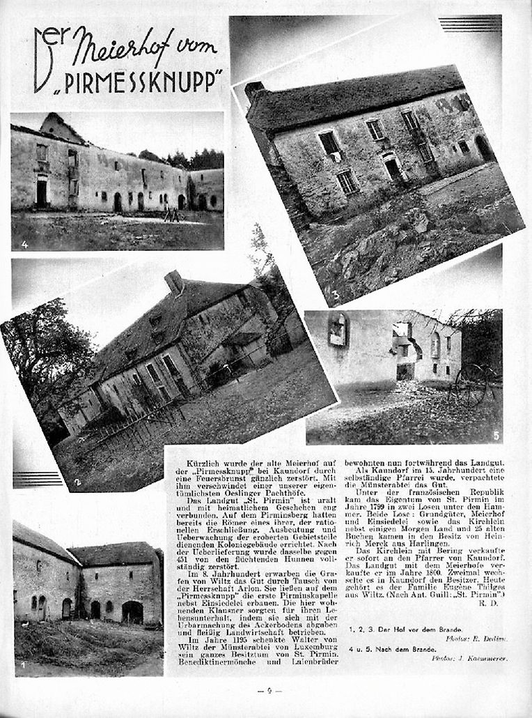 D'Famill hat zu Noutem um Knupp gelieft an ass 1928 als Piechter a Nofolger vun der Famill Mathias Schmitz-Reitz op den Haff um Përmesknupp geplënnert. Den Haff war am Besëtz vun der Famill Thilges vun Wolz an séit ronn 70ig Joer verlount. An deem no war och séin Zoustand, etwar neck einfach fir mat der grousser Famill iwwer d' Ronnen ze kommen. Wëll den Haff néck mi genuch abruecht huet , ass der Madame Margot hiren Papp op Wolz op d'Ideal schaffen gang. Hir Mamm huet sech doheem em deen ganzen Trapp Kanner gekëmmert an zesummen mat hirem Mann hu sie no Feierowend all Uebichten um Haff erleedigt. Die schon mi grouss Bridder sinn op Bitscht an d' Schoul gang, em die 5km all Daag. D Gemengenverwaltung vun Miecher huet dofir 40 Frang pro Joer un d' Gemeng Géischdrëf bezuelt. D' Liewen war alles anescht wie einfach, an esou haten der Madame Margot hir Elteren am Joer 1936 d' Pacht vum Haff no bal 9 Joer gekënnigt, ir den 28ten Oktober gèint 16 auer een grousst Feier ausgebrach ass. Den ganzen Haff ass romp an stomp bis op d' Maueren ofgebrannt, all Hëllef war emsoss. Gottseidank war kengem Mënsch eppes geschitt,an och d' Béischten an e puer Maschinen konnten gerett ginn.