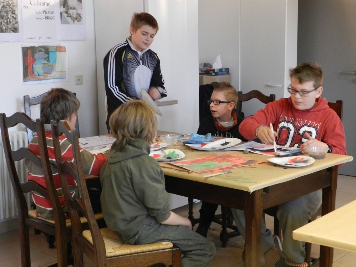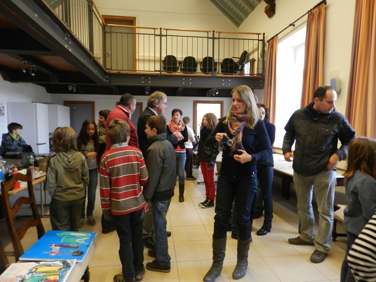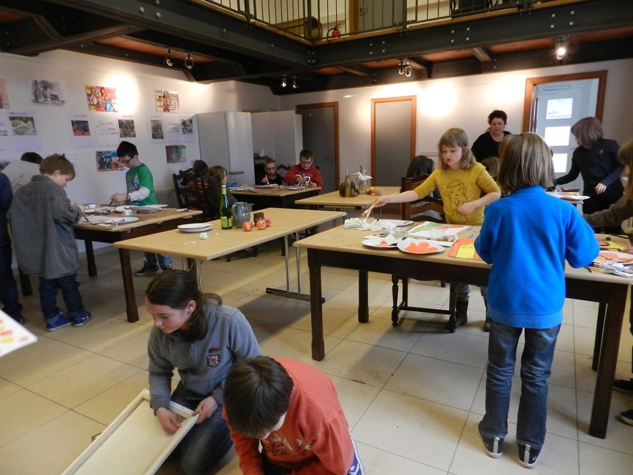 Den Ouschterhues haat just seng Molfuerwen ewech geraumt ,dun hun die jong Künstler vun 8 .12 Joer aus der Stausee Gemeng an der Schoul vun Bèiwen ënner der Leedung vum Ingrid Decot an dem Patrice Schannes , d'Fuerwen an d'Pinselen aus gepaakt fir een Moolkuer vun 2 Deeg.D'Kanner hun matt enormer Begeeschterung geschafft fir hiren groussen Viirbiller et no ze maachen. D'Elteren, de Burgermeeschter an seng 2 Schäffen hun gestaunt waat die jong Künstler vun Mueren op hir Leinwand gezaubert hun, Dëst war eng Initiative vun der Kultur Kommisioun an no deem Erfollig an deem Resultat kann een dovun aus gon datt daat neck fir d'Lëscht war.