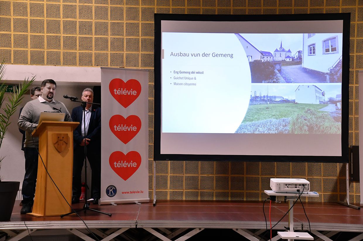 OP de Neijoerspatt hat d'Gemeng Helperknapp, en Donneschdeg den 12. Januar an de Festsall op Béiwen/Atert invitéiert. No de Wierder vu Wëllkomm a Merci vum Buergermeeschter Fränk Conrad, sin di zukünftig Projeten an der Gemeng och virgestallt gin. Duerno war et um Organisatiounscomité fir de groussen Téléviedag den 22. Abrël dest Joer mat allen Acteuren am Detail och virzestellen. Mat engem grousse Merci am Virfeld vun desem kommenden Evenement huet Koordinatorin Diane Wunsch d'Gemeng félicitéiert an hinnen all e groussen Erfolleg gewënscht. Duerno ass beim Patt wärend e puer gemittlich Stonnen op dat neit Joer ugestouss gin. (CR ) (Fotoen: Charel Reiser)