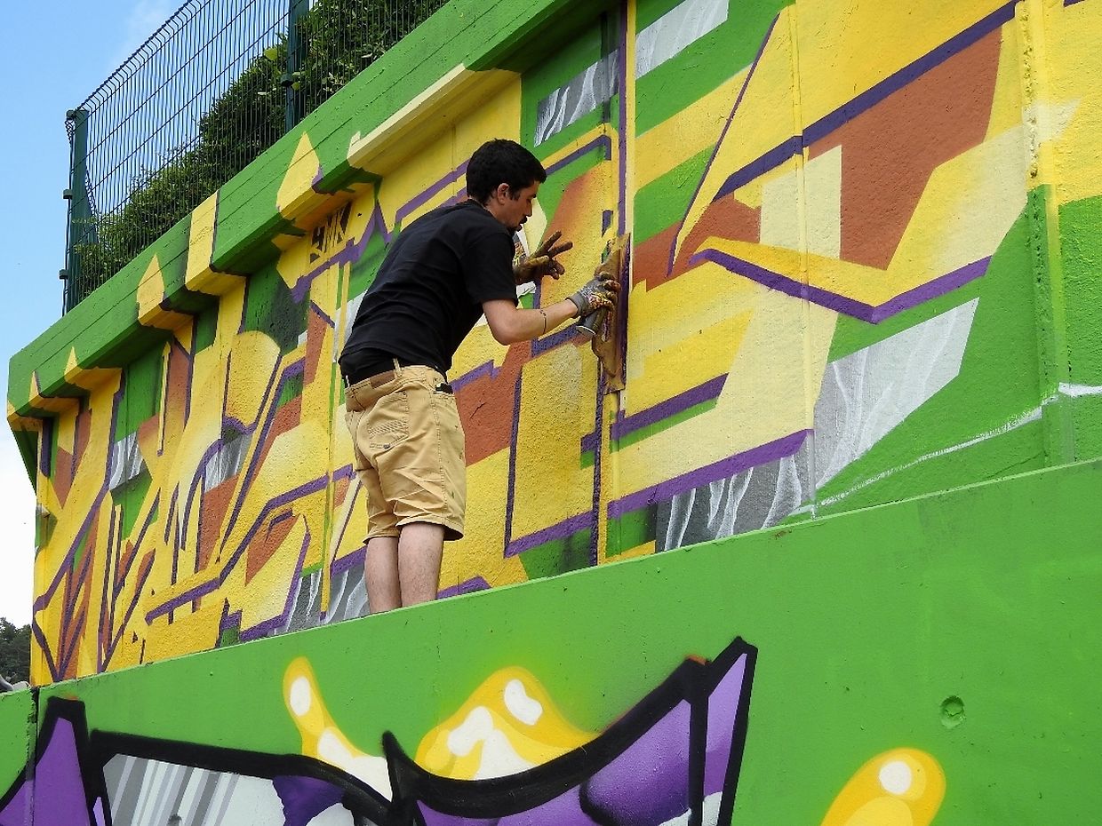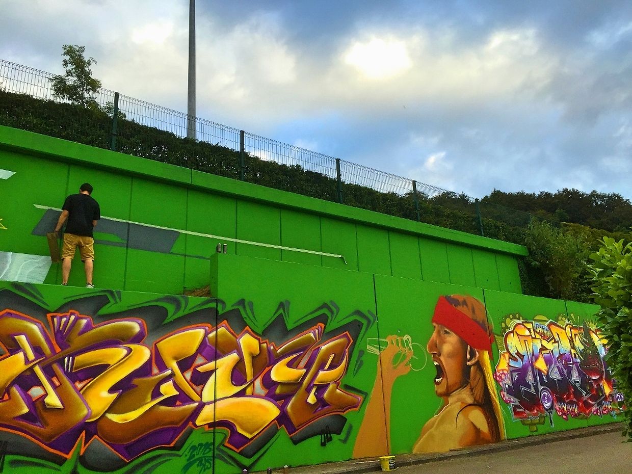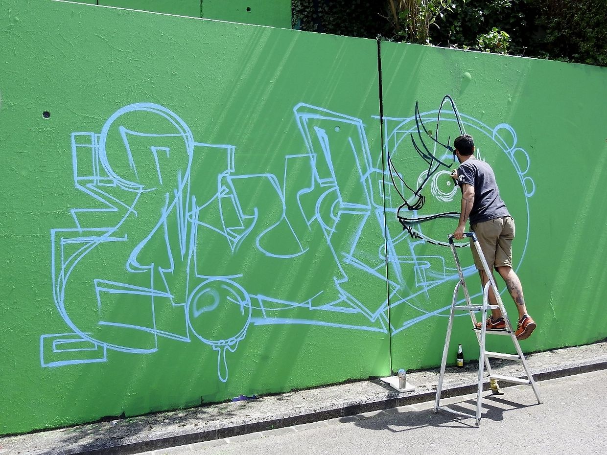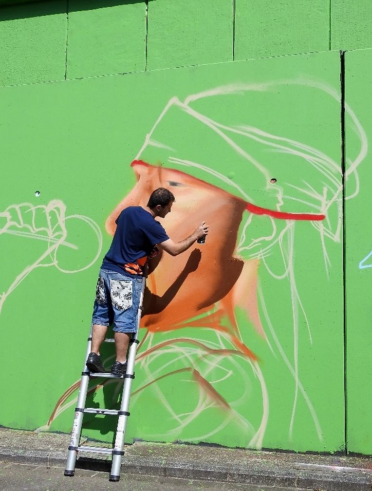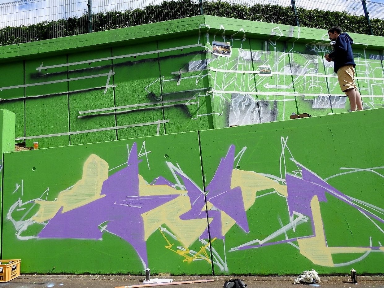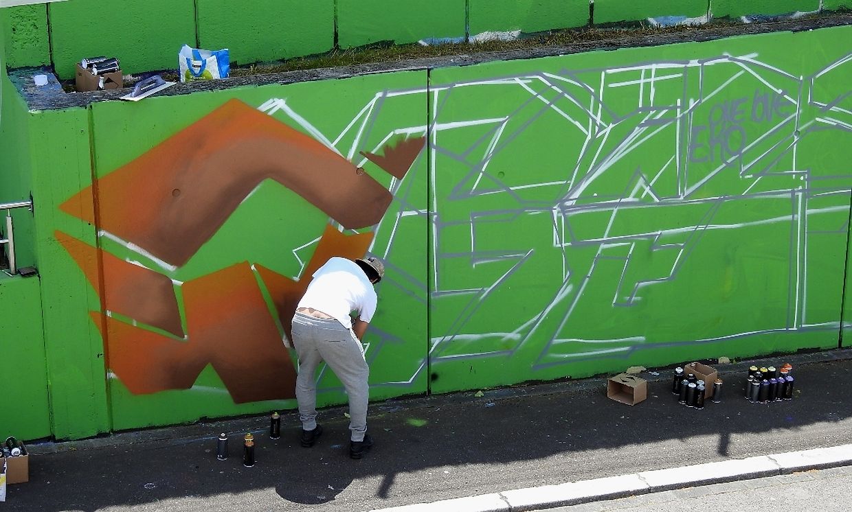 Während dem ganzen Weekend konnte een deenen verschiddenen Artisten bei hirer Aarbecht iwwer d´Schëller kucken an wien drun interesséiert war konnt selwer e Graffiti Panneau sprayen.