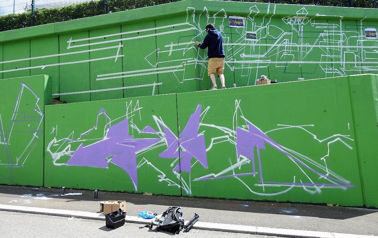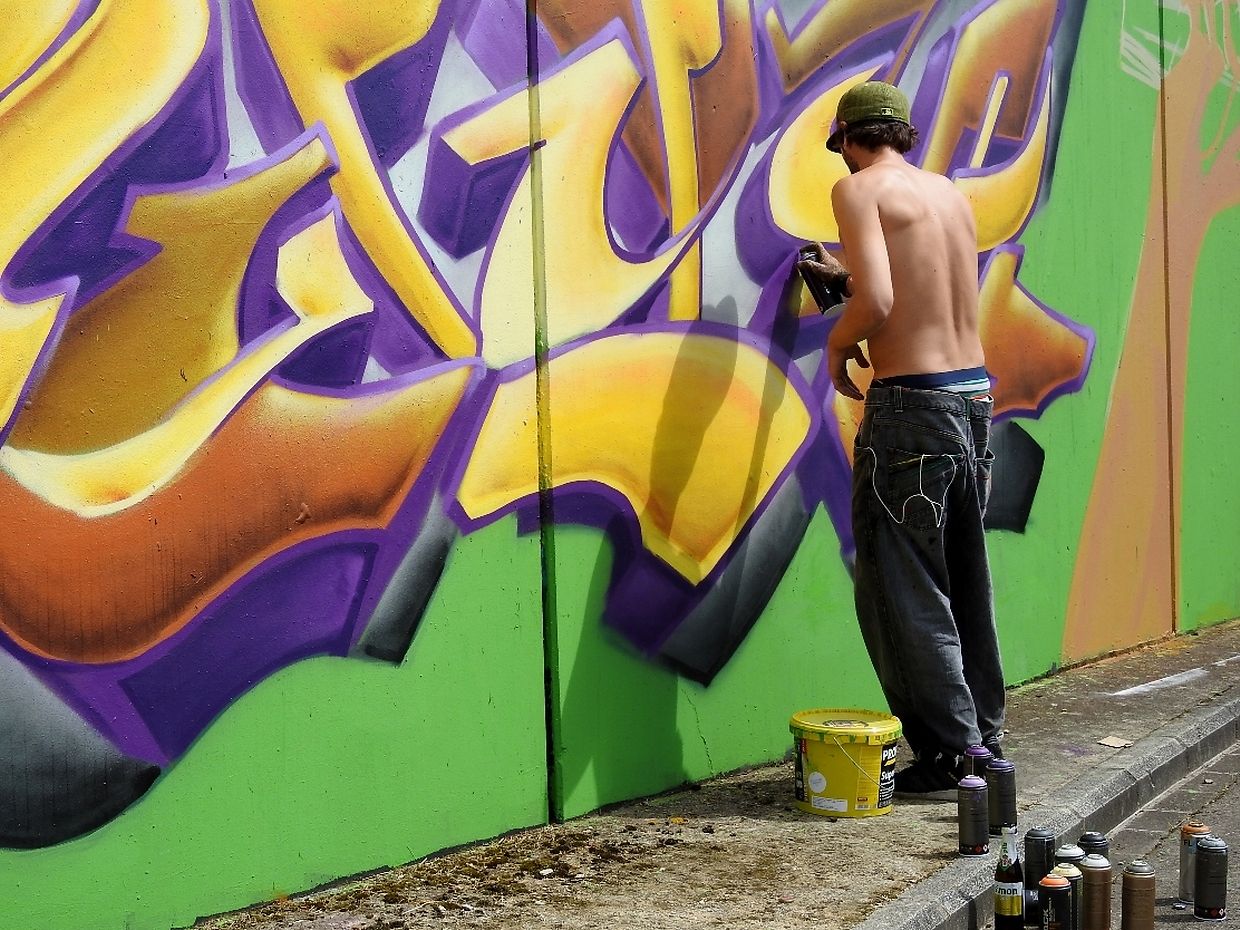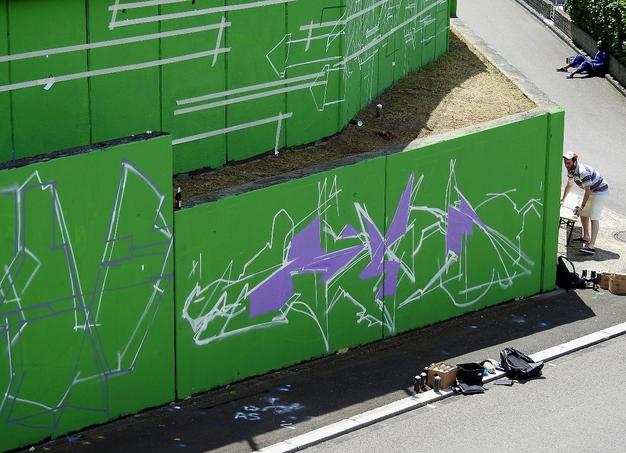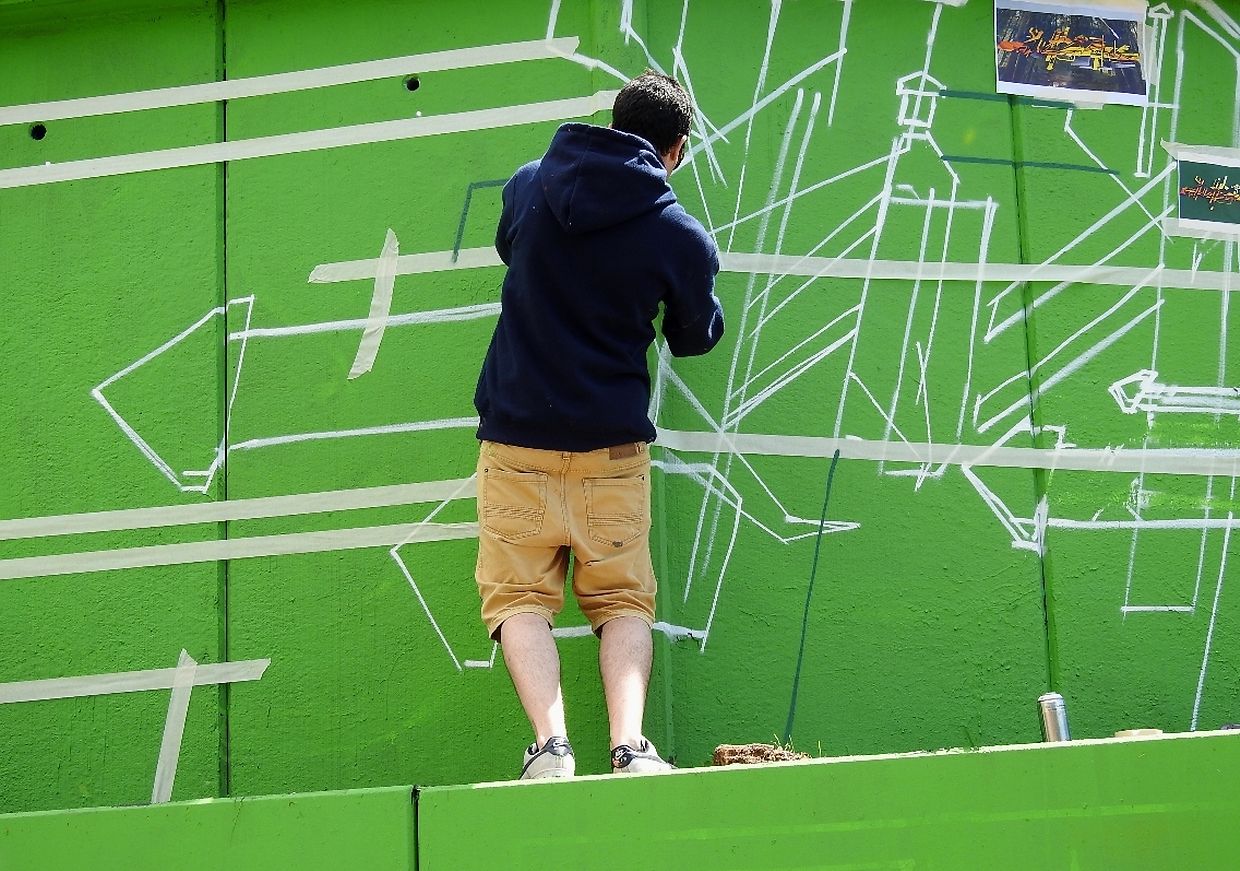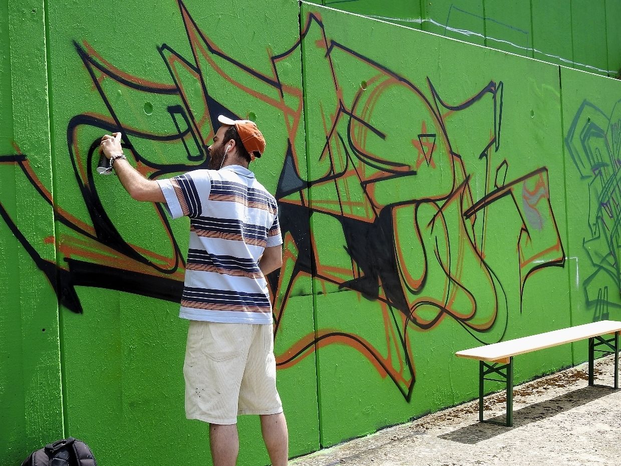 Während dem ganzen Weekend konnte een deenen verschiddenen Artisten bei hirer Aarbecht iwwer d´Schëller kucken an wien drun interesséiert war konnt selwer e Graffiti Panneau sprayen.