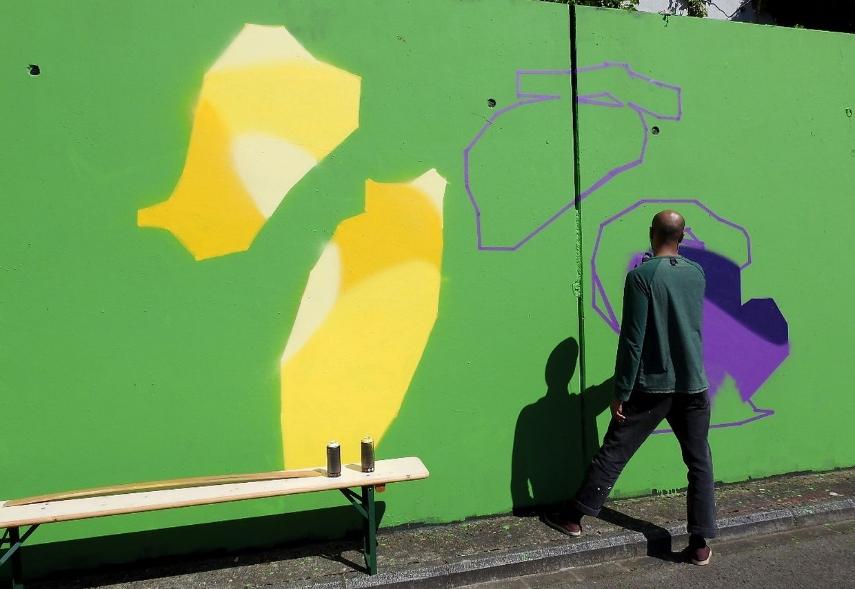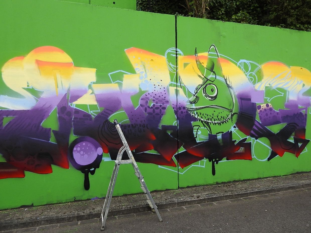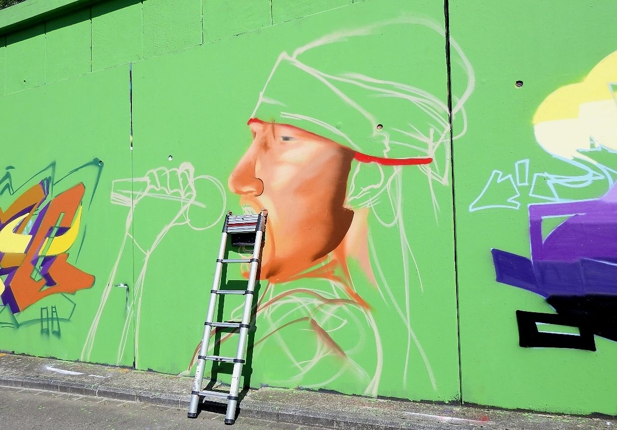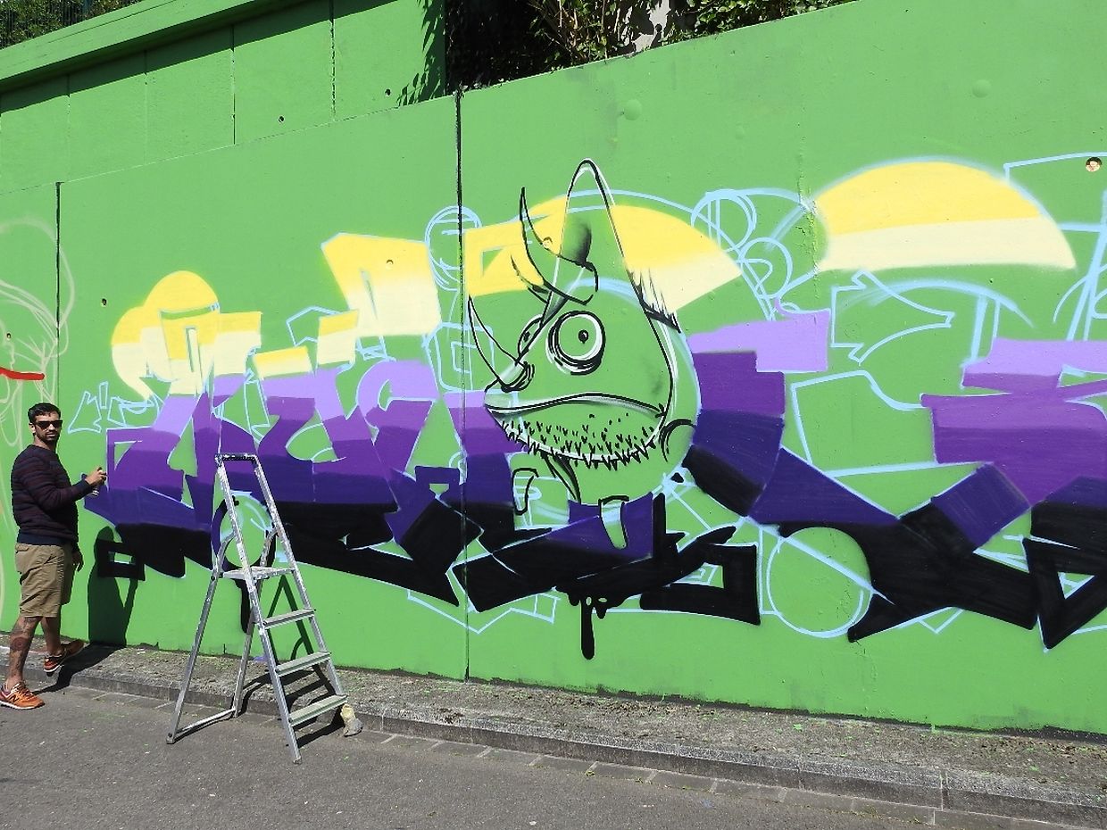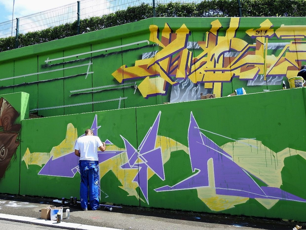 Während dem ganzen Weekend konnte een deenen verschiddenen Artisten bei hirer Aarbecht iwwer d´Schëller kucken an wien drun interesséiert war konnt selwer e Graffiti Panneau sprayen.