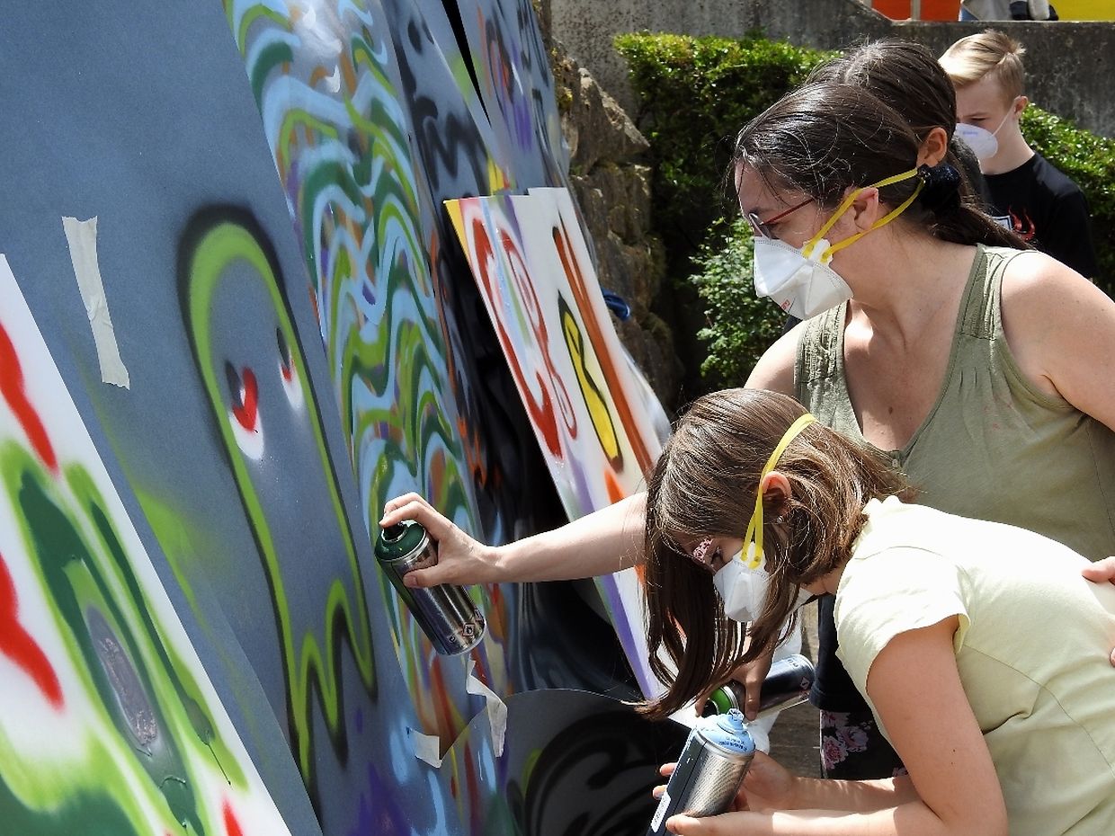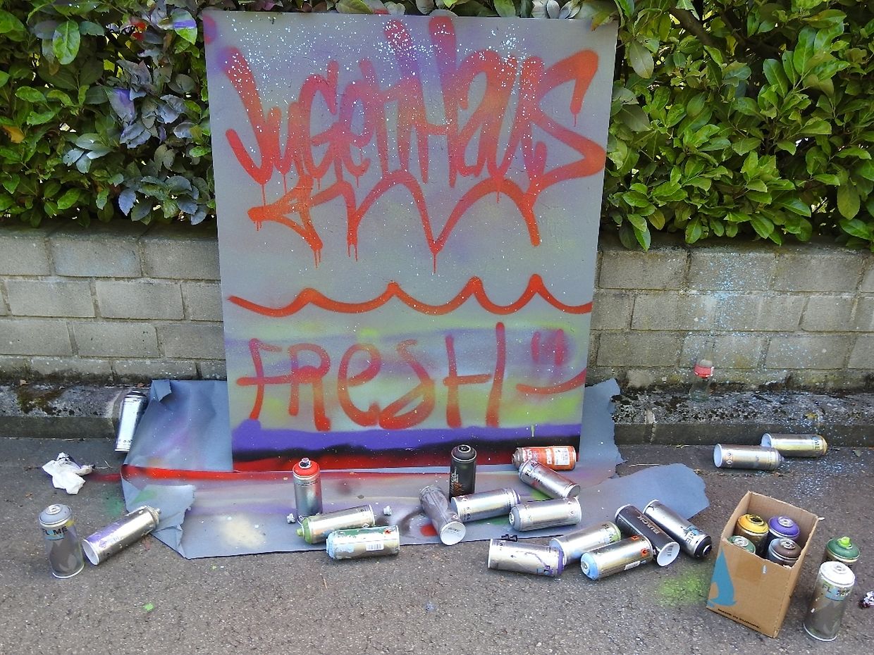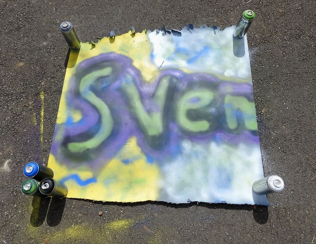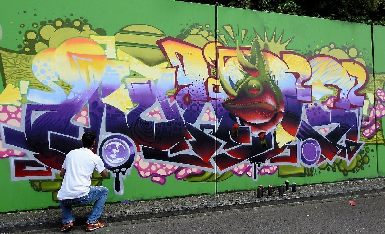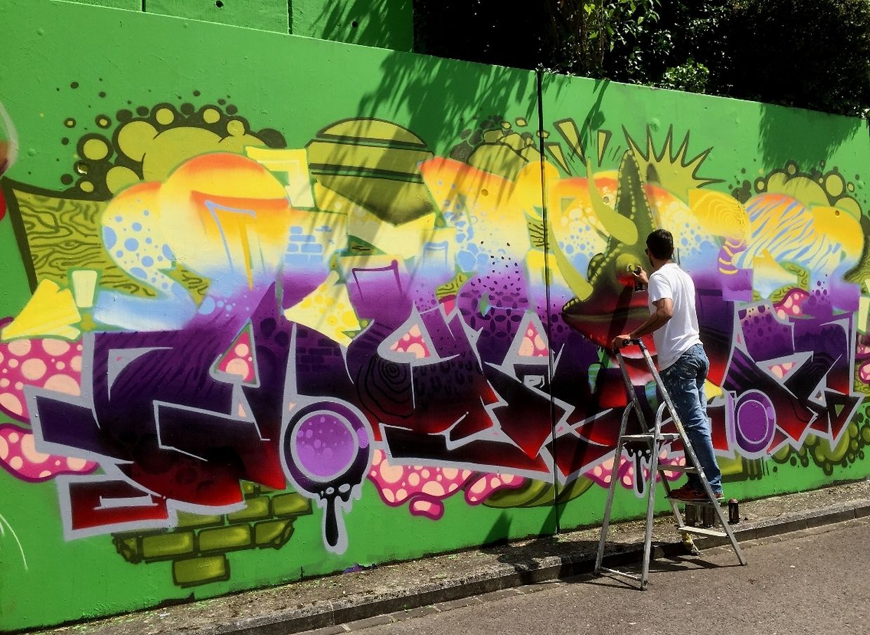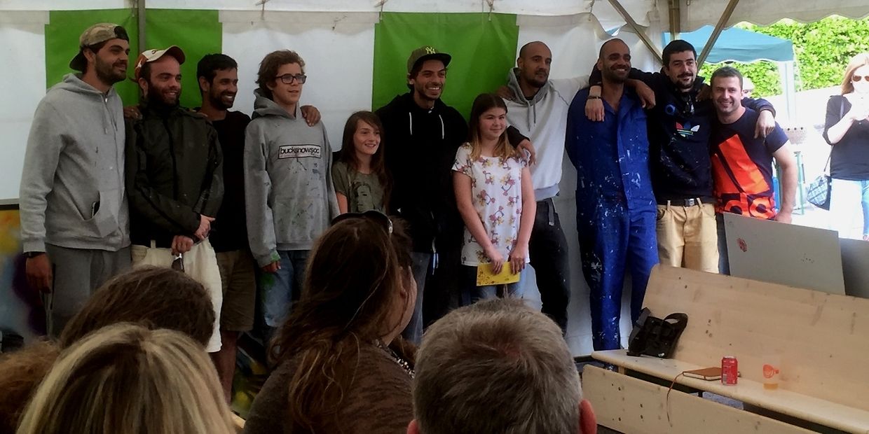 Während dem ganzen Weekend konnte een deenen verschiddenen Artisten bei hirer Aarbecht iwwer d´Schëller kucken an wien drun interesséiert war konnt selwer e Graffiti Panneau sprayen.
