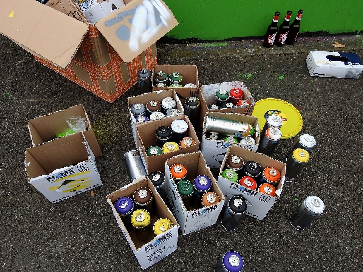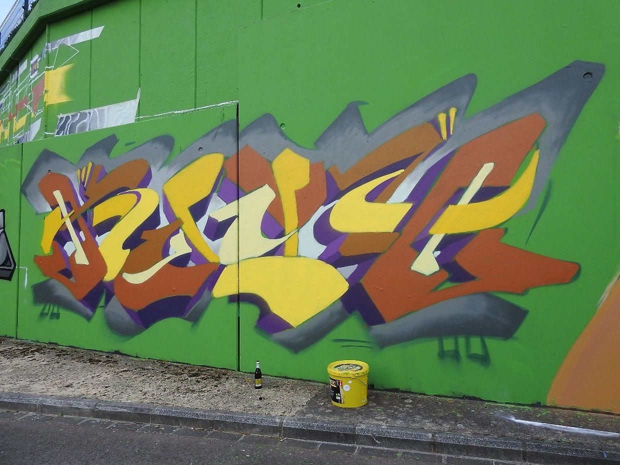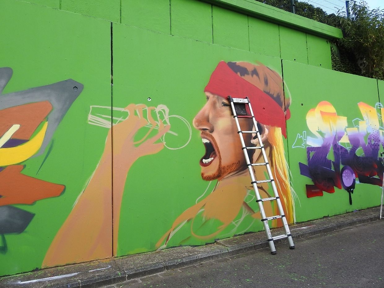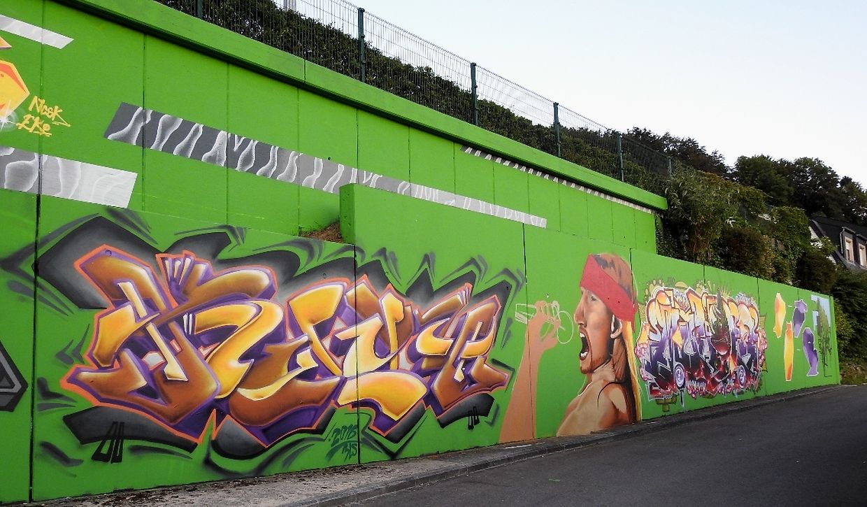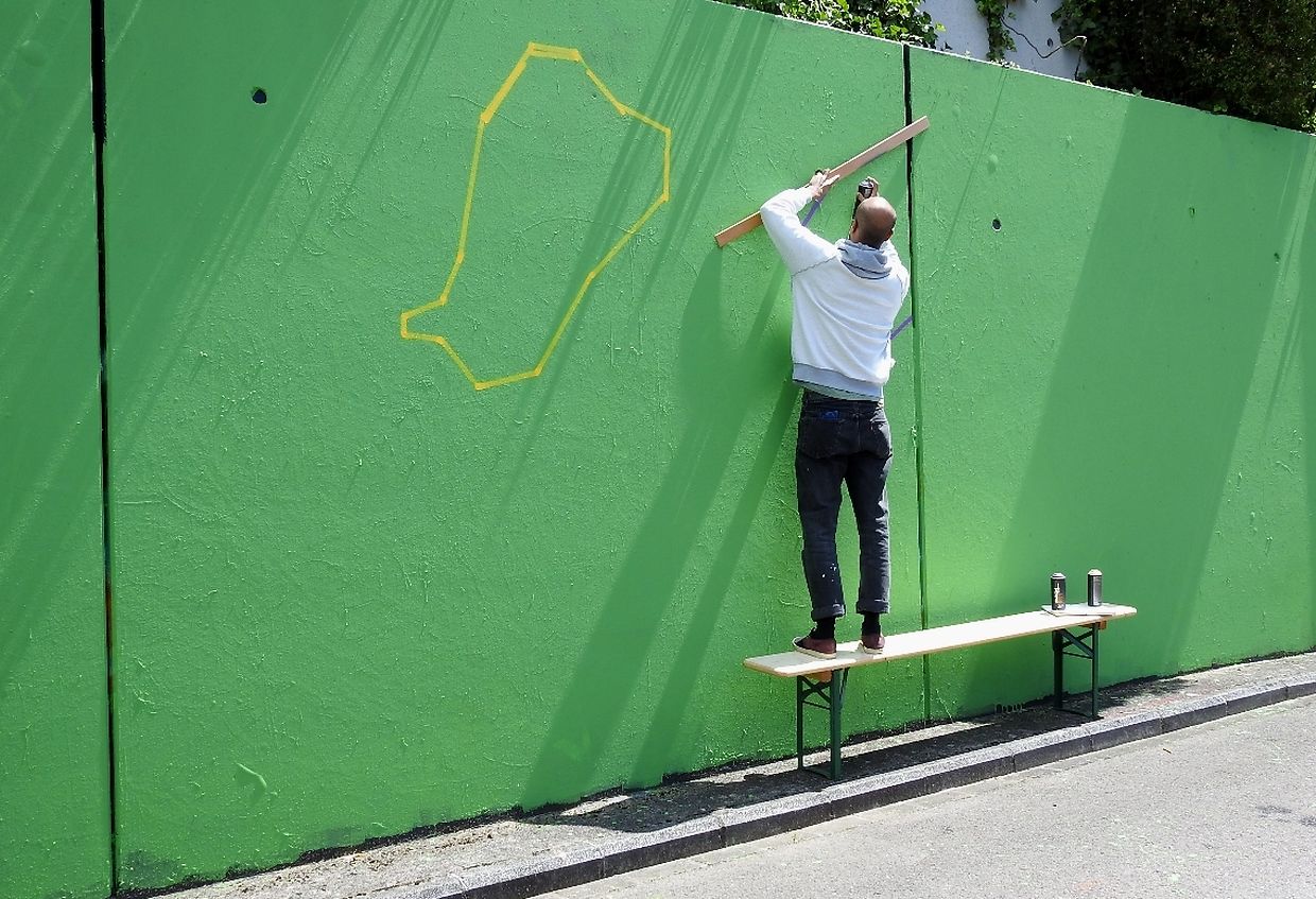 Während dem ganzen Weekend konnte een deenen verschiddenen Artisten bei hirer Aarbecht iwwer d´Schëller kucken an wien drun interesséiert war konnt selwer e Graffiti Panneau sprayen.