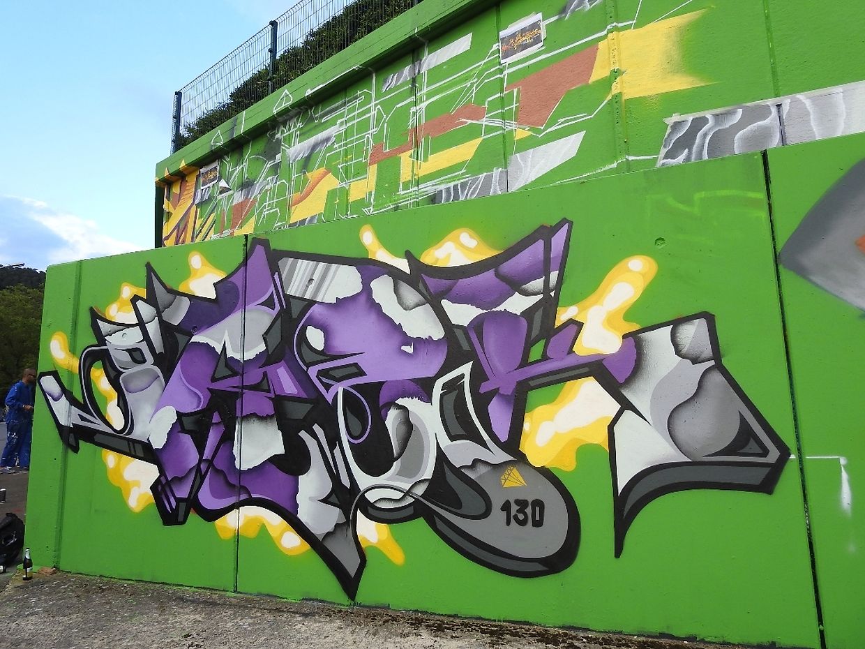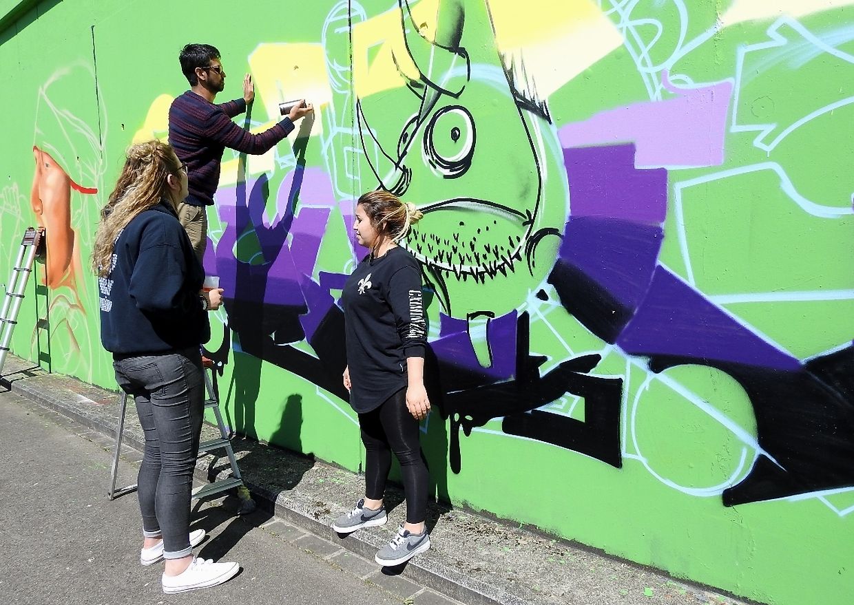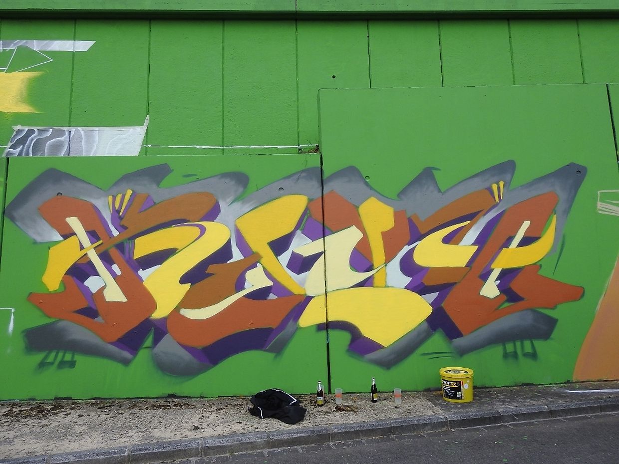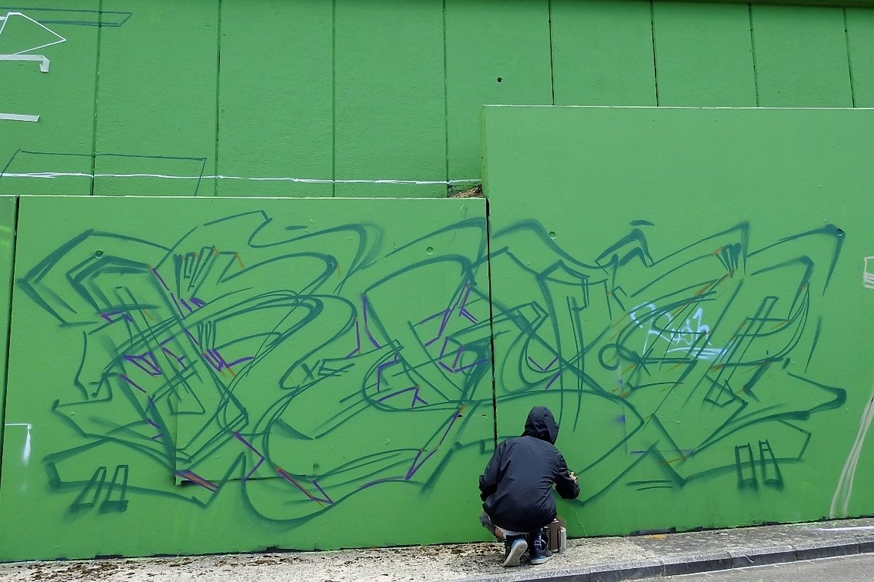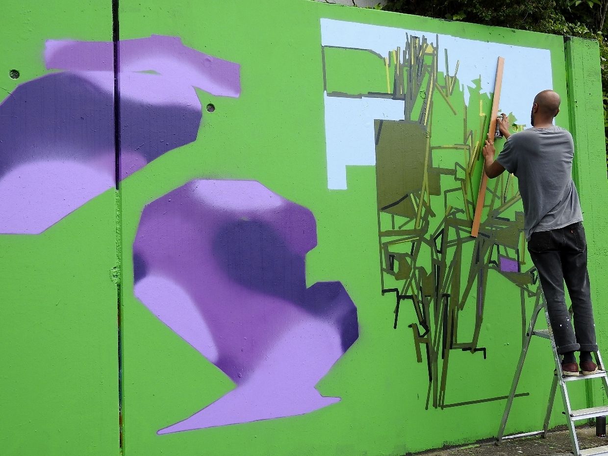 Während dem ganzen Weekend konnte een deenen verschiddenen Artisten bei hirer Aarbecht iwwer d´Schëller kucken an wien drun interesséiert war konnt selwer e Graffiti Panneau sprayen.