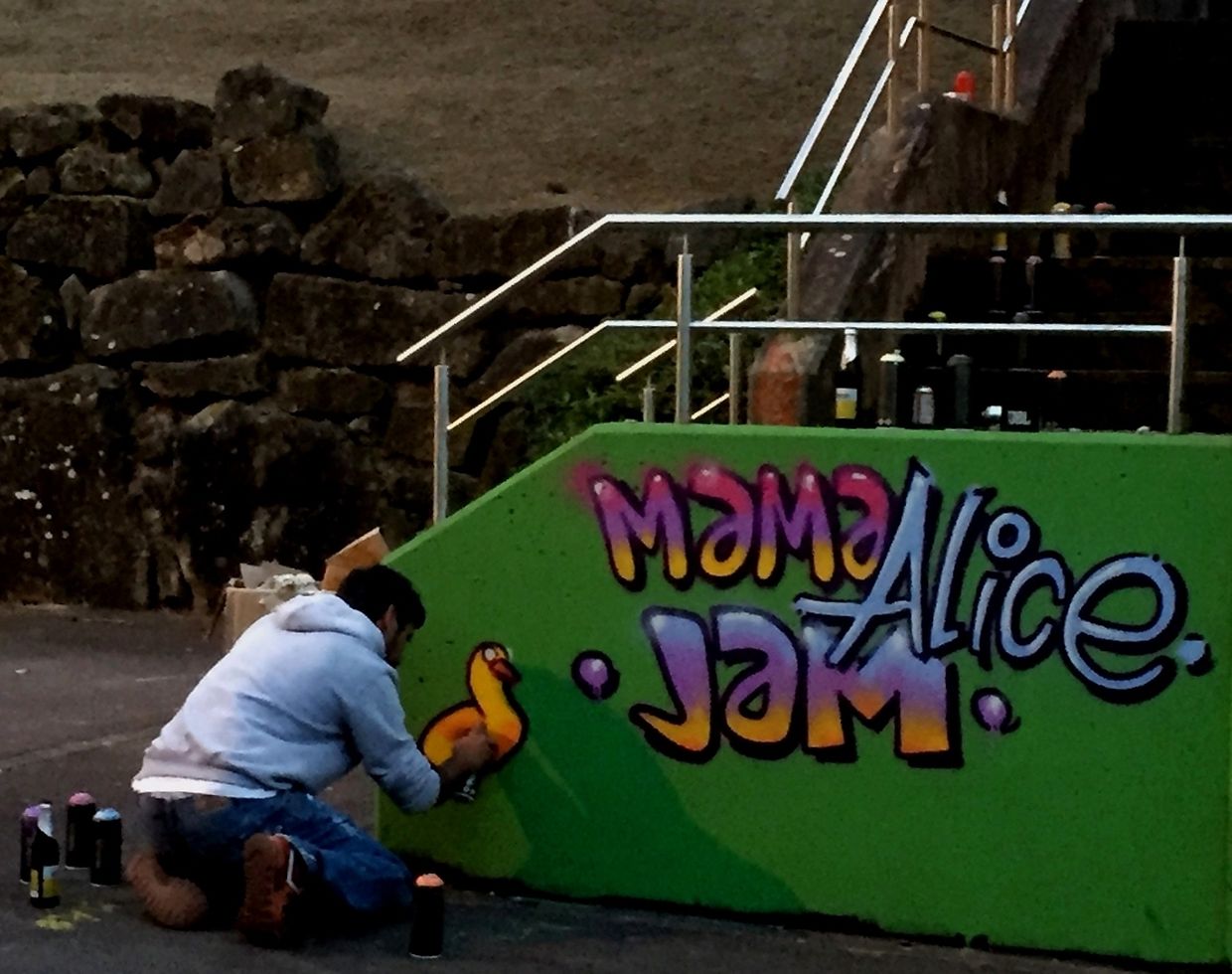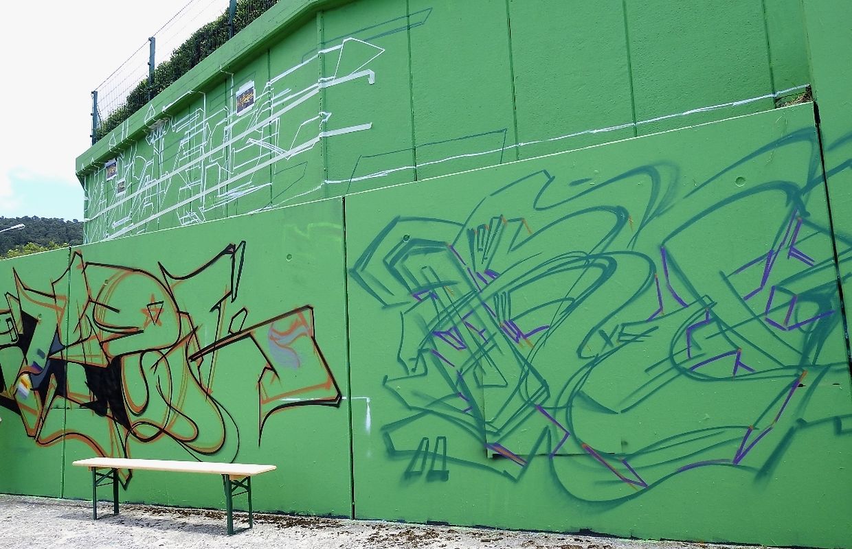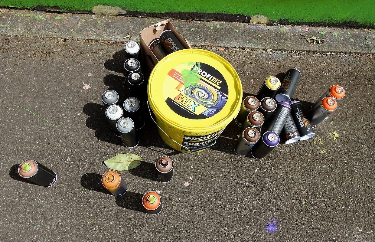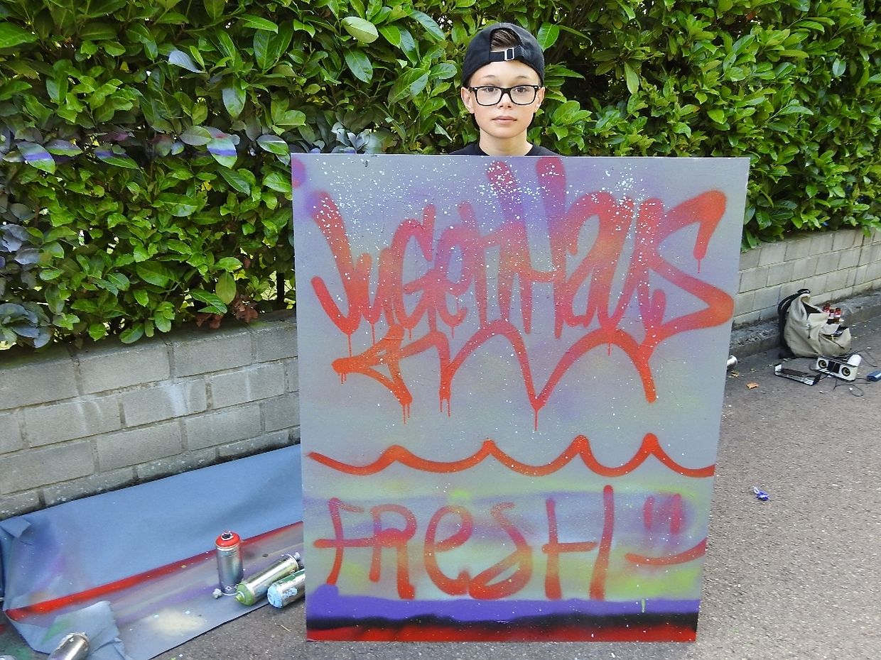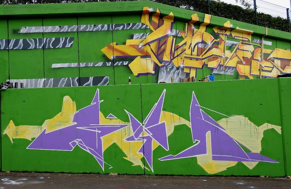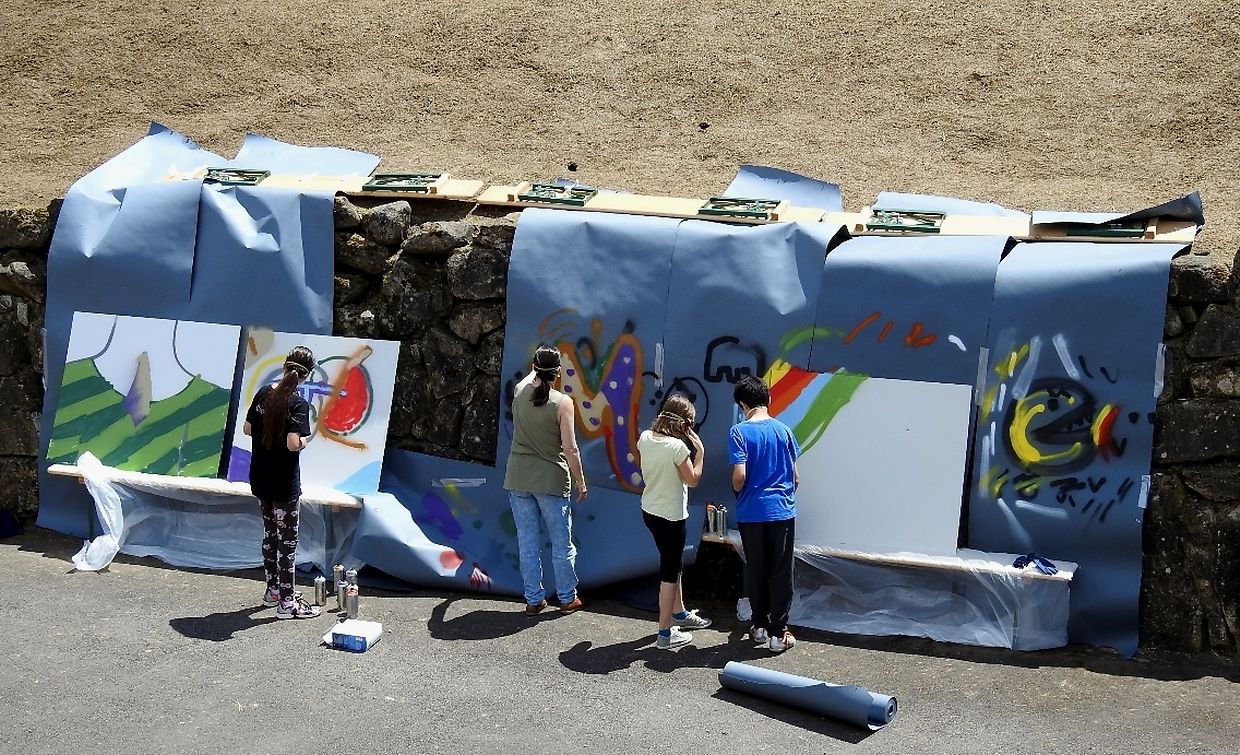 Während dem ganzen Weekend konnte een deenen verschiddenen Artisten bei hirer Aarbecht iwwer d´Schëller kucken an wien drun interesséiert war konnt selwer e Graffiti Panneau sprayen.