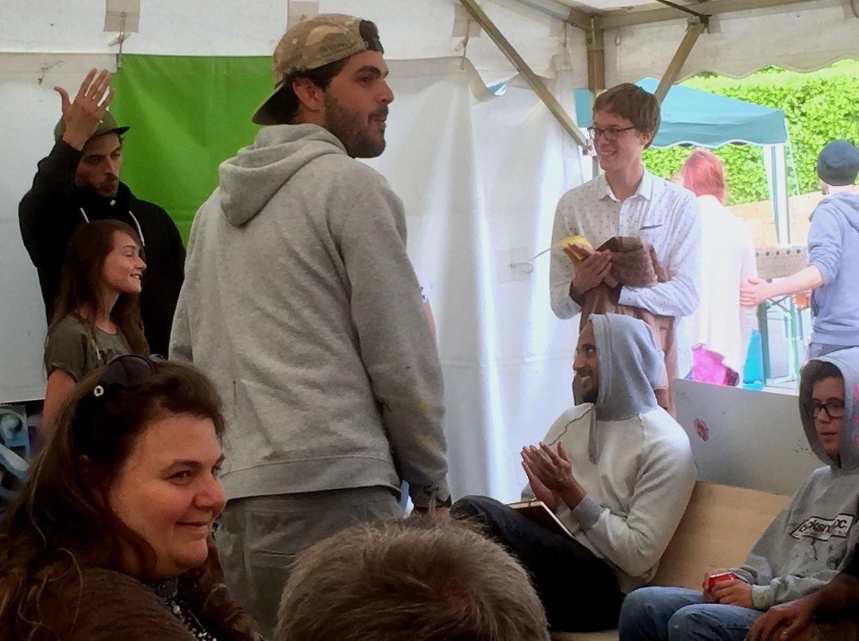 Nodeems Freides Mëttes d´Schüler vum Cycle 4.2 vu Luerenzweiler an engem Workshop deen ënnert der fachmännescher Leedung vun internationalen Artisten geleet gouf voll Begeeschterung richteg Konschtwierker produzéiert hunn , war Samschdes Owes an enger klenger Receptioun Präisverdeelung. Bei dëser Geleeënheet gouf den Éierewäin vun der Gemeng Luerenzweiler zerwéiert.