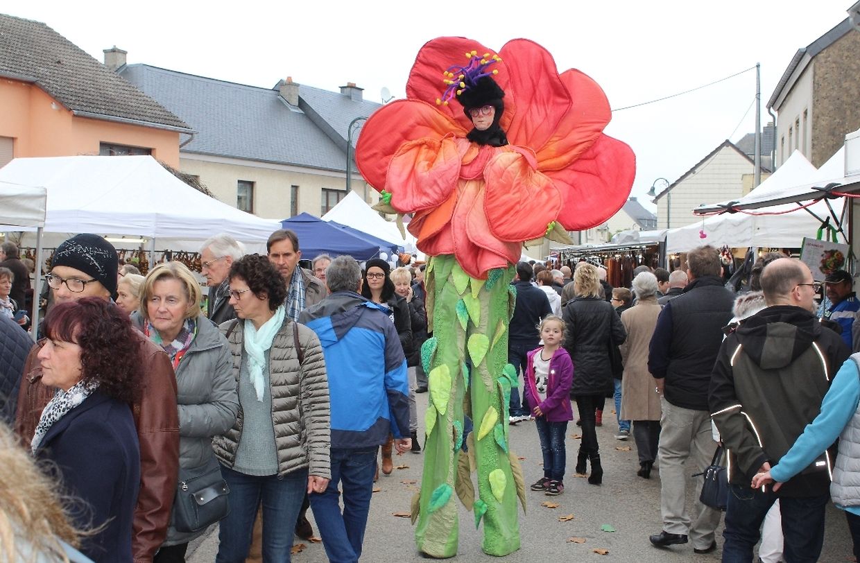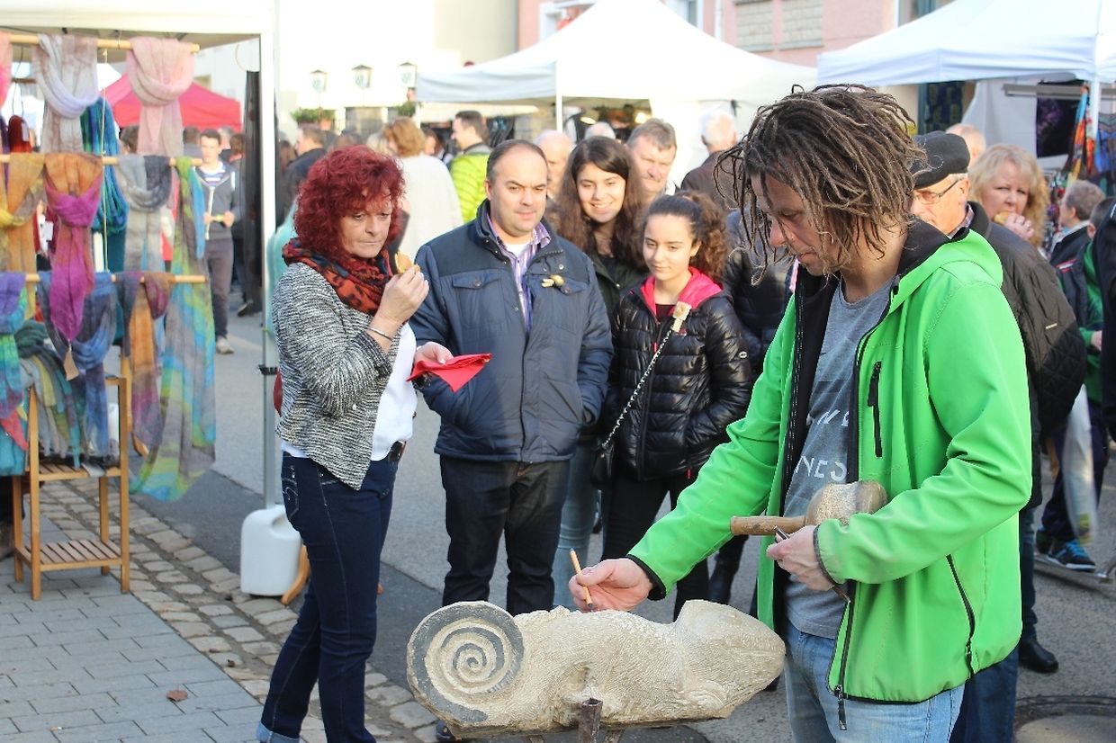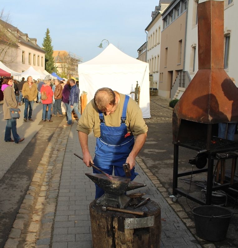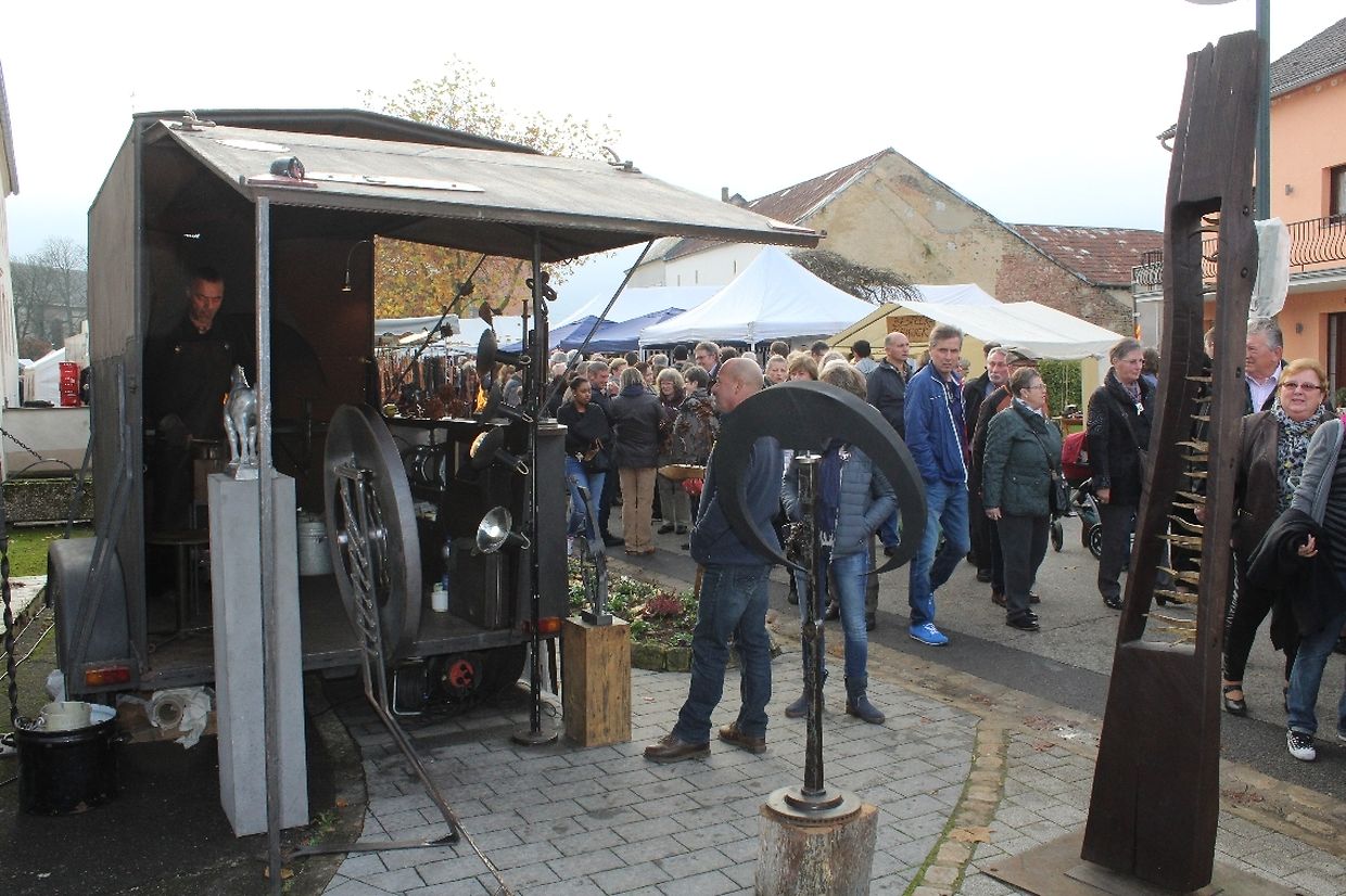 Kunsthandwerker aus Luxemburg und dem nahen Ausland lieferten am vergangenen Wochenende bei trockenem Herbstwetter mit ihren individuellen und hochwertigen Kreationen den anschaulichen Beweis für Kunstfertigkeit und Gestaltungskraft. Auch dieses Jahr verwandelten über 130 Aussteller das idyllische Dorf in eine große Werkstatt, in der sich Kunst und Handwerk fließend vereinten. In Garagetoren, Scheunen und in herbstlich dekorierten Ständen entlang der Straße stellten die Künstler ihre Ware aus. Von Keramiker über Gold- und Silberschmiede, Metall- und Holzverarbeiter, nahezu alle Kunsthandwerker waren vertreten. Neben den Kunsthandwerkern konnten die zahlreichen Besucher auch Käse und Milchprodukte sowie regionale Produkte aus dem „Naturpark Mellerdall“ entdecken. Das Angebot auf dem Markt war hochwertig und außerodentlich vielfältig. An manchen Ständen wurden die unterschiedlichsten Arbeitsweisen und Herstellungsprozesse demonstriert und erklärt.