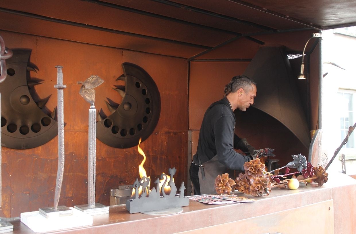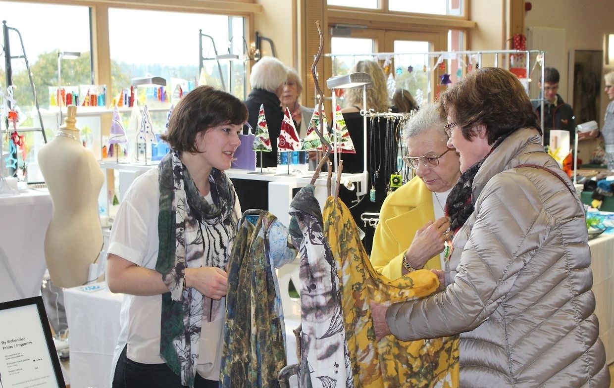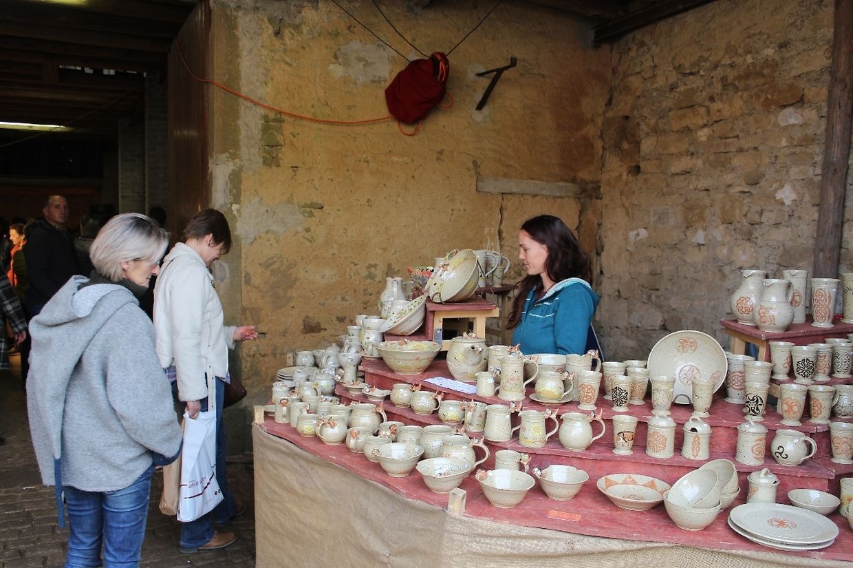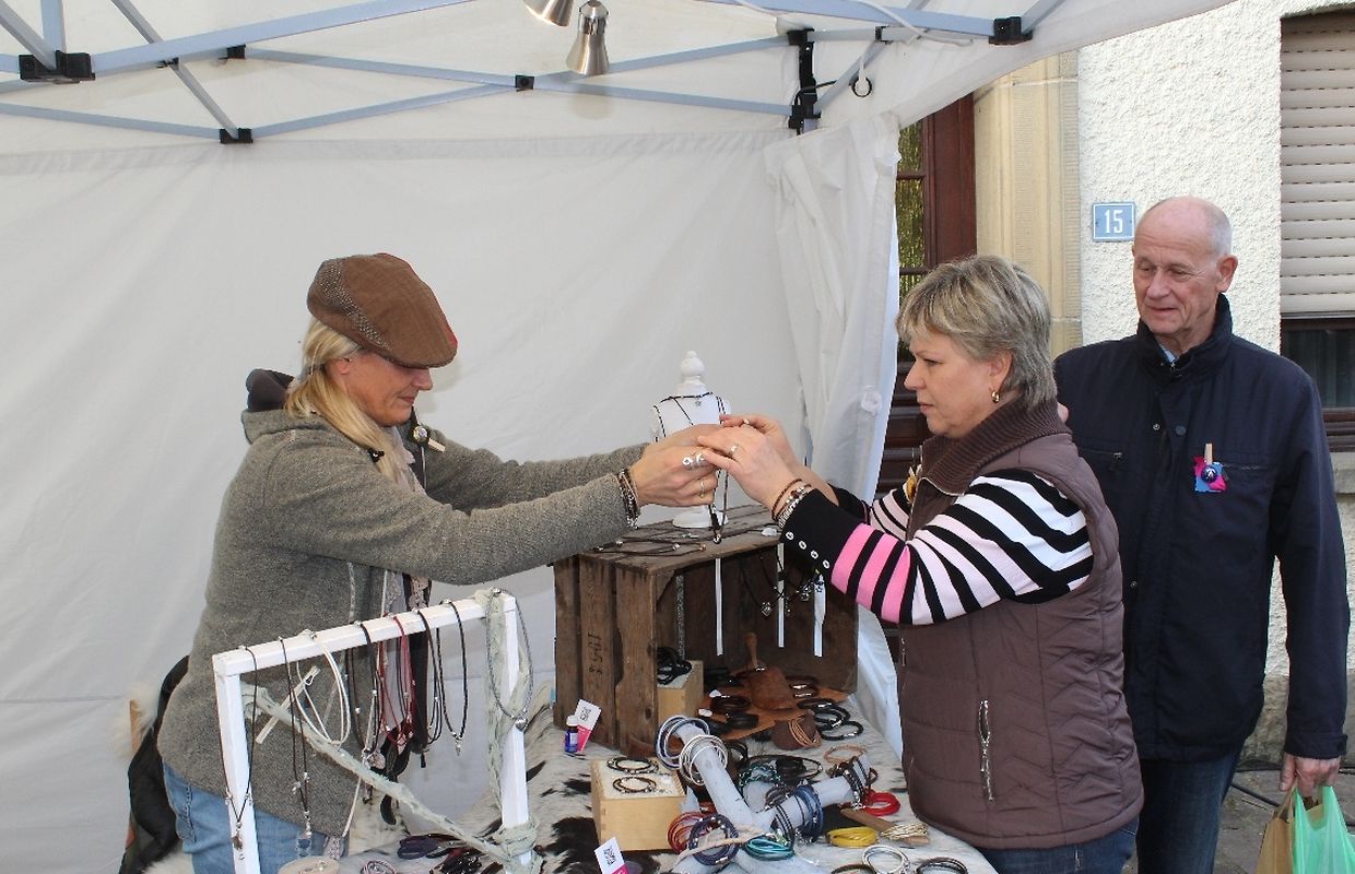 Kunsthandwerker aus Luxemburg und dem nahen Ausland lieferten am vergangenen Wochenende bei trockenem Herbstwetter mit ihren individuellen und hochwertigen Kreationen den anschaulichen Beweis für Kunstfertigkeit und Gestaltungskraft. Auch dieses Jahr verwandelten über 130 Aussteller das idyllische Dorf in eine große Werkstatt, in der sich Kunst und Handwerk fließend vereinten. In Garagetoren, Scheunen und in herbstlich dekorierten Ständen entlang der Straße stellten die Künstler ihre Ware aus. Von Keramiker über Gold- und Silberschmiede, Metall- und Holzverarbeiter, nahezu alle Kunsthandwerker waren vertreten. Neben den Kunsthandwerkern konnten die zahlreichen Besucher auch Käse und Milchprodukte sowie regionale Produkte aus dem „Naturpark Mellerdall“ entdecken. Das Angebot auf dem Markt war hochwertig und außerodentlich vielfältig. An manchen Ständen wurden die unterschiedlichsten Arbeitsweisen und Herstellungsprozesse demonstriert und erklärt.