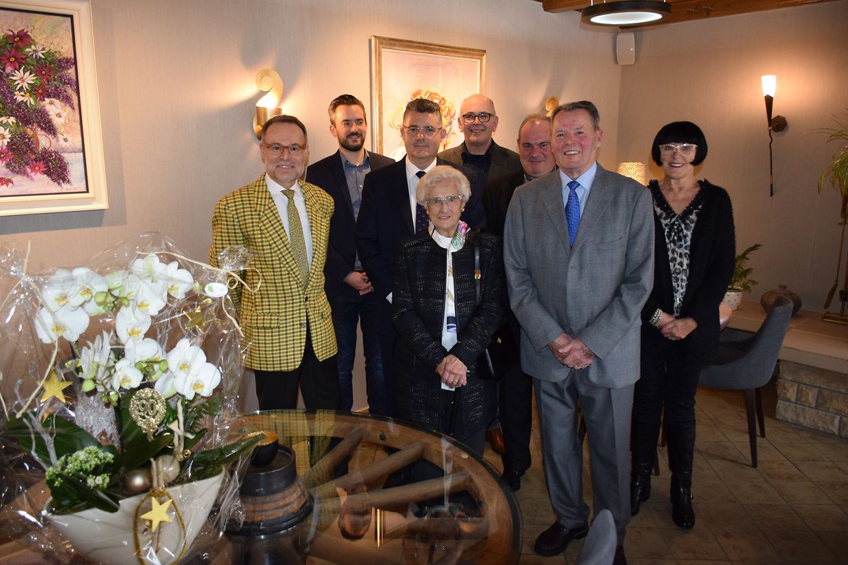 De leschten 22. Dezember huet d’Conrad-Mangen Victorine genannt Vicky vu der Bollendreffer-Bréck am Krees vu senger Famill säin 90. Gebuertsdag gefeiert. Gebuer 1928 Préizerdaul als eent vun 11 Kanner huet et d’Vicky op d’Bollendreffer-Bréck verschloen, wou hat am Dezember 1956 mam Conrad Léon, deemolege Schäffen an der Bäertrëffer Gemeng, bestuet ginn ass. Hei wunnen si zënterhier zesummen an hirem Haus an der Grusswiss. Trotz hirem Alter a munch gesondheetleche Réckschléi bewältegen si hiren Alldag nach selbstänneg a mat vill Courage an der Ënnerstëtzung vun hiren dräi Bouwen, dräi Enkelinnen an neierdéngs enger klenger Urenkelin. De Schäfferot huet et sech net huele gelooss dem Vicky fir seng 90 Joer déi beschte Gléckwënsch vun der Gemeng ze iwwerbréngen.