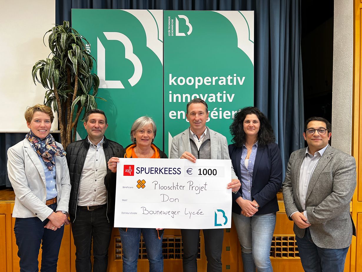 Op de Portes ouvertes vum Bouneweger Lycée gouf eng flott Tombola fir de gudden Zwéck organiséiert, souwéi verschidde Verkafsstänn, déi eis hausmaacher Produiten verkfa hunn. Dobäi koum eng Somme vun 2700€ eran, déi intern awer och extern opgedeelt ginn ass.