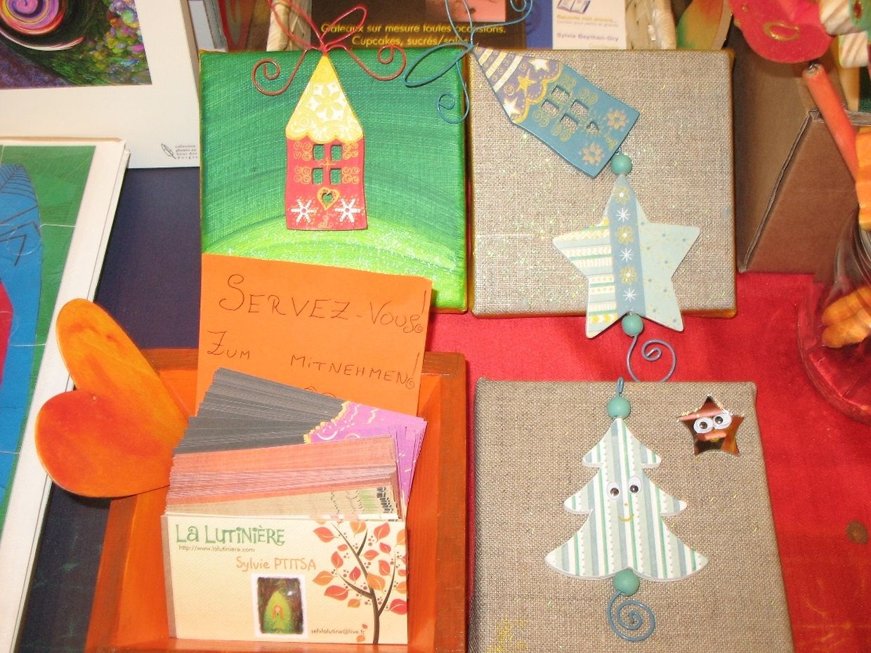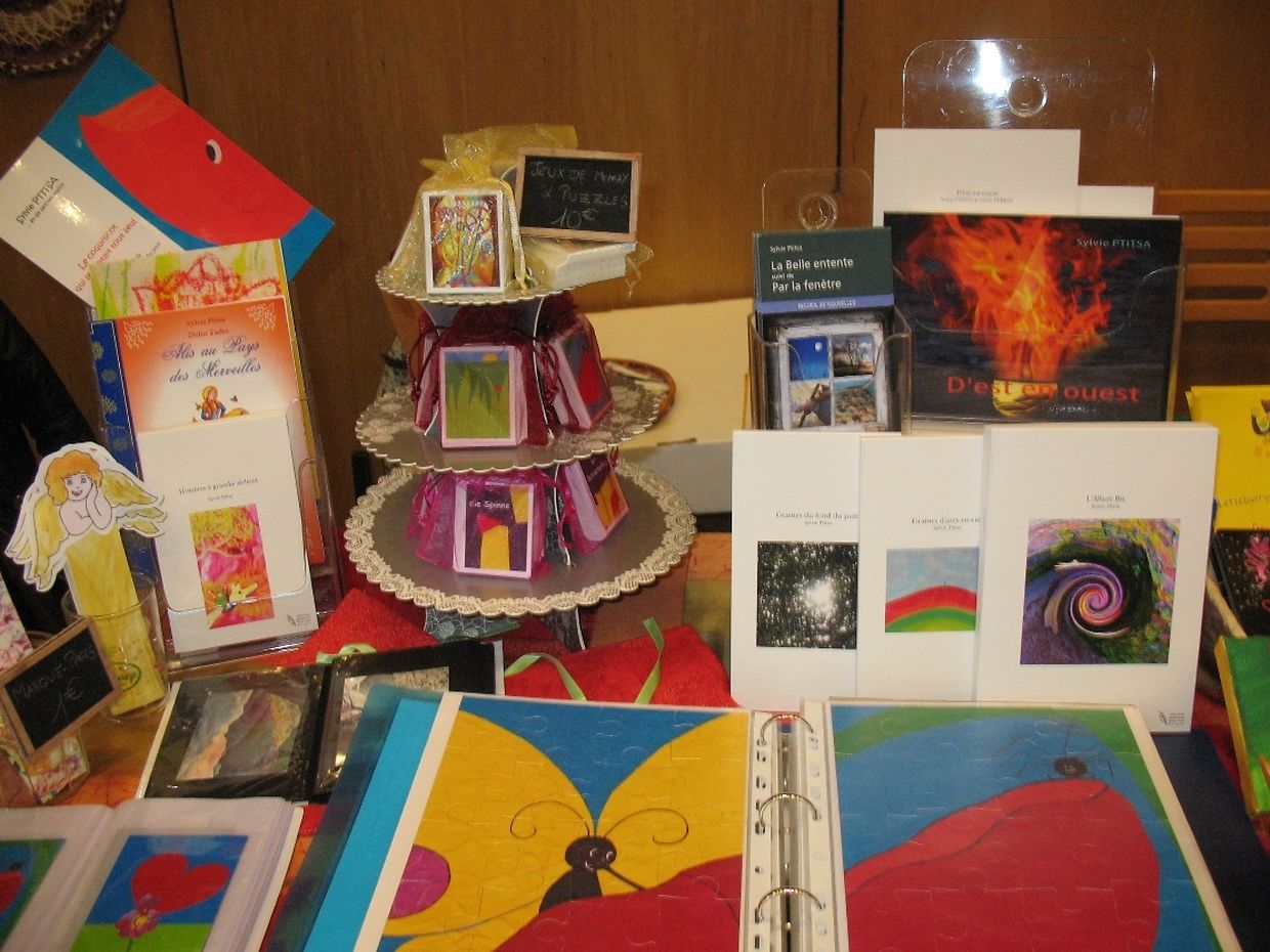 Ma créativité ne suit pas une seule direction, mais rayonne plutôt en étoile à travers plusieurs branches. Mon moyen d’expression premier et préféré est l’écriture. J’ai commencé à inventer des histoires avant même d’apprendre à écrire : je les racontais dans ma tête… Plus tard, j’ai découvert la musique, puis la peinture, la photo et le collage qui m’ont offert la possibilité de m’exprimer plus spontanément. Ma vie d’artiste est devenue un plein temps en 2007, lorsque j’ai quitté l’Education Nationale française, où je travaillais auprès d’enfants « en difficulté », pour élever mon fils. Depuis, je partage mon temps entre la création de mes œuvres, des animations auprès des structures (scolaires ou culturelles) qui me sollicitent (en France, Belgique, Allemagne et au Luxembourg ) et la réalisation de commandes personnalisées (tableaux, objets décoratifs ou utilitaires) pour des fêtes, des anniversaires, des cadeaux originaux…