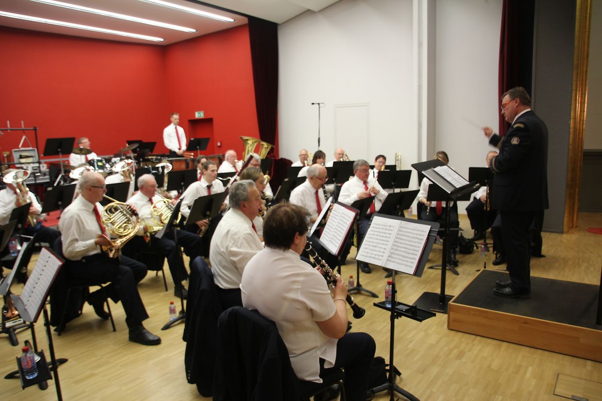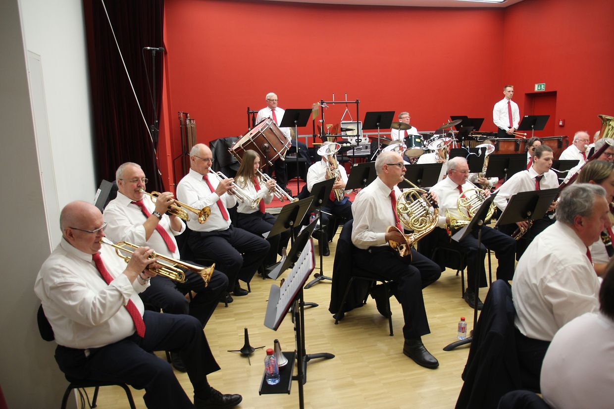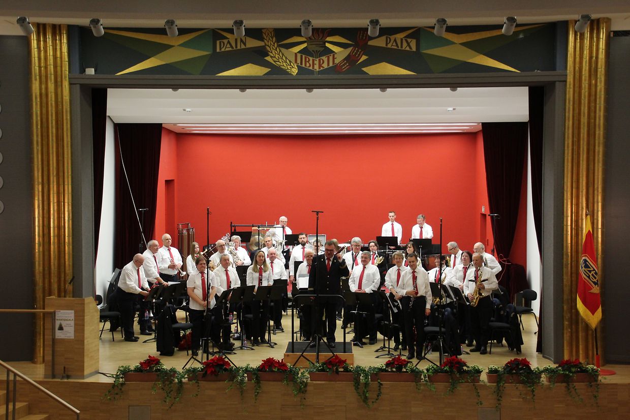 Trotz des schlechten Wetters hatten sich zahlreiche Zuhörer eingefunden und wurden nicht enttäuscht. Unter der Leitung ihres Musikdirektors Ralph Massard boten die Musikanten der Harmonie ein abwechslungsreiches Programm durch das Edmée Pauly-Klein führte.