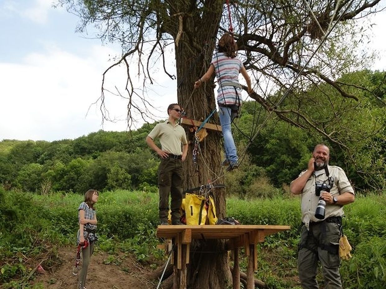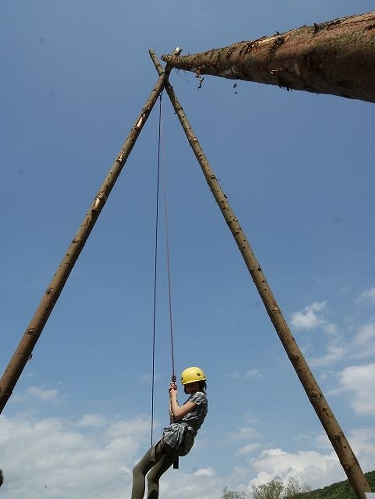 iwert d’Sauer fier zréck an dem « Késchtenstappeln » (Héicht + 8m) ugeholl,