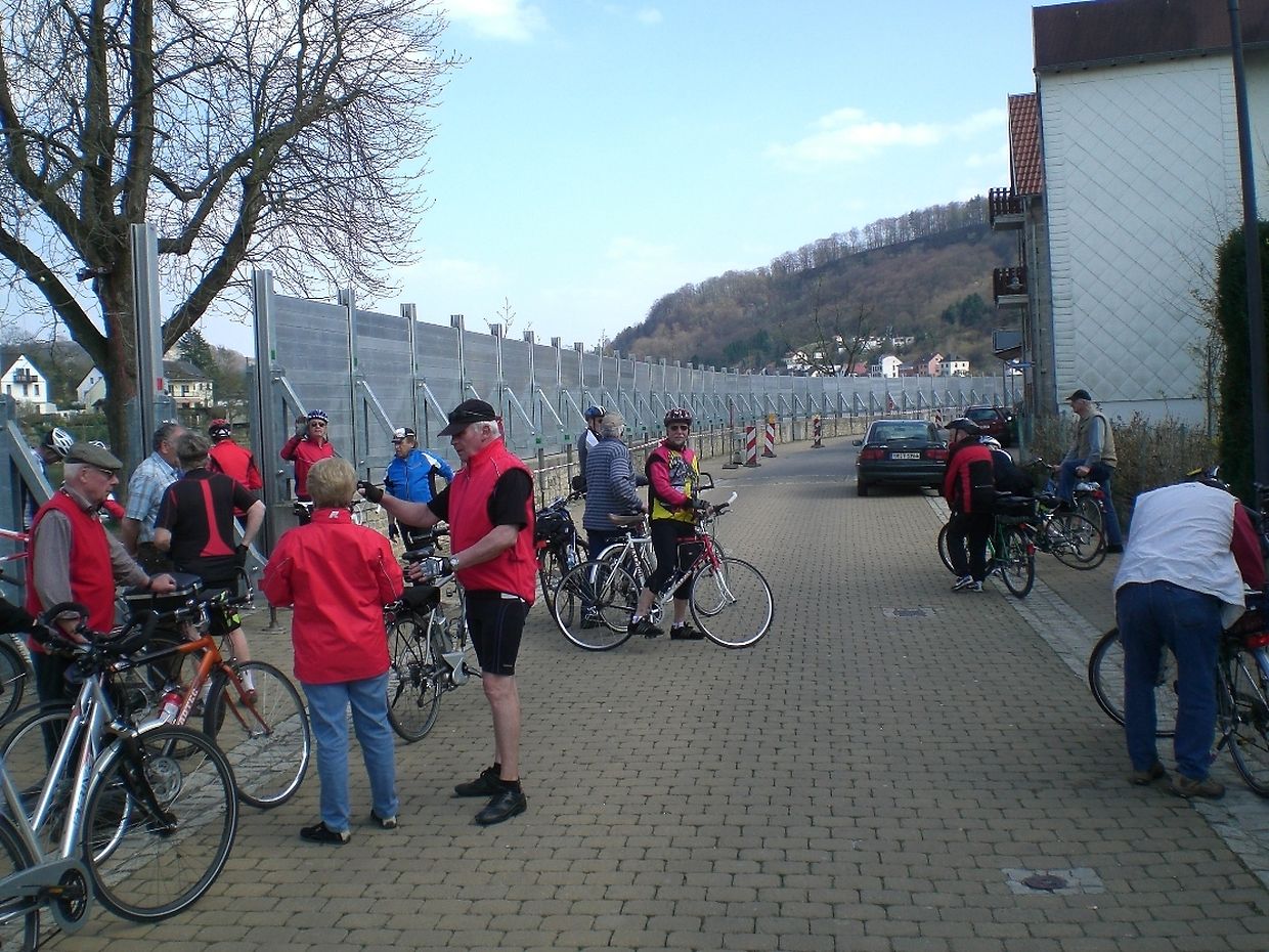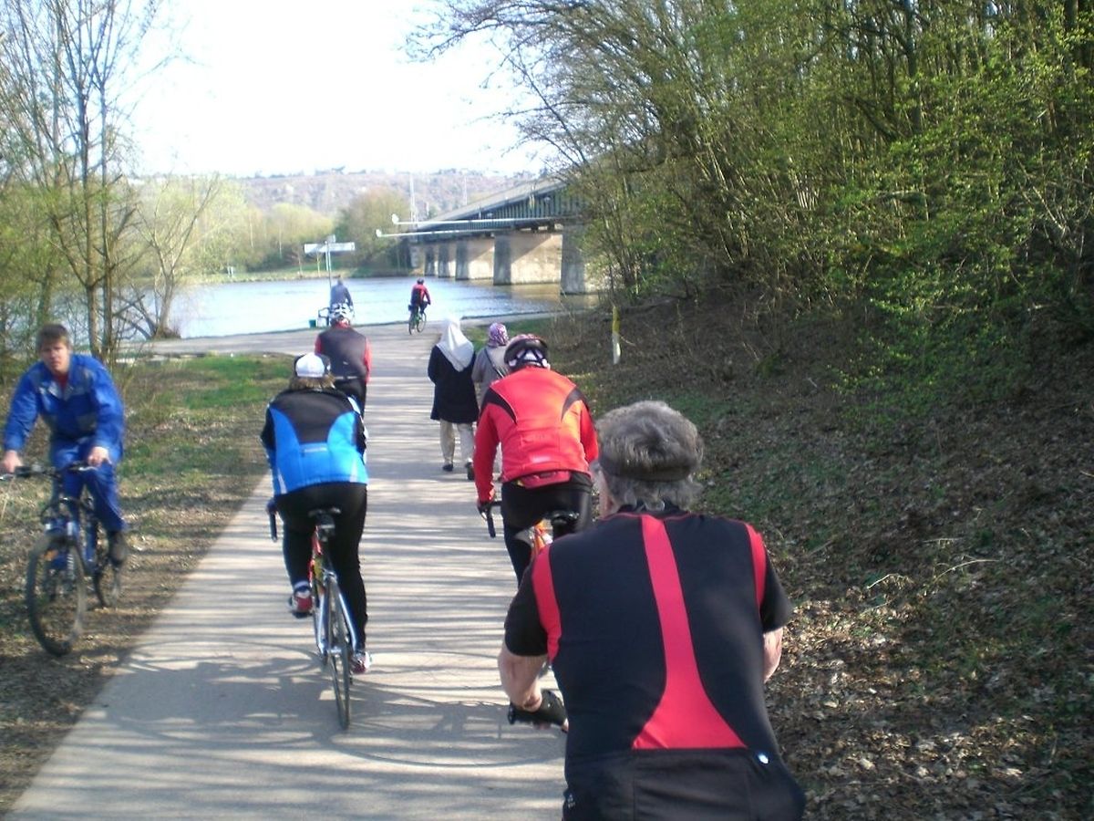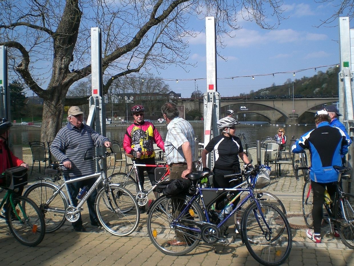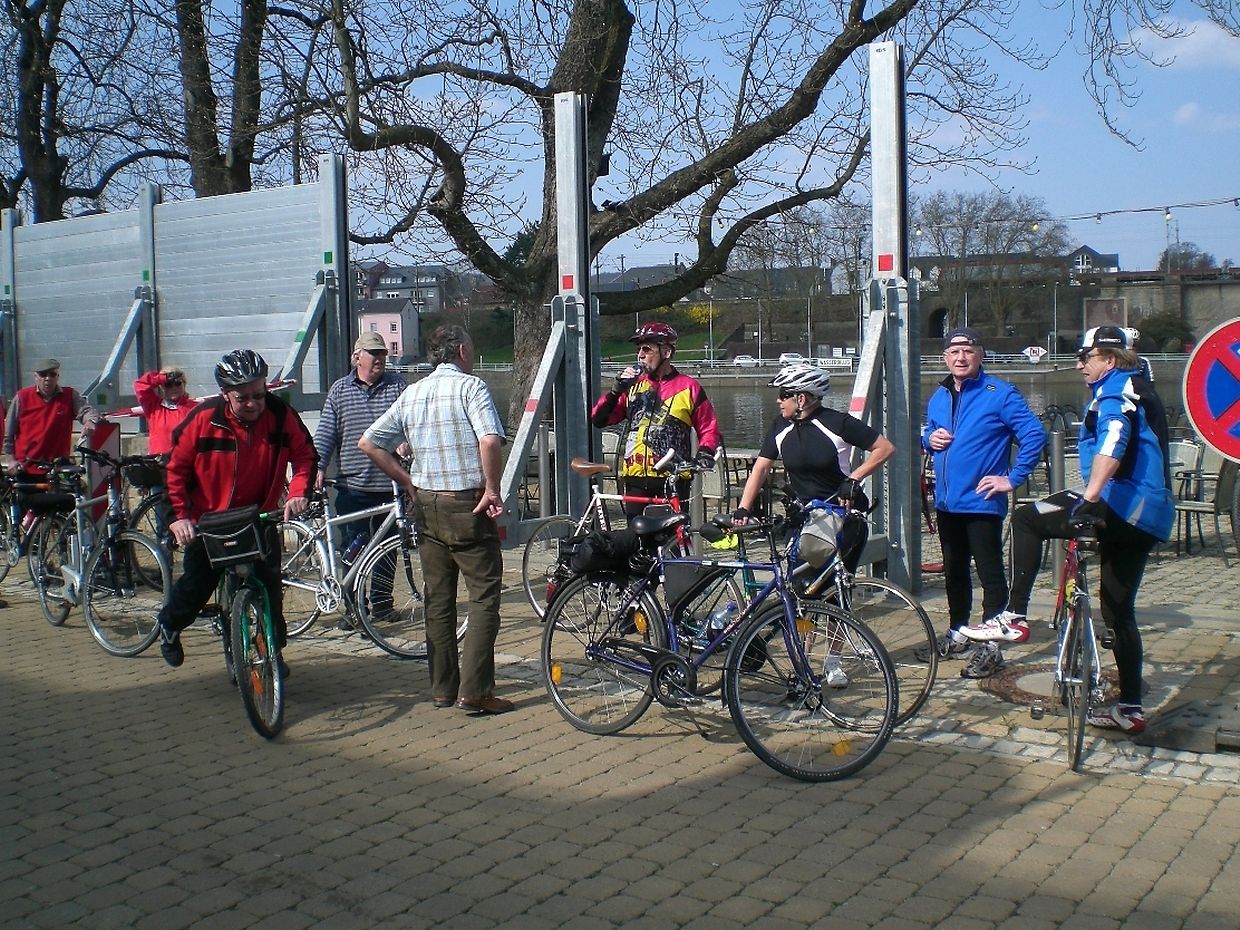 21 gutgelaunte Radfahrer fanden sich ein zur 2. Ausfahrt des Jahres. Start war um 14.00 Uhr in Wasserbillig „op der Spatz“, dem tiefsten Punkt unseres Landes. Vorgesehen war eine Strecke von knapp 30 km. Nach Wasserbillig und Mertert überquerten wir in Grevenmacher die vielbefahrene Grenzbrücke und erreichten Temmels auf der deutschen Seite. Vor dem Haus der Fischerei wurde die erste kurze Pause eingelegt. Dort konnte man auch den neuen Hochwasserschutz bestaunen, der sich bereits in diesem Winter bewährt hat. Weiter ging es über Wasserliesch über die Bahnbrücke Richtung Konz. Auf der Terrasse des Gasthauses „an der Saarmündung“ war die erste Hälfte der Tour geschafft. Bei freundlicher Bedienung und herrlichem Wetter konnten sich die Teilnehmer erholen. Nach der wohlverdienten Pause ging es moselaufwärts weiter bis Igel, passierten Wasserbilligerbrück und erreichten unser Ziel, die Moselpromenade in Wasserbillig. Nach der Fahrradtour, gemütlicher (längerer??) Ausklang in der Brasserie Restaurant „Réimerbreck“ in Wasserbillig. Alle Teilnehmer waren sehr zufrieden über den gelungenen Auftakt und freuten sich bereits auf die nächste Ausfahrt: http://www.eurinfo.net/events/show?id=1224