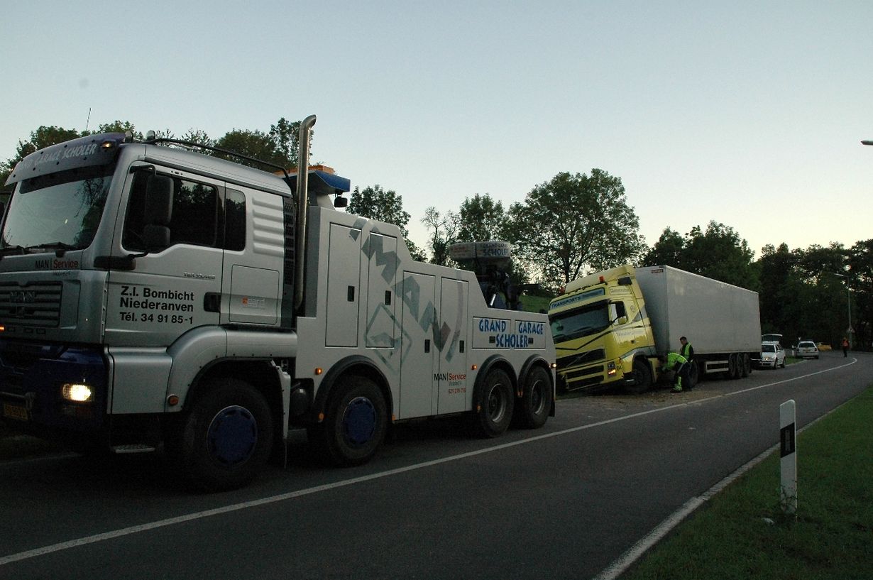 Am 14. September geriet gegen 6 Uhr ein LKW in einer Kurve in den Sommerweg. Dabei prallte er mit dem Führerhaus gegen eine Mauer.