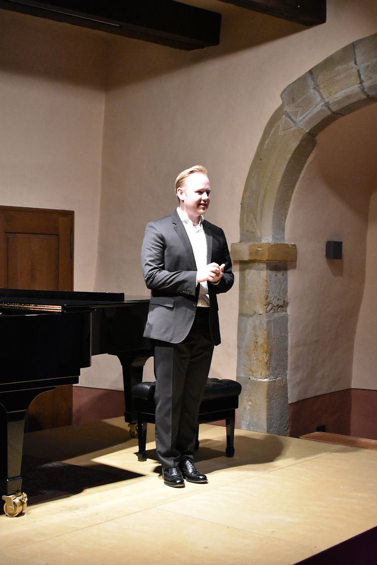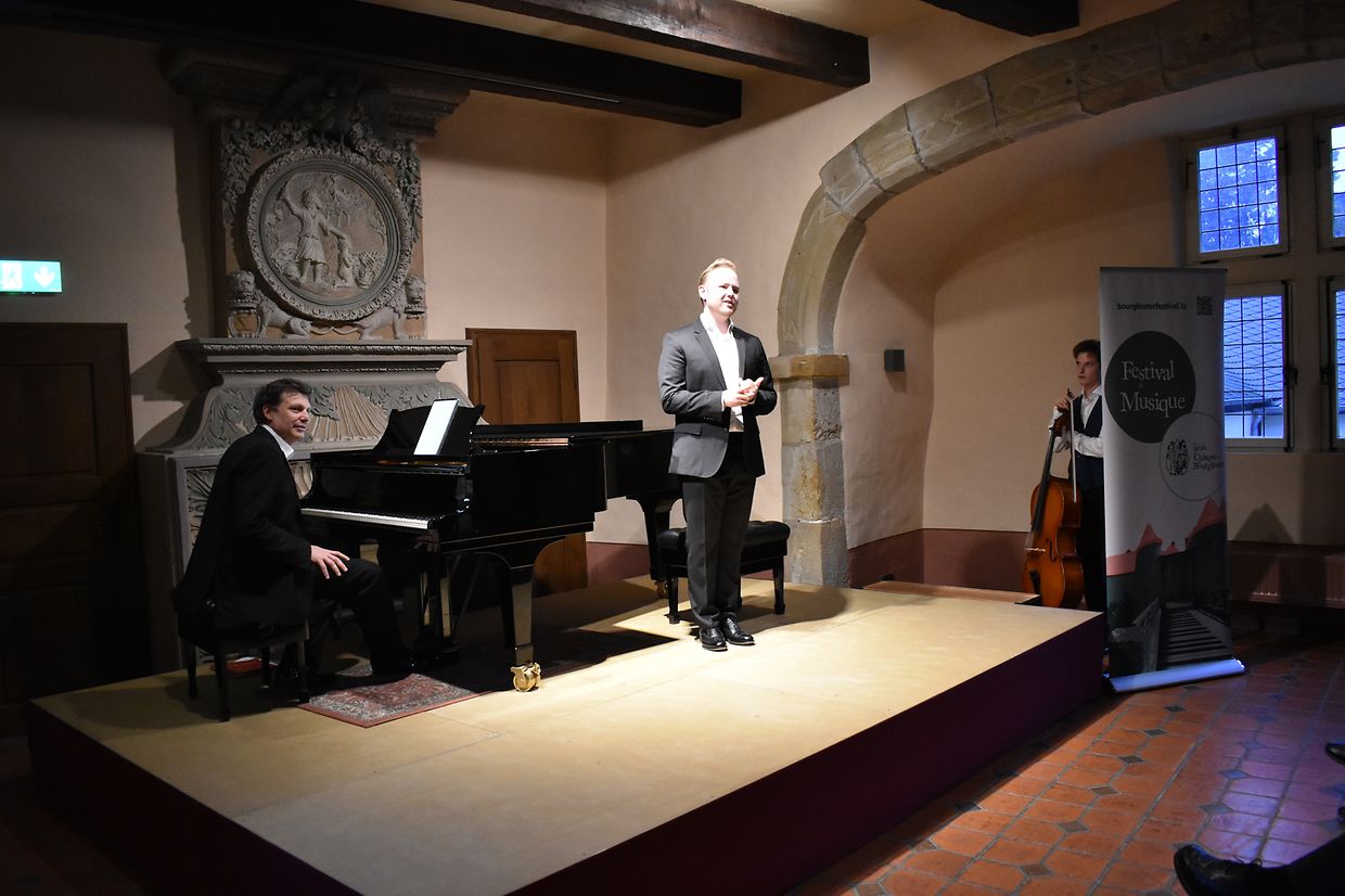 Dass man mit einem vielversprechenden als „Liebesgeflüster“ betitelten Programmabend das Innerste des Publikums aufs angenehmste berühren und es gleichzeitig mitreißen kann, bewiesen der junge luxemburgische Sänger Olivier Nilles mit seiner facettenreichen, ansprechenden und herrlich auftragenden, Baritonstimme sowie seinen eindrucksvoll musizierenden Instrumentalpartner Lukas Plag am Cello und Robert Baerwald am Klavier, während des kürzlich dargebotenen Kammermusikabends auf Schloss Burglinster, im Rahmen des alljährlich dort stattfindenden Musikfestivals.