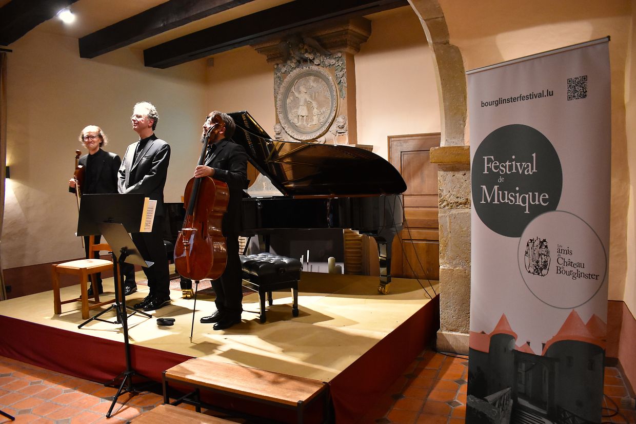 In imposanter instrumentaler Gleichwertigkeit sowie meisterhafter Entschlossenheit beim spielerischen Einsatz warteten kürzlich, im Rahmen der Schlosskonzerte von Burglinster, drei hervorragende Musiker in Klavier-Trio Besetzung auf.
