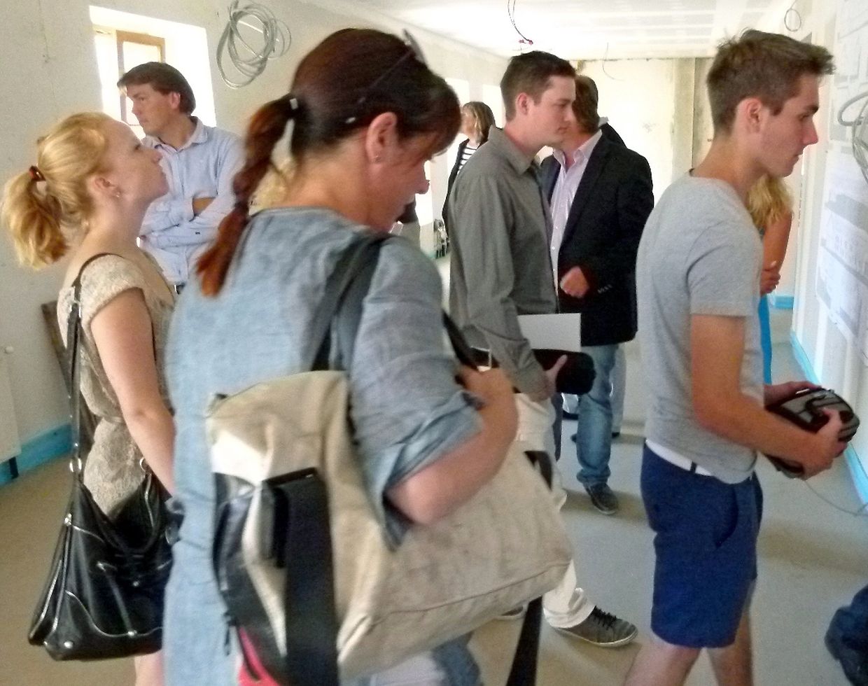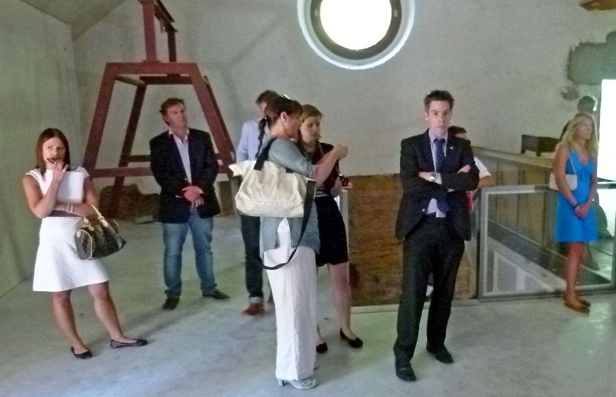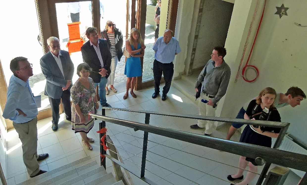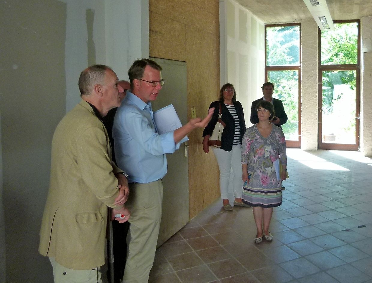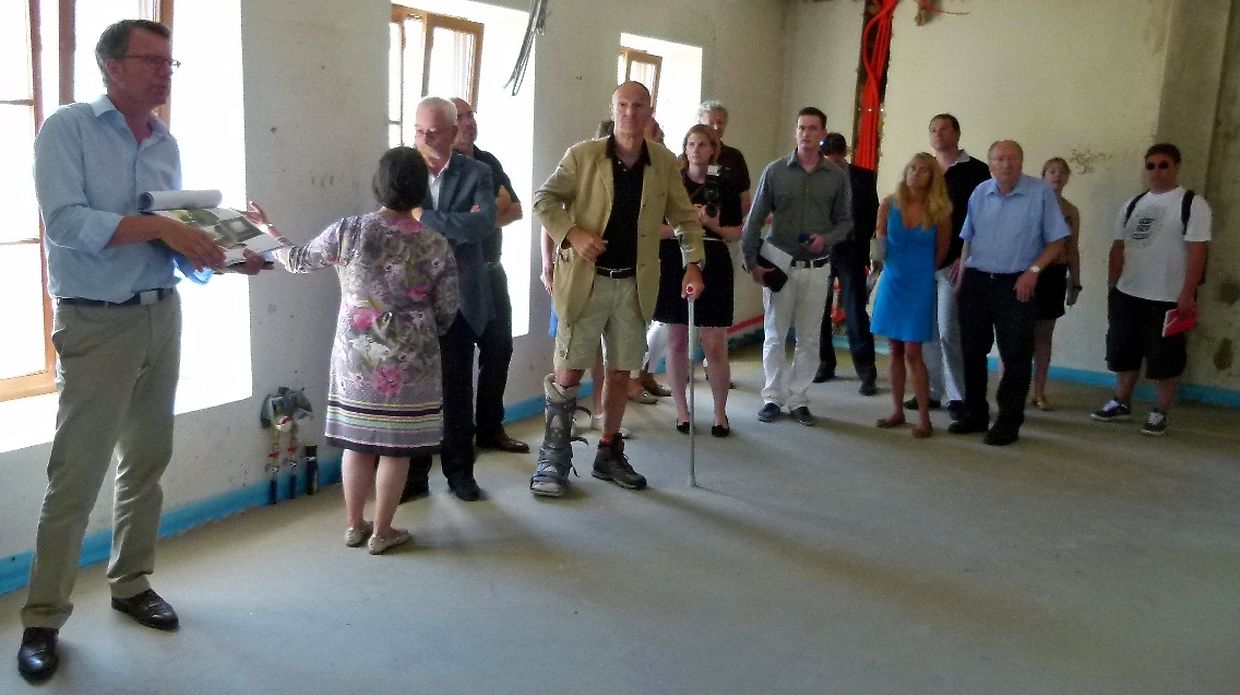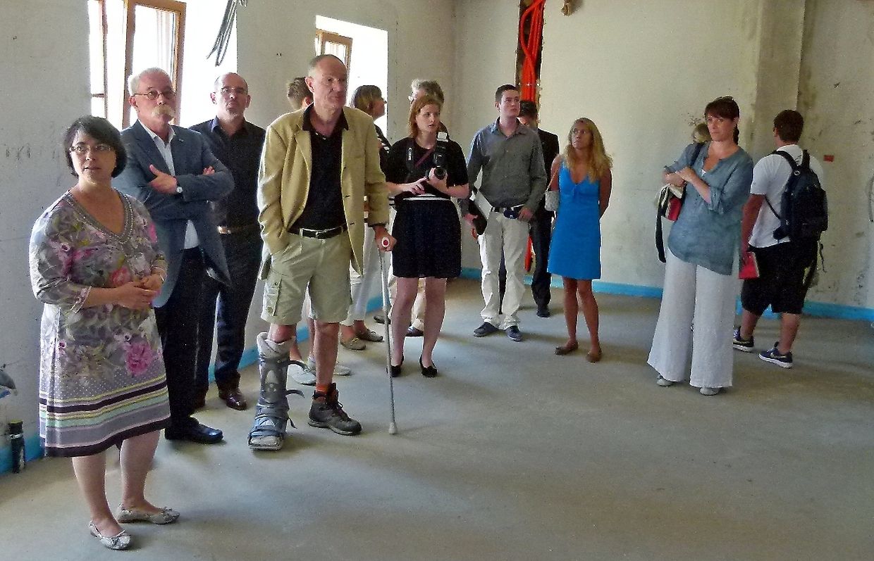 John Voncken, Architekt beim « Service des Sites et Monuments Nationaux », führte die Teilnehmer an der Besichtigung durch die verschiedenen Räumlichkeiten, wo ab Mitte November die ersten Künstler ihr Kunsthandwerk ausüben können. John Voncken hob hervor, dass an der Außenfassade zum Hof hin – außer zwei neuen Fensterdurchbrüchen – nichts verändert wurde, so dass von außen die Besucher des Schlosses und der Werkstätten nichts von den Umbauarbeiten wahrnehmen werden.