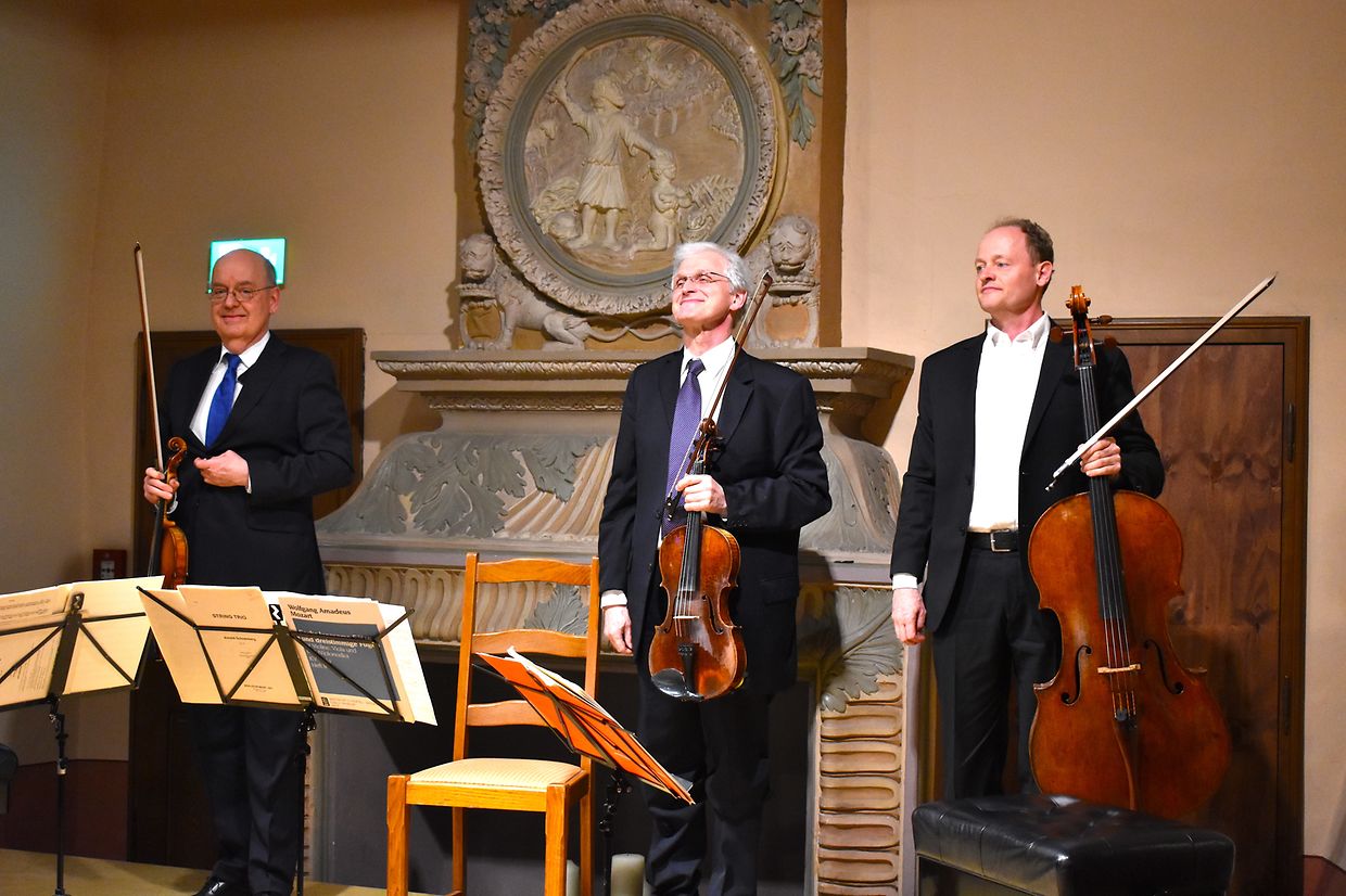 Eingangs spielte das Trio das an J.-S. Bachs Orgel-Triosonate BWV 527 anlehnende Largo und Allegro KV 404a von W.-A. Mozart in seiner treffenden barocken, behäbig auslandenden Klangfülle.