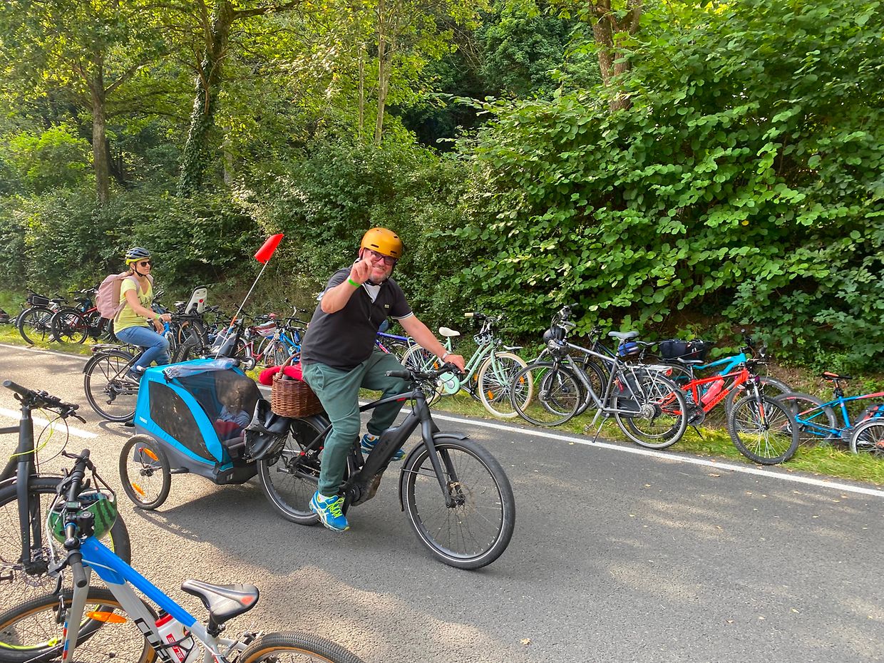 Fir 11ten Keier bei herrlichem Wierder woer den Autofräie Sauerdall rem en Erfolleg . Iwer 1000 Leit op mam Velo oder zu Fouss woeren an dem scheinen Sauerdall zweschen der Burschtermillen. an Ierpeldeng enerwee