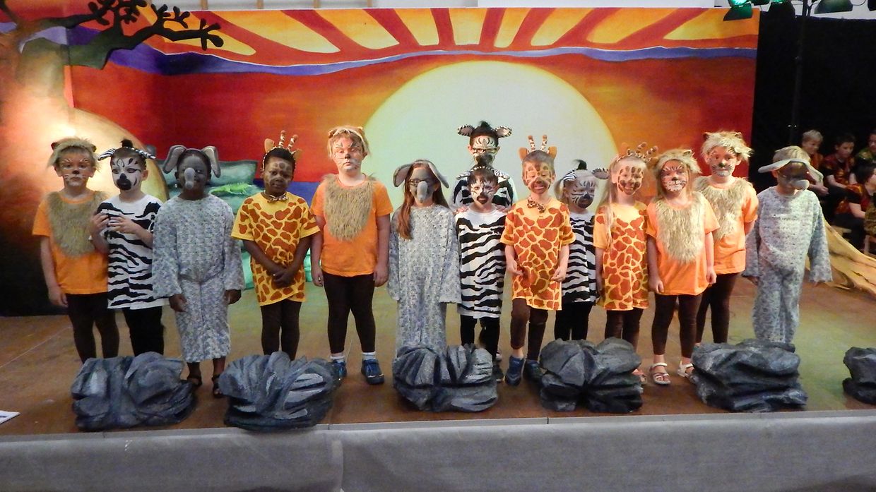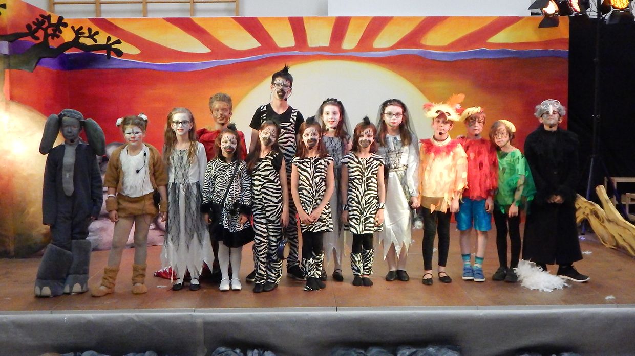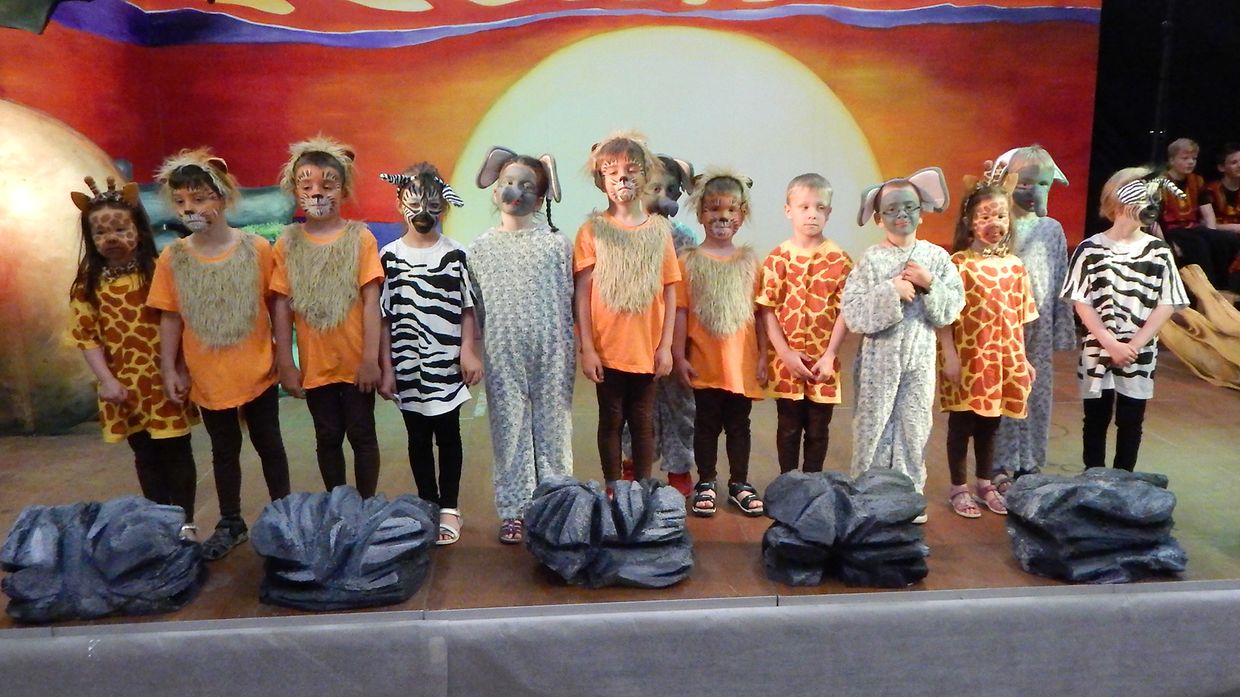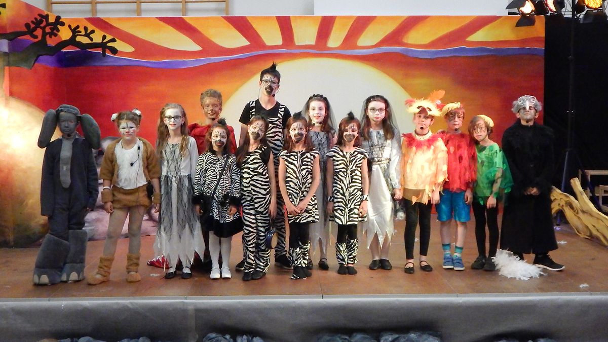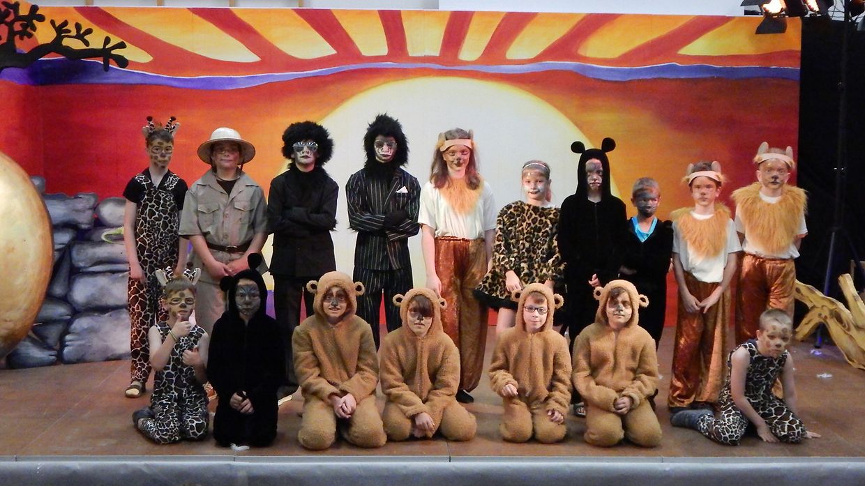 Ob und wie es den Tieren Afrikas gelang, der Gefahr des Verdurstens zu entgehen, stellten die Bourscheider Schulkinder vor kurzem in ihrem eindrucksvollen Musical „Kwela Kwela“ durch Tanz, Gesang, Rhythmusbegleitung und Schauspielkunst vor ihrem begeisterten Publikum dar. Sämtliche 160 Schüler der Zyklen 1 bis 4 waren beteiligt und übten sich somit in dem für die Bourscheider Schule wichtigen Unterrichtsprinzip der Gemeinsamkeit und gegenseitigen Rücksicht über den Rahmen des eigenen Klassenzimmers hinaus. Dass ein Projekt dieser Größenordnung ohne tatkräftige Unterstützung Außenstehender nicht möglich wäre, versteht sich von selbst und so richtete sich der Dank der Präsidentin des Schulkomitees, Françoise Dondlinger, an all diejenigen Eltern und freiwilligen Helfer, die in stundenlangen Vorbereitungsarbeiten ihre Talente einbrachten, sei es beim Bühnenbau, dem Anfertigen der Kostüme, dem Schminken, dem Catering. Ein besonderer Dank galt auch dem Einsatz Amadou Baldés, der sein Können während der Übungseinheiten und auch bei den Aufführungen der Rhythmusgruppe eindrucksvoll einbrachte.