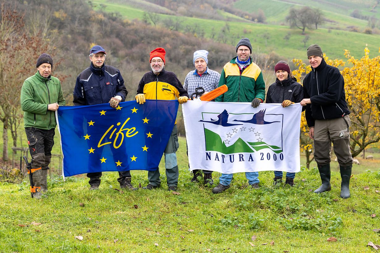 Bous. Unter dem Motto «Fit by Nature» lud die Lokalssektion von natur&ëmwelt dieses Jahr dazu ein, durch praktische Arbeiten einen Beitrag zum Erhalt der Biodiversität zu leisten. Die Aktivität fand am 3. Dezember nahe dem «Hiewelbierg» bei Bous statt. Auf der Fläche der Fondation Hëllef fir Natur im «Fuusselach» , welches Teil des Natura 2000 Gebietes «Moselle supérieure» ist , wurden Massnahmen des LIFE Orchis Projektes umgesetzt um die Entwicklung artenreichen Grünlandes zu fördern und somit Lebensräume für gefährdete Pflanzen- und Tierarten zu schaffen.