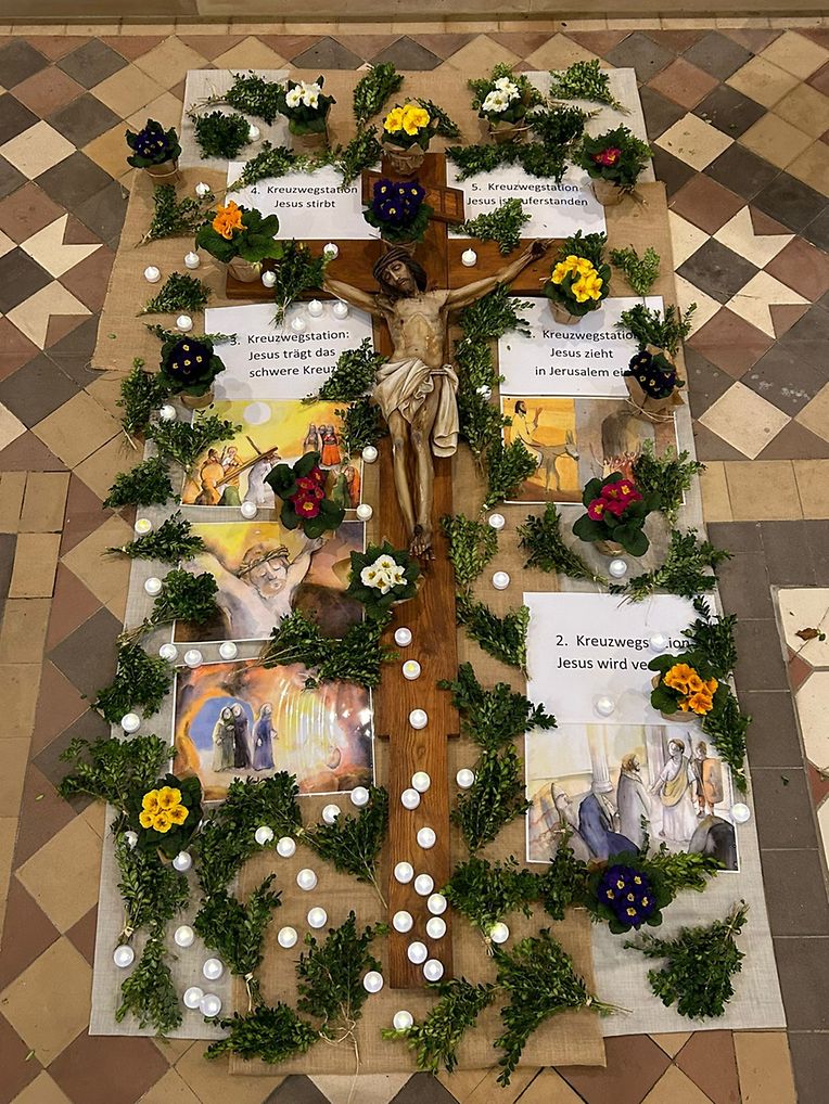 Familien mit ihren Kindern haben sich an einem Freitag gegen 17.30 Uhr in der Kirche von Boxhorn versammelt zum Kinderkreuzweg. Dabei wurden die verschiedenen Stationen des Kreuzweges von den Kindern selbst dargestellt. Die Kinder durften das Kreuz mit Lichtern und Blumen schmücken. Diese Zeichen der Auferstehung lassen uns hoffen auf das neue Leben, das Gott uns allen schenken möchte.