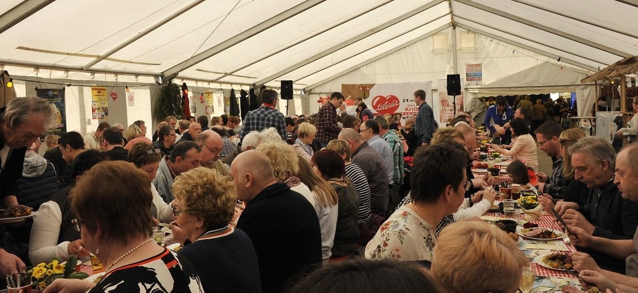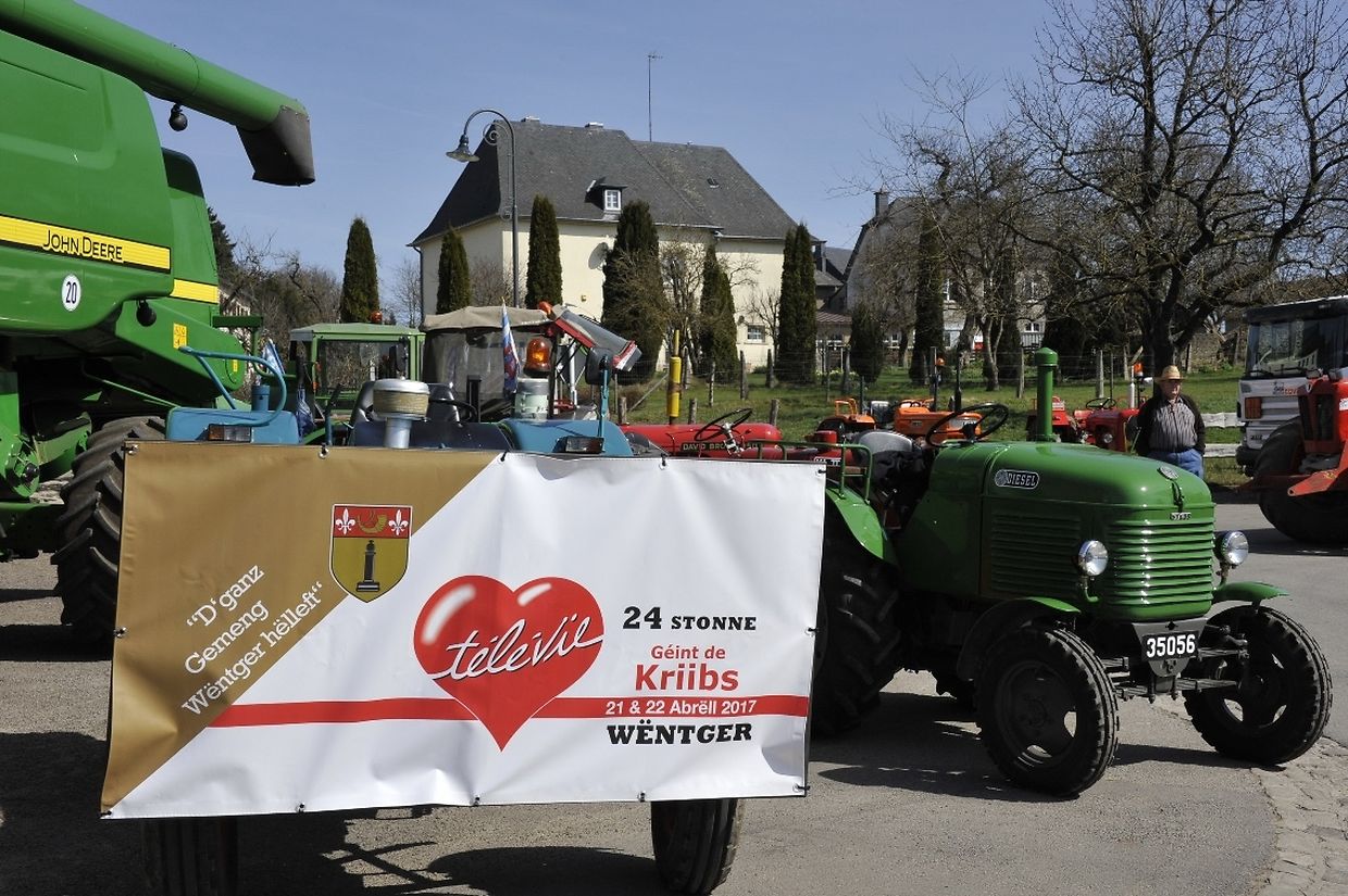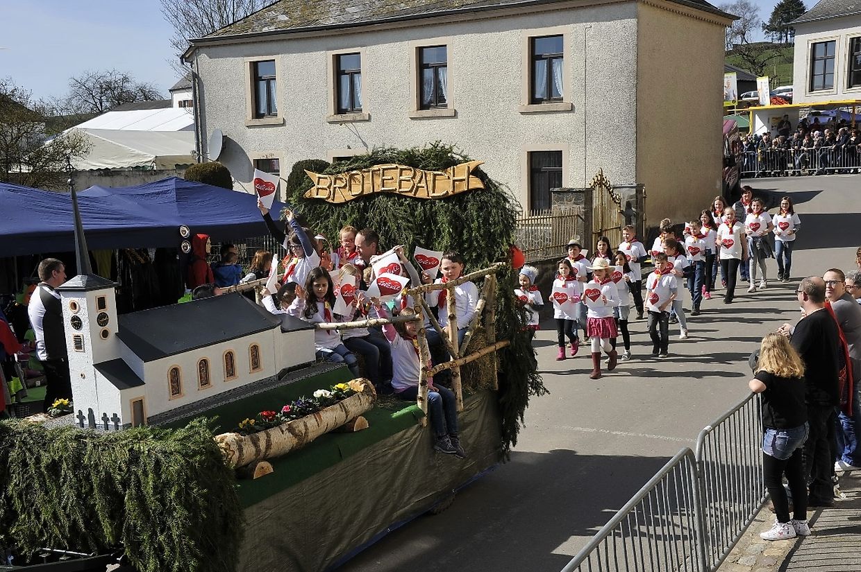 Einladend führte der Weg nach Brachtenbach, der Gemeinde Wintger, das unter dem Motto "Baurefest, séier raus aus dem Stall", mit der lokalen Dorfjugend, dem Gesang- sowie dem Sparverein, in weiterer Zusammenarbeit der Jugendvereinen aus Niederwampach, Oberwampach und Trotten veranstaltet wurde. Bei herrlichen Frühlingstemperaturen präsentierten regionale Hersteller passend des Bauernmarktes ihre Produkte zur Schau, als auch zum Verkauf bereit. Ein musikalisches Vormittagsständchen gaben die "Äischdall Alphornbläser" zum Besten, während im Zelt ein deftiges Mittagsmenü serviert wurde. Der Dorfumzug durch Brachtenbach wurde musikalisch gestartet vom Musikverein aus Wintger, begleitet von den Kindern aus Brachtenbach, sowie der weiteren musikalischen Umrahmung der Harmonie aus Ulflingen und der "Gënzekinigin aus Wiltz. Weiter schlossen sich die Oldtimertraktoren, die "Huldanger Holzhacker" an. Hinterher fuhren große landwirtschaftliche Traktoren, mit den Besitzern ihrer folgsamen Tieren, von Ponyen, einer Schafherde, Ziegen, Eseln, Pferde und Kühe. Auf besondere Einladung als Stargast trat der besser bekannte "Schäfer Heinrich" aus der Fernsehsendung, Bauer sucht Frau, in Brachtenbach auf, und fuhr mit einer Ehrenrunde auf dem Faschingswagen durchs Dorf. Anschließend begeisterte Schäfer Heinrich das Publikum mit seinem musikalischem Programm. Diese gesellige Festveranstalltung diente zum guten Zweck von "Télévie", dem diesjährigem "Centre de promesses" in Wintger des 24-stündigen Télévietag am 21. und 22. April 2017