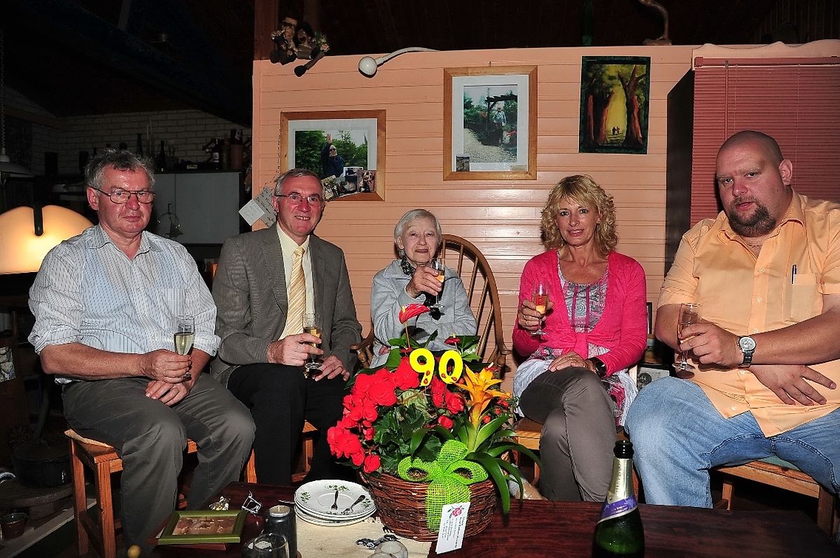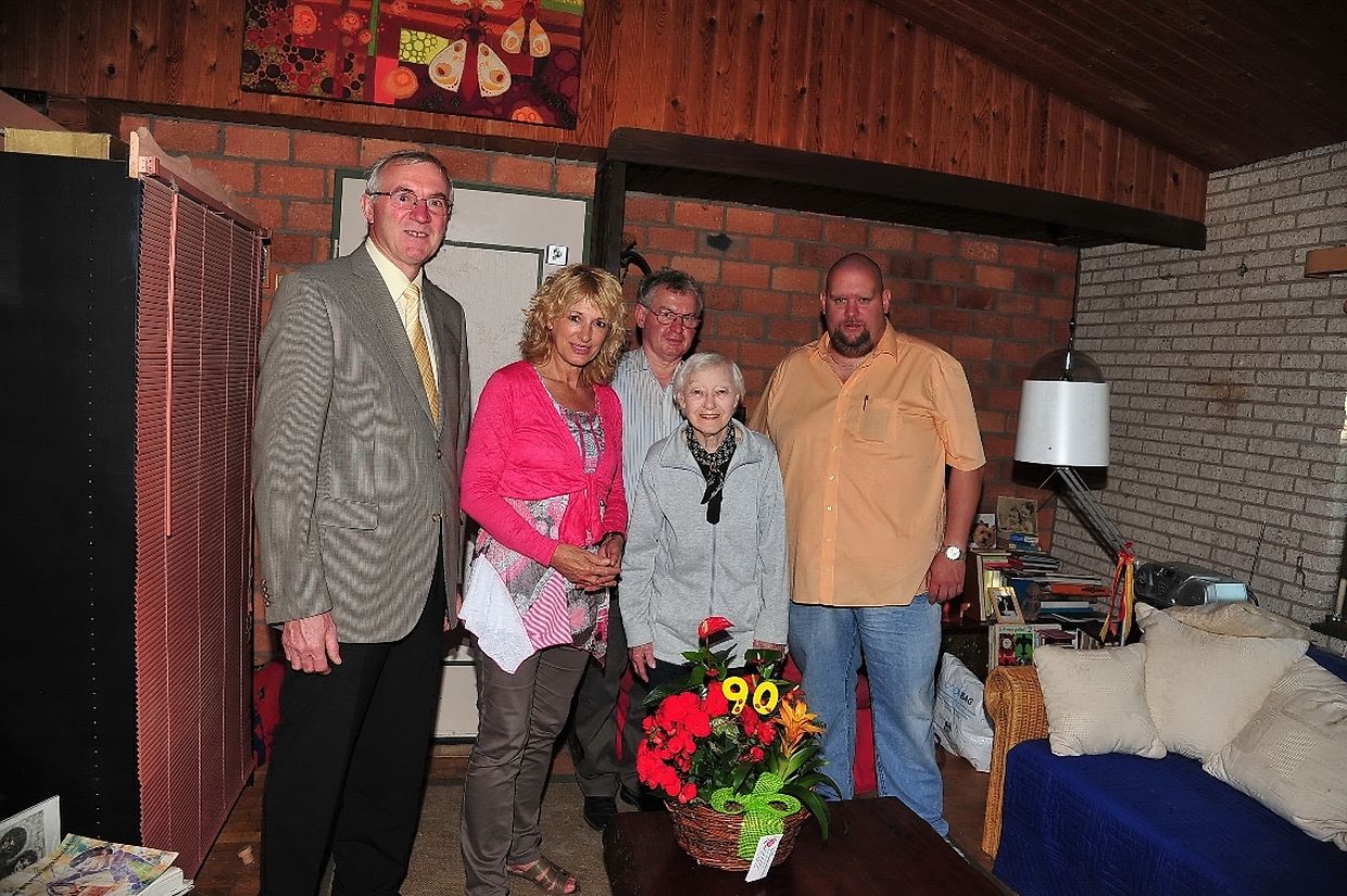 Noch sehr rüstig und zufrieden, konnte Joke Frank- Witberg aus Brattert vor kurzem ihren 90. Geburtstag feiern. Joke Witberg erblickte das Licht der Welt als jüngste Tochter von fünf Kindern am 25. August 1921 in Schiedam ( NL). Im April 1941 führte Aart Frank aus Lösser ( NL ) der als Architekt beschäftigt war, seine zukünftige Ehegattin zum Traualtar. Seit 1977 lebt das Paar in Brattert. Aus ihrer harmonischen Ehe entsprossen zwei Söhne, die die Familie Frank um ein Enkelkind erweiterten. Heute freut sich die seit Februar 1999 verwitwete Jubilarin aber ganz besonders um ihr Urenkelkind. Um diesen besonderen Geburtstag besonders hervorzuheben, stattete Bürgermeister Jean Ferber in Begleitung seiner beiden Schöffen Marco Assa und Jean Ney einen Besuch bei Joke Frank- Witberg in Brattert ein, um der Jubilarin seitens der Gemeindeverwaltung Wahl die allerbesten Glückwünsche zum 90. Wiegenfest zu überbringen. Über das schöne Blumenarrangement und den schmackhaften Geburtstagskuchen zum Ehrentag freute sich Joke Frank aber ganz besonders. ( FOTO: CHARLES REISER)