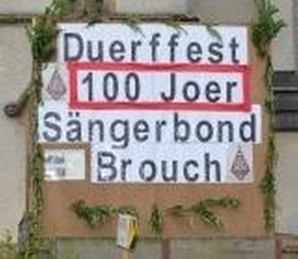 „100 Joer a 94 Deg no der Grëndung vum Sängerbond Bruch den 3. Abréil 1915 ass de Centenaire e Sonndeg, de 5. Juli 2015 zu Bruch mat ë bëssen Houfert op di laang Zäit, mat voller Fräd an an Éieren awer och mat Nostalgiegedanke gefeiert ginn.