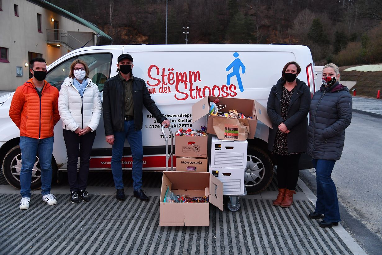 Héi zu Lëtzebuerg gëtt och vill Leit, deenen et net esou gutt geet, an déi sech iwer e puer Schneekegkeete freeë géifen, fir hinnen och eng Freed ze maachen. Esou stong et um Flyer, den d’Elterevereenegung aus der Gemeng Helperknapp dest Joer zur Spendenaktioun opgeruff hat, an och trotz Corona e vollen Erfolleg war. Den 11. an 12. März stungen an all Schoulgebäi vun der Gemeng Helperknapp eng grouss Këscht, wou d’Schoulkanner hir Séissegkeeten, déi si zevill haaten, konnten do dra leeën. Deser Deeg war et dann esou wäit, wou di gesammelt Saachen beim Festsall an der Koll zu Brouch vun der lokaler Elterevereenegung mat hirem President Luc Scholtes un den Här Marc Balthasar, Vertrieder vun der Vereenegung „Stëmm vun der Strooss“ konnten iwerreecht gin. Mat engem grousse Merci fir di konstruktiv Bereetschaft vun alle Kanner an Zesummenarbecht mat der Elterevereenegung, der Gemeng mam Schoulpersonal huet den Marc Balthasar dess bedeitend Spend a Form vu sechs gefëllte Këschten, Séissegkeeten entgéintgeholl an duerno d’Aktivitéiten vun der „ Stëmm vun der Strooss“ kurz virgestallt, déi sech haaptsächlich drëm bemeiht, dene Leit, denen et nit esou gutt geet, ze ënnerstëtzen an hinnen och eng kleng Freed ze maachen. www.stemm.lu (CR)(FOTO: CHAREL REISER)