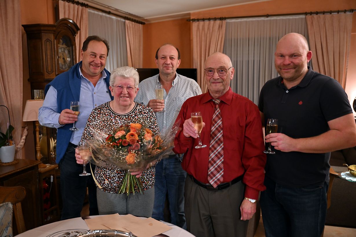 Brouch: Bei bëschter Gesondheet a mat berechtigtem Stolz konnt d‘Anita Hoffmann- Muller vu Brouch viru kuurzem hiren 85. Gebuertsdag feieren. D’Jubilarin huet den 6. November1939 als jëngst Duechter vun zwee Kanner d’Liicht vun der Welt erblëckt. Hir Elteren waren den Jean-Pierre Muller vu Sandweiler an d’Léonie Theisen vun der Horas (Préizerdaul). Den 12. Mee 1973 ass Hochzäit gefeiert gin mam Erny Hoffmann, den seng Jugendzäit bei sengen Elteren zu Rëmmercih (Préizerdaul) verbruecht huet. Aus hirem Bestiednis gongen zwéi Jongen ervier, déi d’Famill Hoffmann -Muller ëm zwéi Enkelkanner erweitert hun. Fir de Buergermeeschter Paul Mangen mat sengen zwéi Schëffen Ben Baus an Emile Splicks war et eng besonnësch Éier, fir dem Anita Hoffmann- Muller mat engem schéine Bouquet Blummen, am Numm vun der Gemeng Hëlperknapp di allerbëscht Gléckwënsch zum 85. Gebuertsdag ze iwerbrëngen mat der Hoffnung, das d’Jubilarin nach weider gesond an zefridden Joeren zesummen mat hirem Mann Erny an hirem Wunnhaus zu Brouch ka verbrëngen. Duerno ass d’Glas erhuewe gin, an op den 85. Gebuerstdag geprost gin. (CR) (Foto: Charles Reiser)