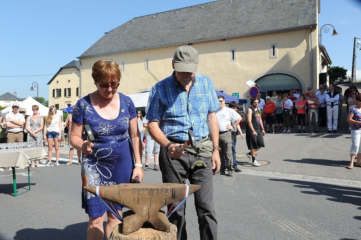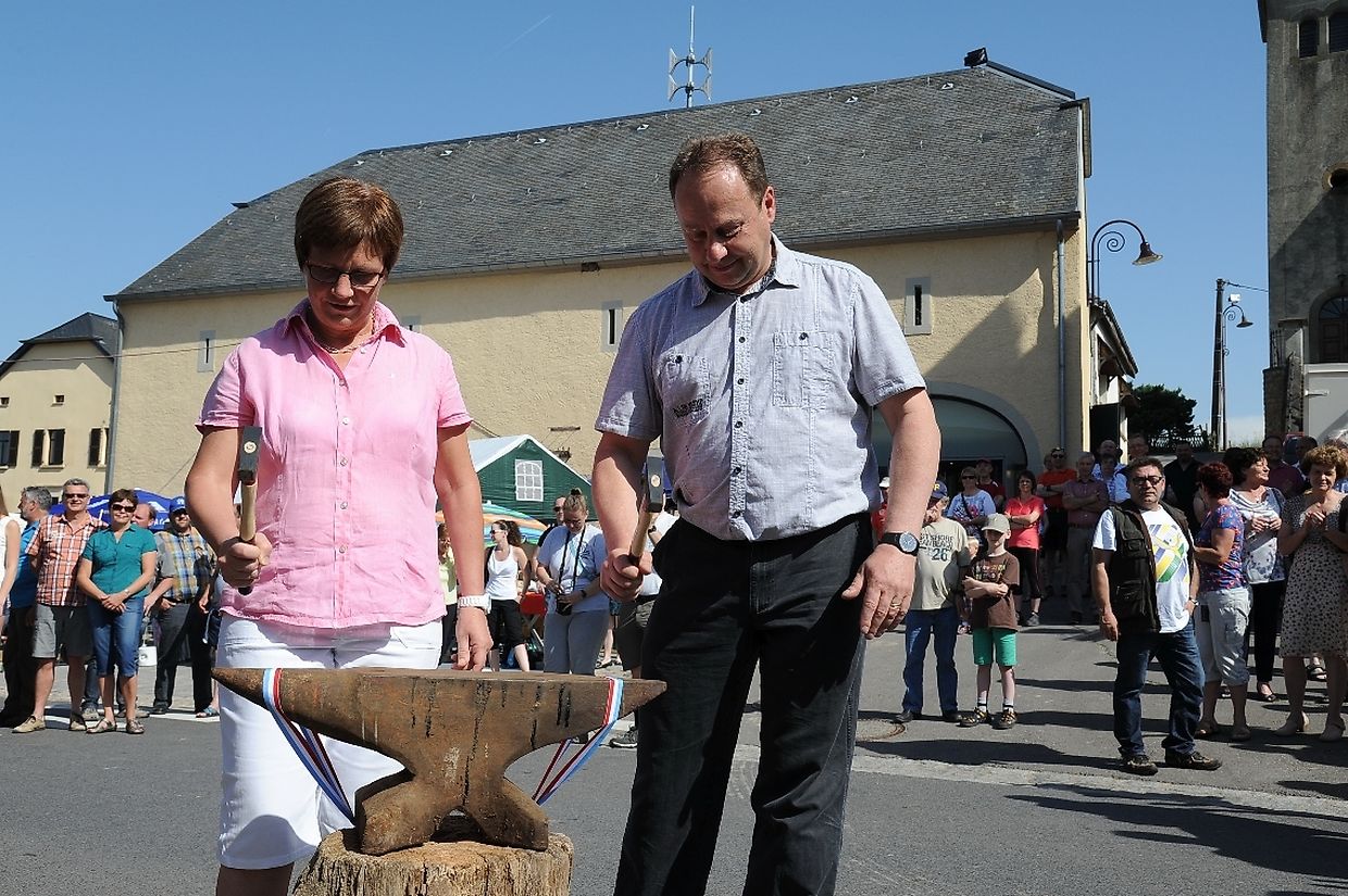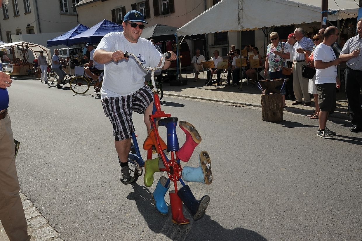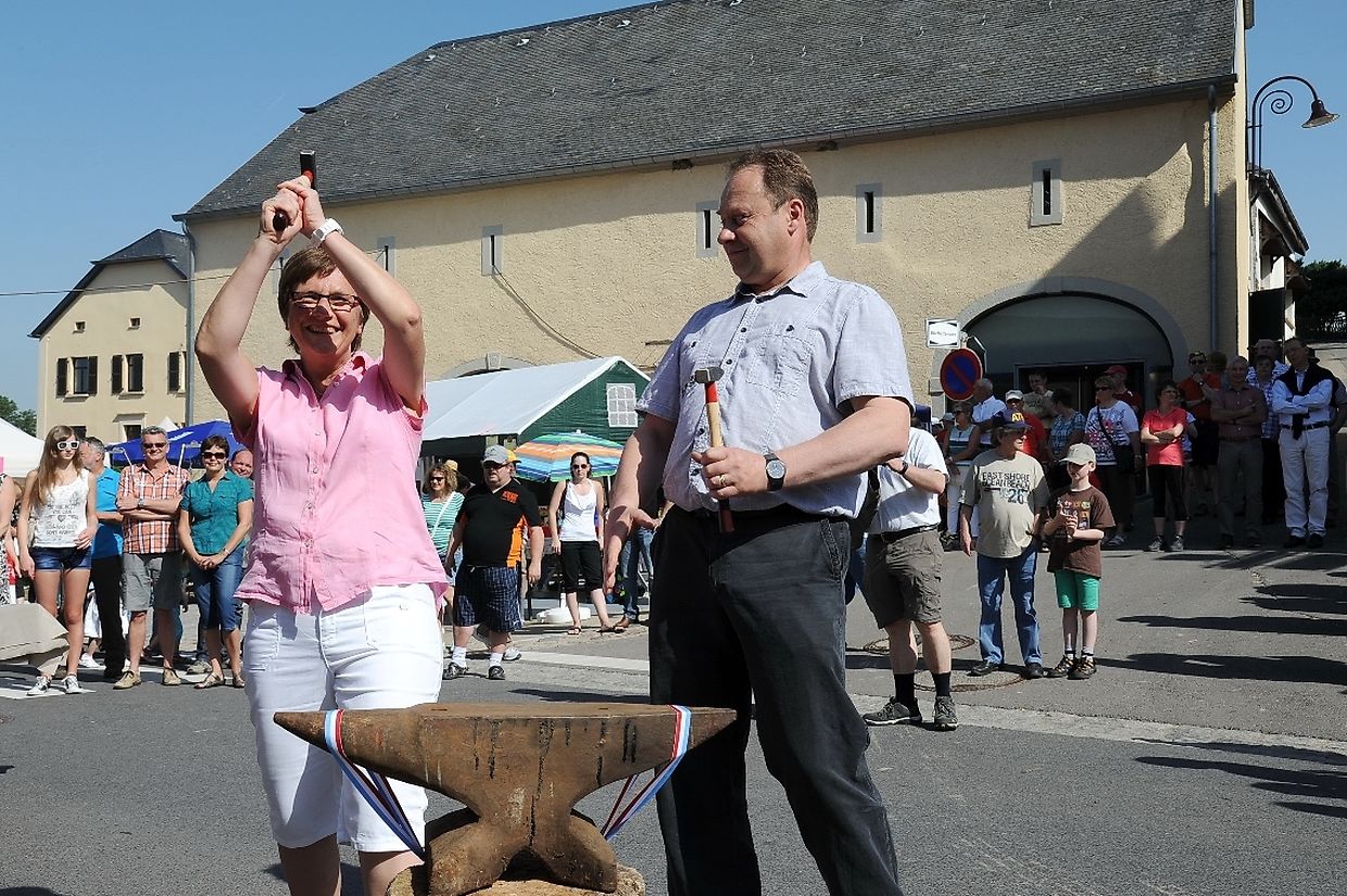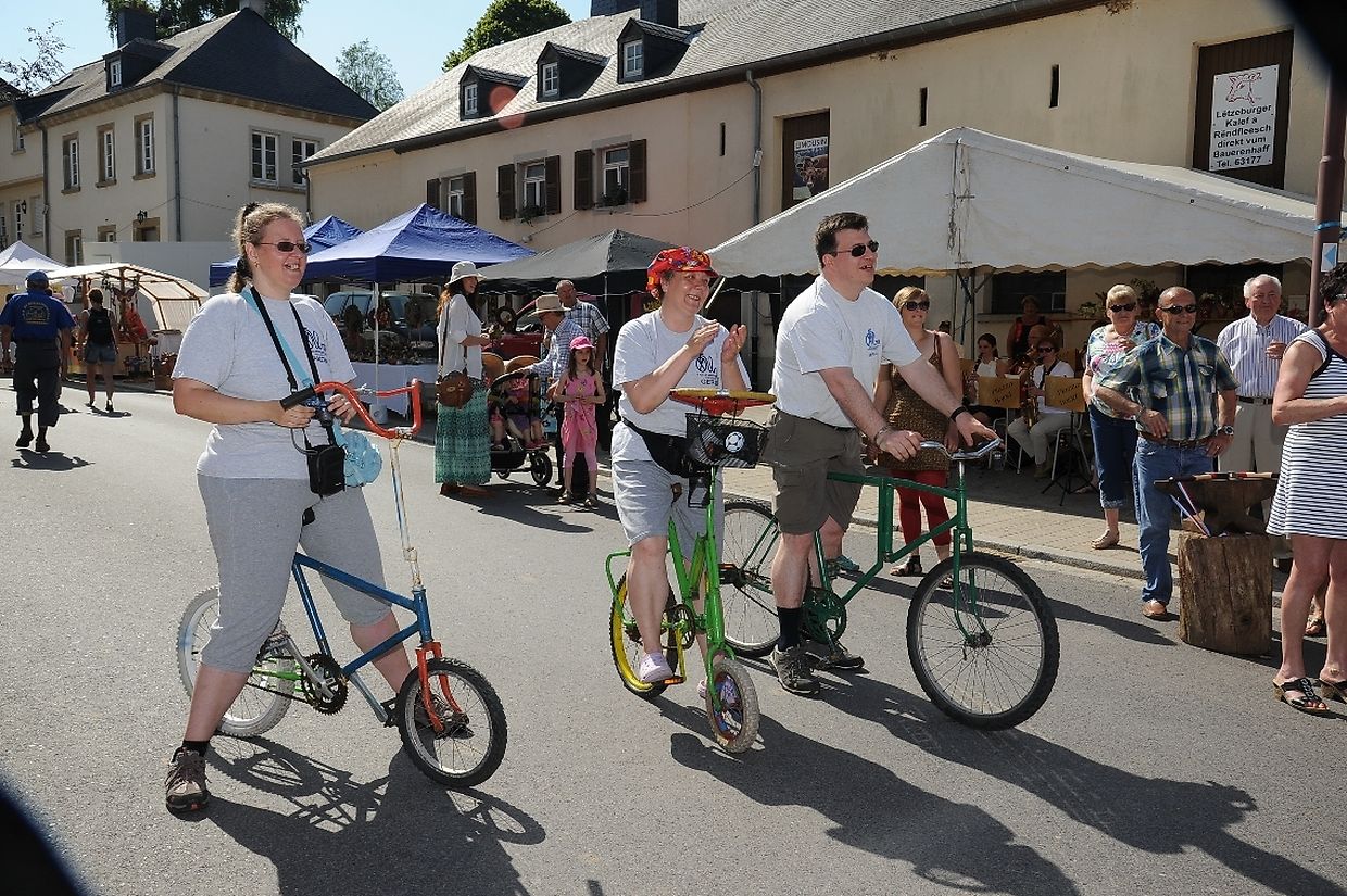 Nach der 56. FLMP/IVV Wanderung rundherum den „Hëlperknapp“, war es für Entente- Präsidentin Nicole Müller nach ihren Willkommensgrüßen eine besondere Ehre den „Hëlpermaart“, unter dem neuen Motto „ Hëlpermaart „goes Art“ mit seinen über 85 Verkaufsständen dann offiziell zu eröffnen. Ferd Gloesener, als treibende Kraft bei der lokalen Vereinsentente erinnerte, dass man sich seit einiger Zeit mit dem Gedanken befasste einen neuen Weg einzuschlagen um diese multi- kulturelle Manifestation in Richtung Kunst und Handwerk neu zu gestalten. Bürgermeister Paul Mangen beglückwünschte die Verantwortlichen für ihre ausgezeichnete Initiative dem Marktgeschehen einen neuen Schub in Richtung modernere Zeit zu geben, freute sich zusammen mit den Nachbargemeinden zu feiern und wünschte der aktiven Vereinsentente mit all seinen Mitgliedern und Helfern den erhofften Erfolg. Mit Blick auf die anstehende Fusion mit der Gemeinde Tüntingen war es dann an den beiden Gemeindevorstehern Christiane Eicher- Karier und Paul Mangen den Takt mit dem Hammer bei der Amboss- Polka gemeinsam als Musikinstrument auf einem alten Amboss zu schlagen. Im Anschluss an die Glückwünsche seitens der Bürgermeisterin aus Tüntingen folgte eine „Show Surprise“ mit Spezial für Animation gefertigten Fahrrädern. Beim Rundgang durch die Ortsmitte konnten sich die vielen Besucher von den mannigfaltigem Angebot an den Verkaufsständen überzeugen und so manchen Gegenstand oder Ware sich einmal von nahe ansehen oder sogar kaufen. Das Angebot reichte von Gestricktem, Keramik, Patchwork, Dekorationsartikel, Bienenprodukten, Liköre und Branntweine, Lederartikel, Konfitüre, Glückwunschkarten, Skulpturen, Gärtnereiartikel, Kleidern und vieles mehr. Für das leibliche Wohl und für den Spaß der Kinder hatten die Organisatoren auch dieses Jahr keine Mühe gescheut um diesen 26. „Hëlpermaart“ in Buschdorf zusammen mit dem Auftritt der Musik- Band „ Kantri- Klapp“ ein wahres Familienerlebnis zu gestalten. Mit diesem Riesenerfolg des Buschdorfer Marktes kann die Vereinsentente bestens zufrieden sein und mit Ausblick auf die nächste Auflage im kommenden Jahr mit Genugtuung entgegensehen. (CR) (FOTOS: CHARLES REISER