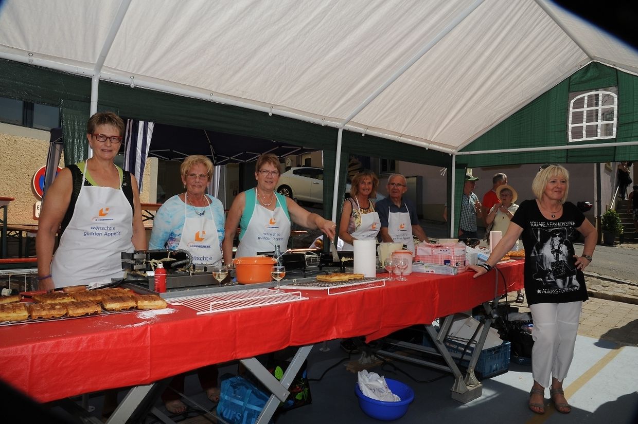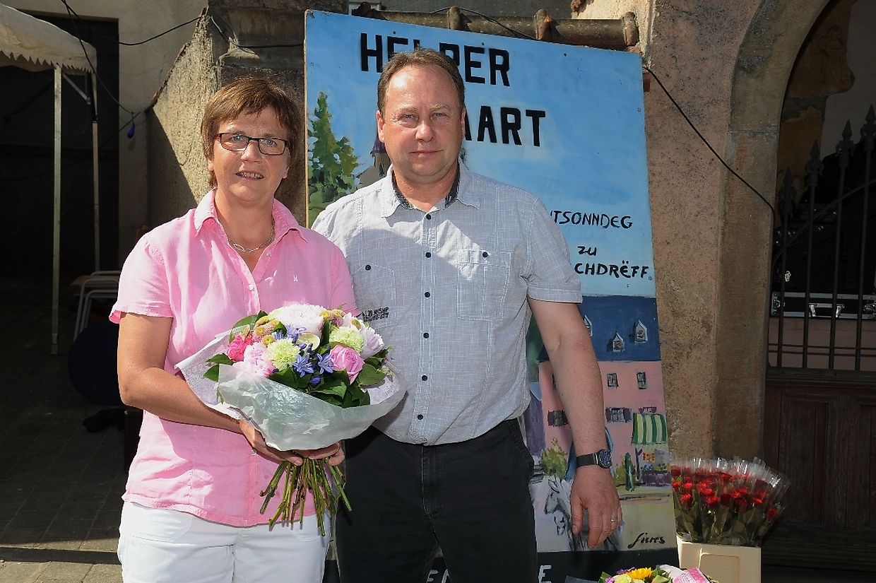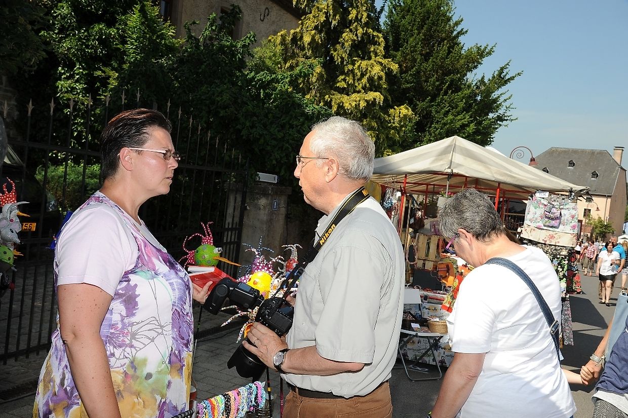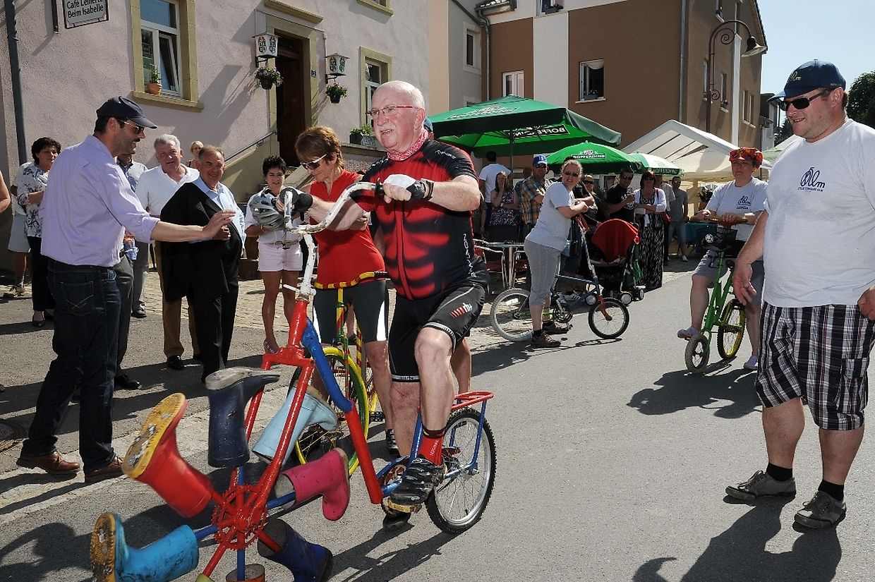 Nach der 56. FLMP/IVV Wanderung rundherum den „Hëlperknapp“, war es für Entente- Präsidentin Nicole Müller nach ihren Willkommensgrüßen eine besondere Ehre den „Hëlpermaart“, unter dem neuen Motto „ Hëlpermaart „goes Art“ mit seinen über 85 Verkaufsständen dann offiziell zu eröffnen. Ferd Gloesener, als treibende Kraft bei der lokalen Vereinsentente erinnerte, dass man sich seit einiger Zeit mit dem Gedanken befasste einen neuen Weg einzuschlagen um diese multi- kulturelle Manifestation in Richtung Kunst und Handwerk neu zu gestalten. Bürgermeister Paul Mangen beglückwünschte die Verantwortlichen für ihre ausgezeichnete Initiative dem Marktgeschehen einen neuen Schub in Richtung modernere Zeit zu geben, freute sich zusammen mit den Nachbargemeinden zu feiern und wünschte der aktiven Vereinsentente mit all seinen Mitgliedern und Helfern den erhofften Erfolg. Mit Blick auf die anstehende Fusion mit der Gemeinde Tüntingen war es dann an den beiden Gemeindevorstehern Christiane Eicher- Karier und Paul Mangen den Takt mit dem Hammer bei der Amboss- Polka gemeinsam als Musikinstrument auf einem alten Amboss zu schlagen. Im Anschluss an die Glückwünsche seitens der Bürgermeisterin aus Tüntingen folgte eine „Show Surprise“ mit Spezial für Animation gefertigten Fahrrädern. Beim Rundgang durch die Ortsmitte konnten sich die vielen Besucher von den mannigfaltigem Angebot an den Verkaufsständen überzeugen und so manchen Gegenstand oder Ware sich einmal von nahe ansehen oder sogar kaufen. Das Angebot reichte von Gestricktem, Keramik, Patchwork, Dekorationsartikel, Bienenprodukten, Liköre und Branntweine, Lederartikel, Konfitüre, Glückwunschkarten, Skulpturen, Gärtnereiartikel, Kleidern und vieles mehr. Für das leibliche Wohl und für den Spaß der Kinder hatten die Organisatoren auch dieses Jahr keine Mühe gescheut um diesen 26. „Hëlpermaart“ in Buschdorf zusammen mit dem Auftritt der Musik- Band „ Kantri- Klapp“ ein wahres Familienerlebnis zu gestalten. Mit diesem Riesenerfolg des Buschdorfer Marktes kann die Vereinsentente bestens zufrieden sein und mit Ausblick auf die nächste Auflage im kommenden Jahr mit Genugtuung entgegensehen. (CR) (FOTOS: CHARLES REISER