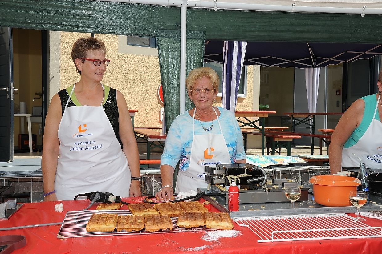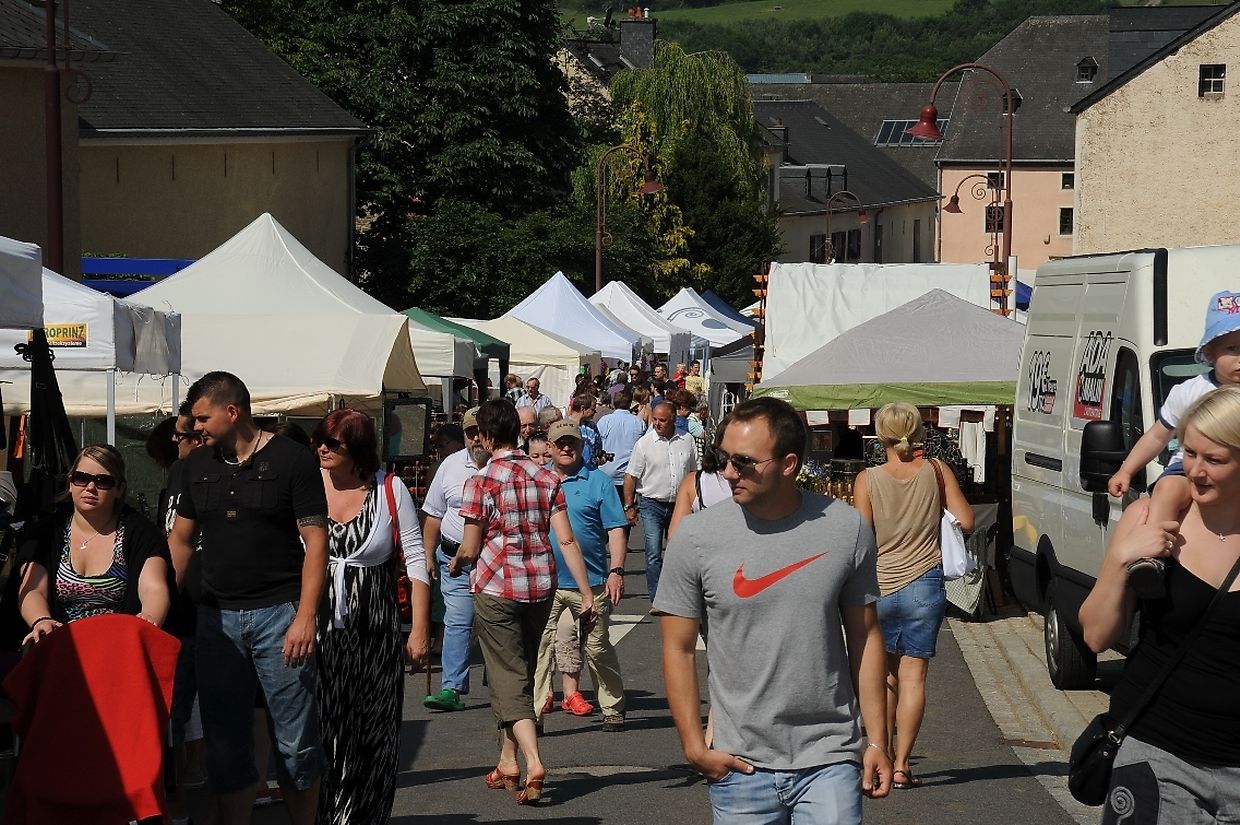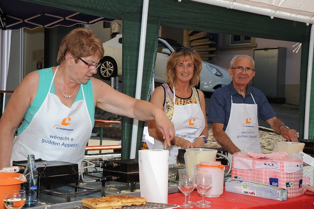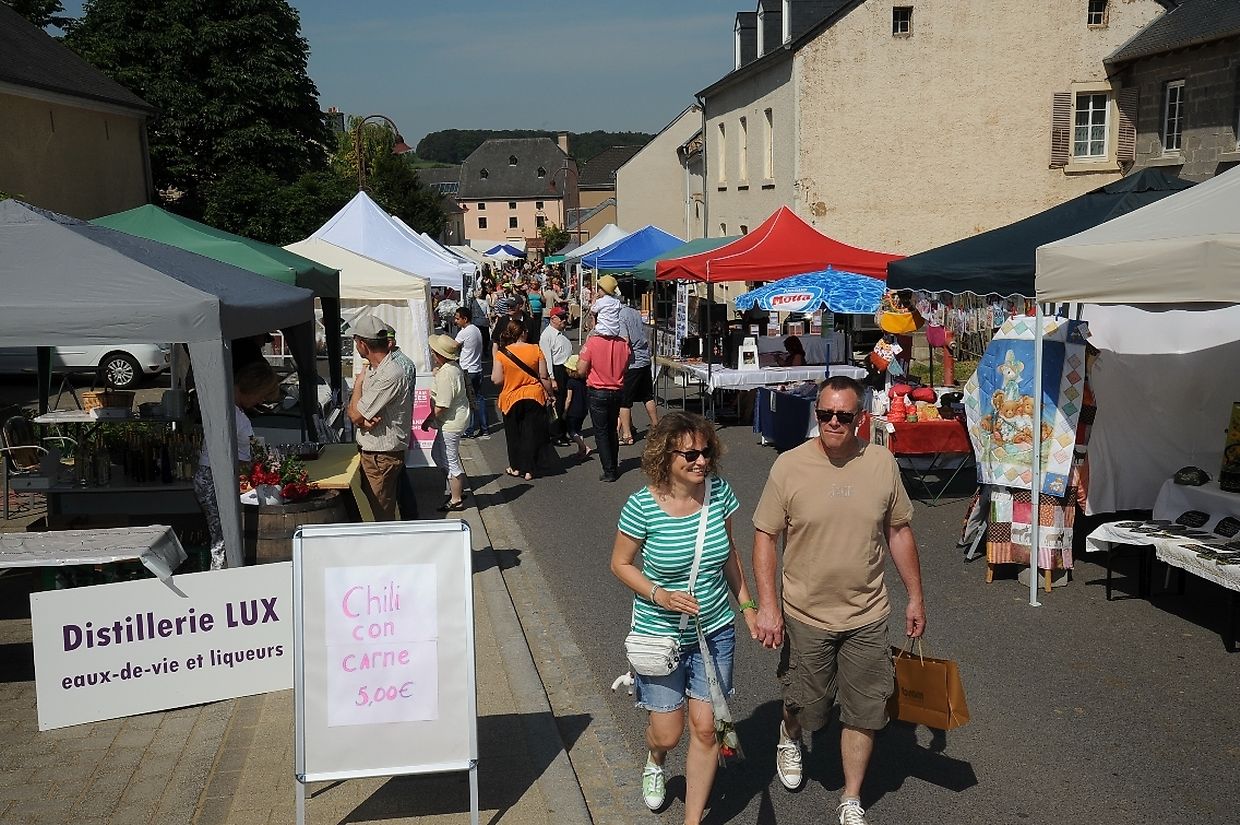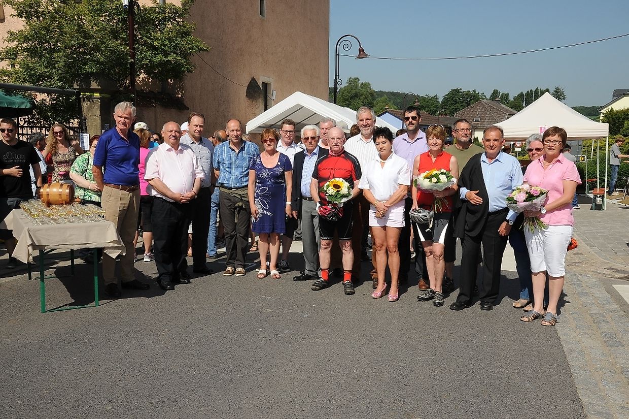 Nach der 56. FLMP/IVV Wanderung rundherum den „Hëlperknapp“, war es für Entente- Präsidentin Nicole Müller nach ihren Willkommensgrüßen eine besondere Ehre den „Hëlpermaart“, unter dem neuen Motto „ Hëlpermaart „goes Art“ mit seinen über 85 Verkaufsständen dann offiziell zu eröffnen. Ferd Gloesener, als treibende Kraft bei der lokalen Vereinsentente erinnerte, dass man sich seit einiger Zeit mit dem Gedanken befasste einen neuen Weg einzuschlagen um diese multi- kulturelle Manifestation in Richtung Kunst und Handwerk neu zu gestalten. Bürgermeister Paul Mangen beglückwünschte die Verantwortlichen für ihre ausgezeichnete Initiative dem Marktgeschehen einen neuen Schub in Richtung modernere Zeit zu geben, freute sich zusammen mit den Nachbargemeinden zu feiern und wünschte der aktiven Vereinsentente mit all seinen Mitgliedern und Helfern den erhofften Erfolg. Mit Blick auf die anstehende Fusion mit der Gemeinde Tüntingen war es dann an den beiden Gemeindevorstehern Christiane Eicher- Karier und Paul Mangen den Takt mit dem Hammer bei der Amboss- Polka gemeinsam als Musikinstrument auf einem alten Amboss zu schlagen. Im Anschluss an die Glückwünsche seitens der Bürgermeisterin aus Tüntingen folgte eine „Show Surprise“ mit Spezial für Animation gefertigten Fahrrädern. Beim Rundgang durch die Ortsmitte konnten sich die vielen Besucher von den mannigfaltigem Angebot an den Verkaufsständen überzeugen und so manchen Gegenstand oder Ware sich einmal von nahe ansehen oder sogar kaufen. Das Angebot reichte von Gestricktem, Keramik, Patchwork, Dekorationsartikel, Bienenprodukten, Liköre und Branntweine, Lederartikel, Konfitüre, Glückwunschkarten, Skulpturen, Gärtnereiartikel, Kleidern und vieles mehr. Für das leibliche Wohl und für den Spaß der Kinder hatten die Organisatoren auch dieses Jahr keine Mühe gescheut um diesen 26. „Hëlpermaart“ in Buschdorf zusammen mit dem Auftritt der Musik- Band „ Kantri- Klapp“ ein wahres Familienerlebnis zu gestalten. Mit diesem Riesenerfolg des Buschdorfer Marktes kann die Vereinsentente bestens zufrieden sein und mit Ausblick auf die nächste Auflage im kommenden Jahr mit Genugtuung entgegensehen. (CR) (FOTOS: CHARLES REISER
